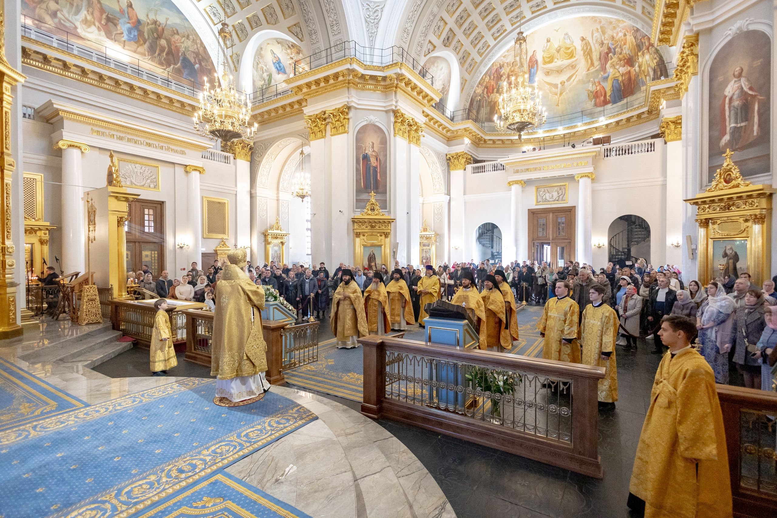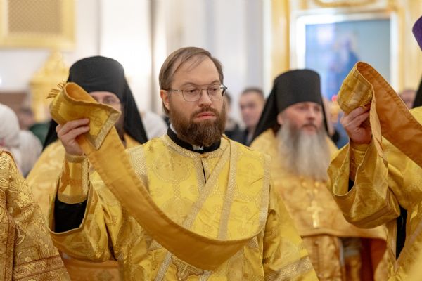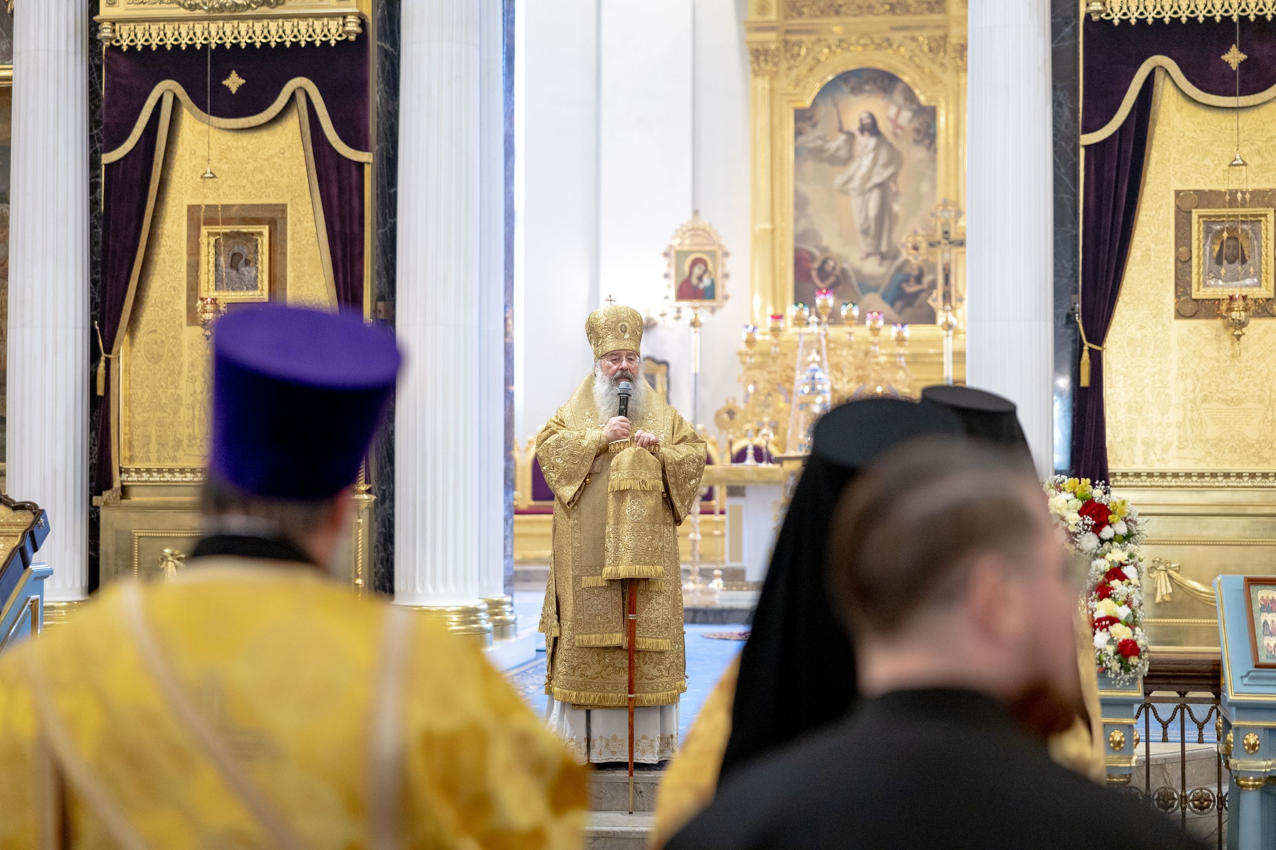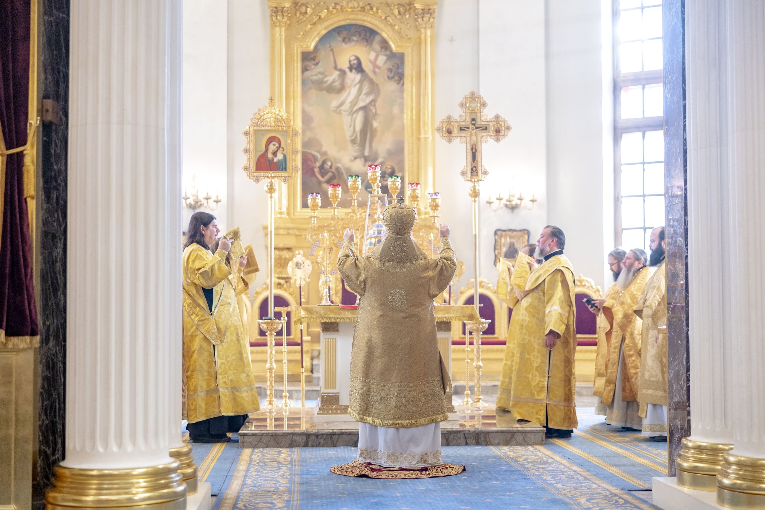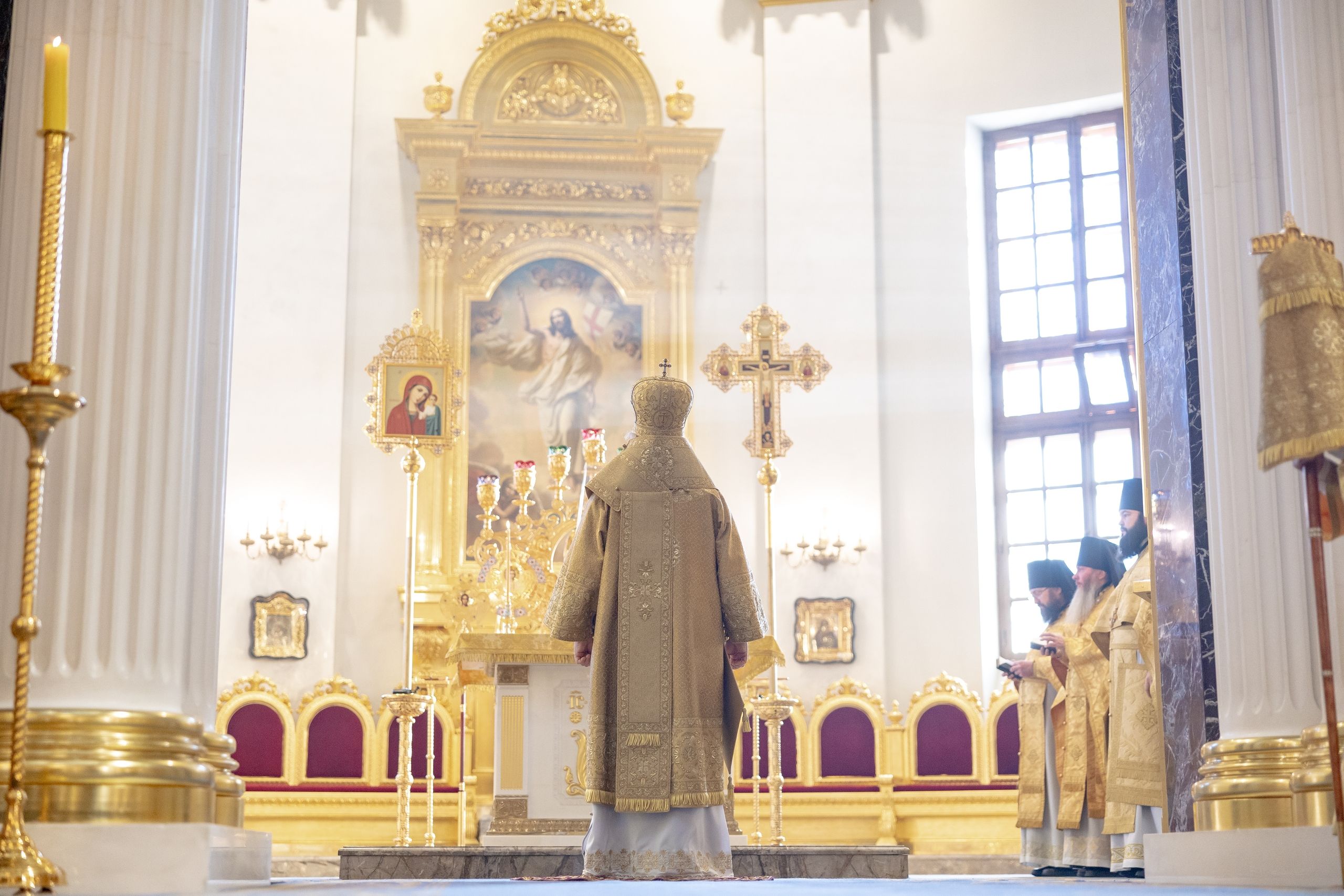 На мирной и сугубой ектениях были вознесены молитвенные прошения о Российском воинстве и о мире. По запричастном стихе проповедь произнёс иеромонах Гермоген (Рубан).