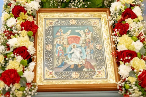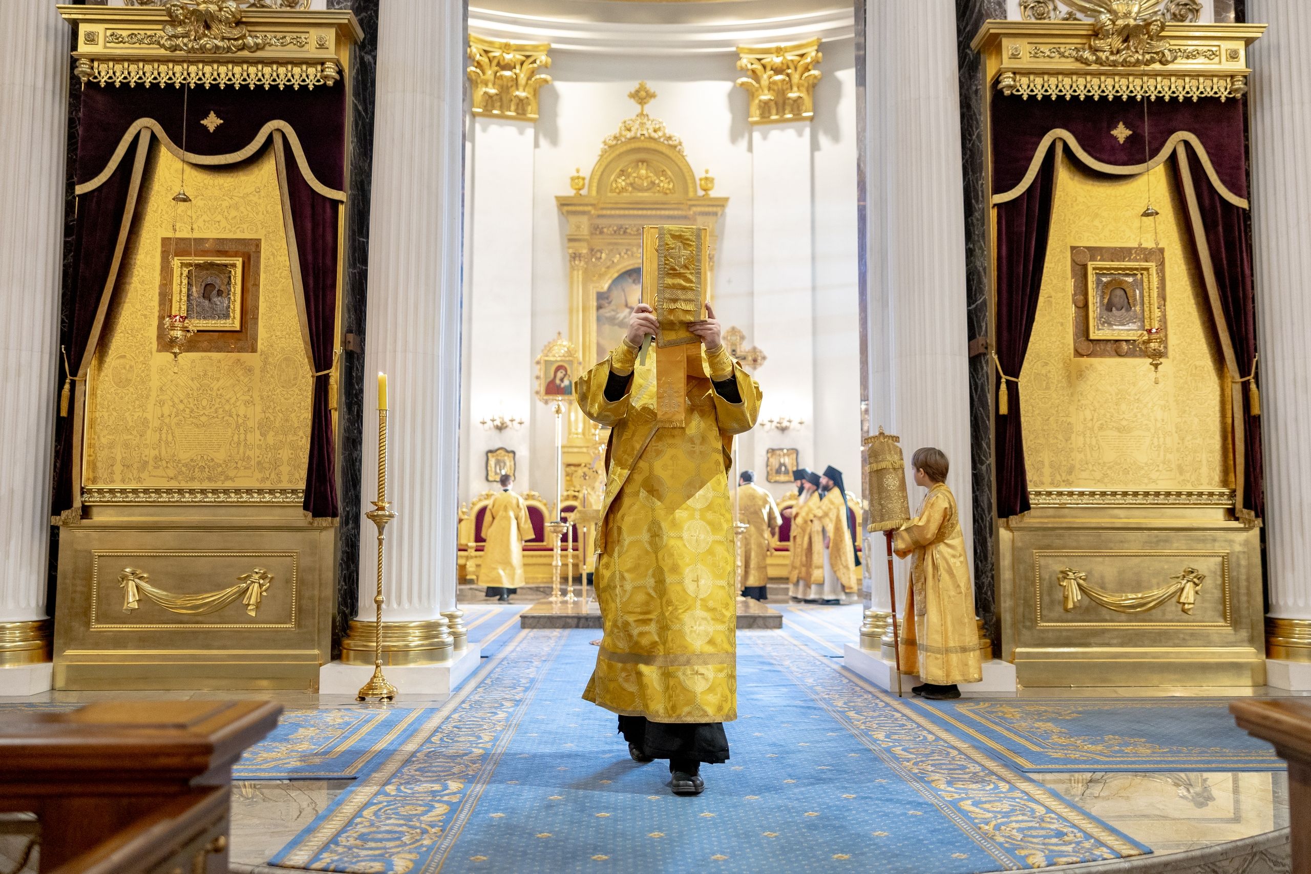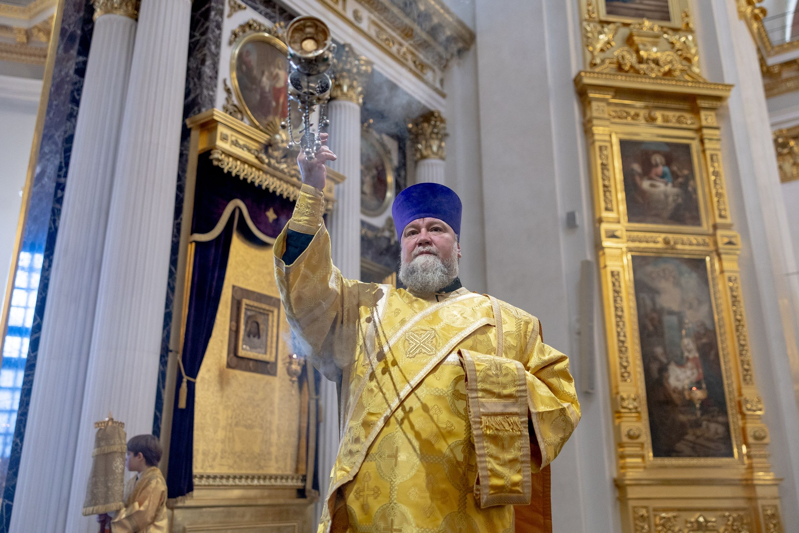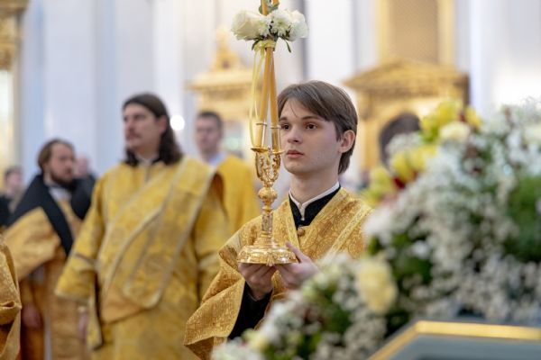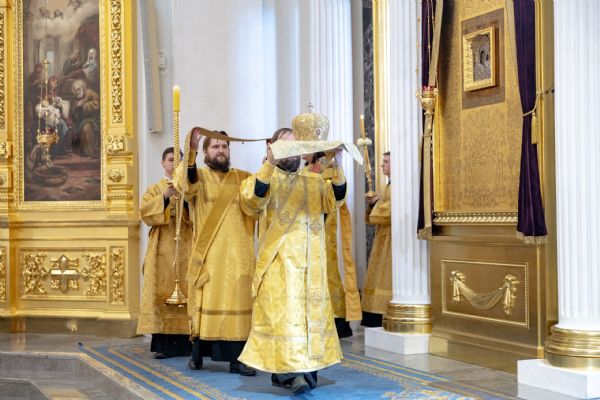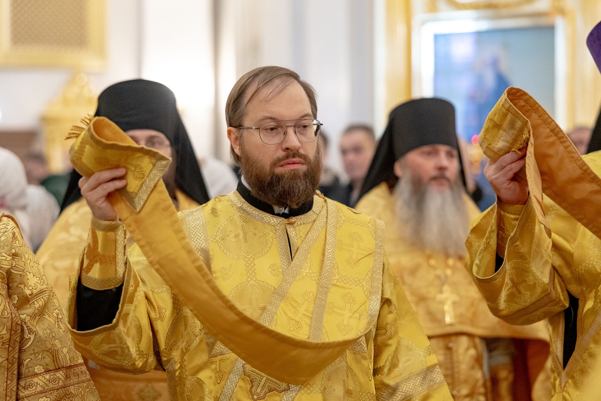 На мирной и сугубой ектениях были вознесены молитвенные прошения о Российском воинстве и о мире. По запричастном стихе проповедь произнёс иеромонах Гермоген (Рубан).