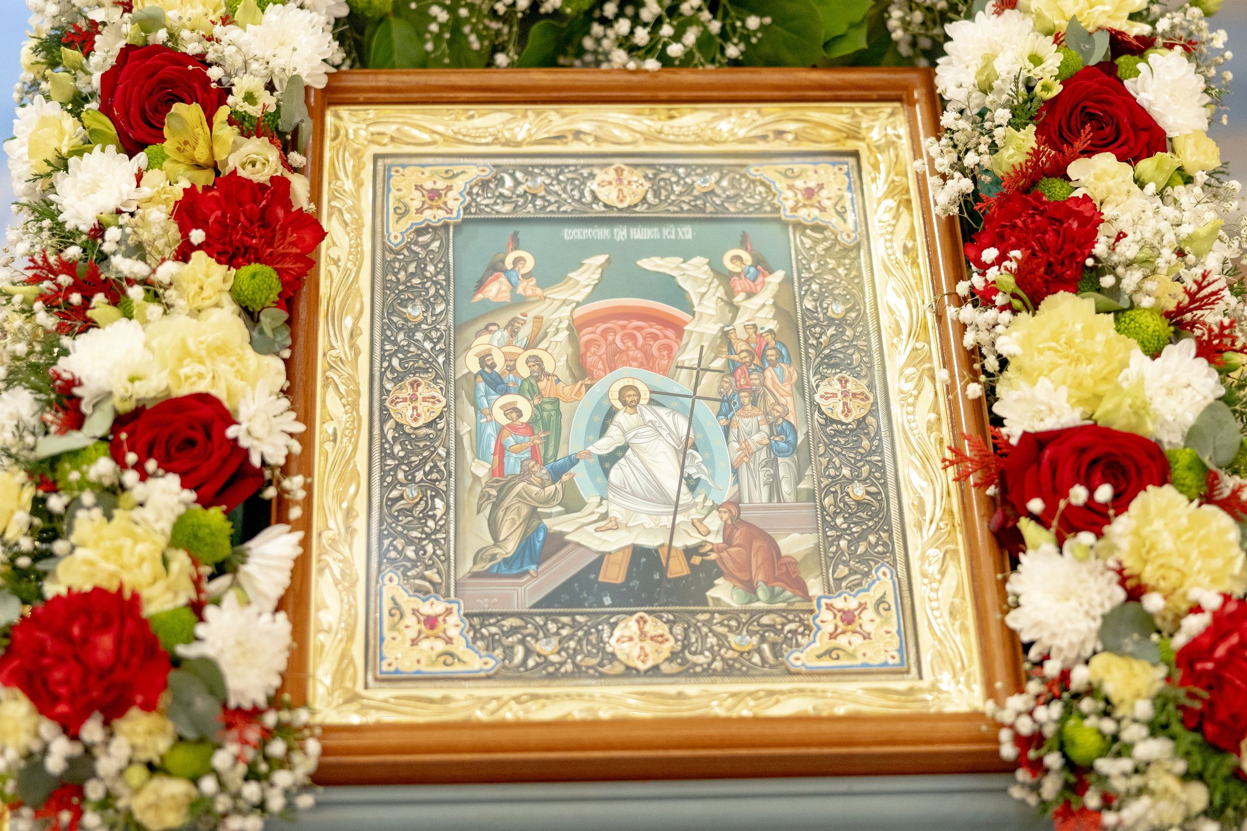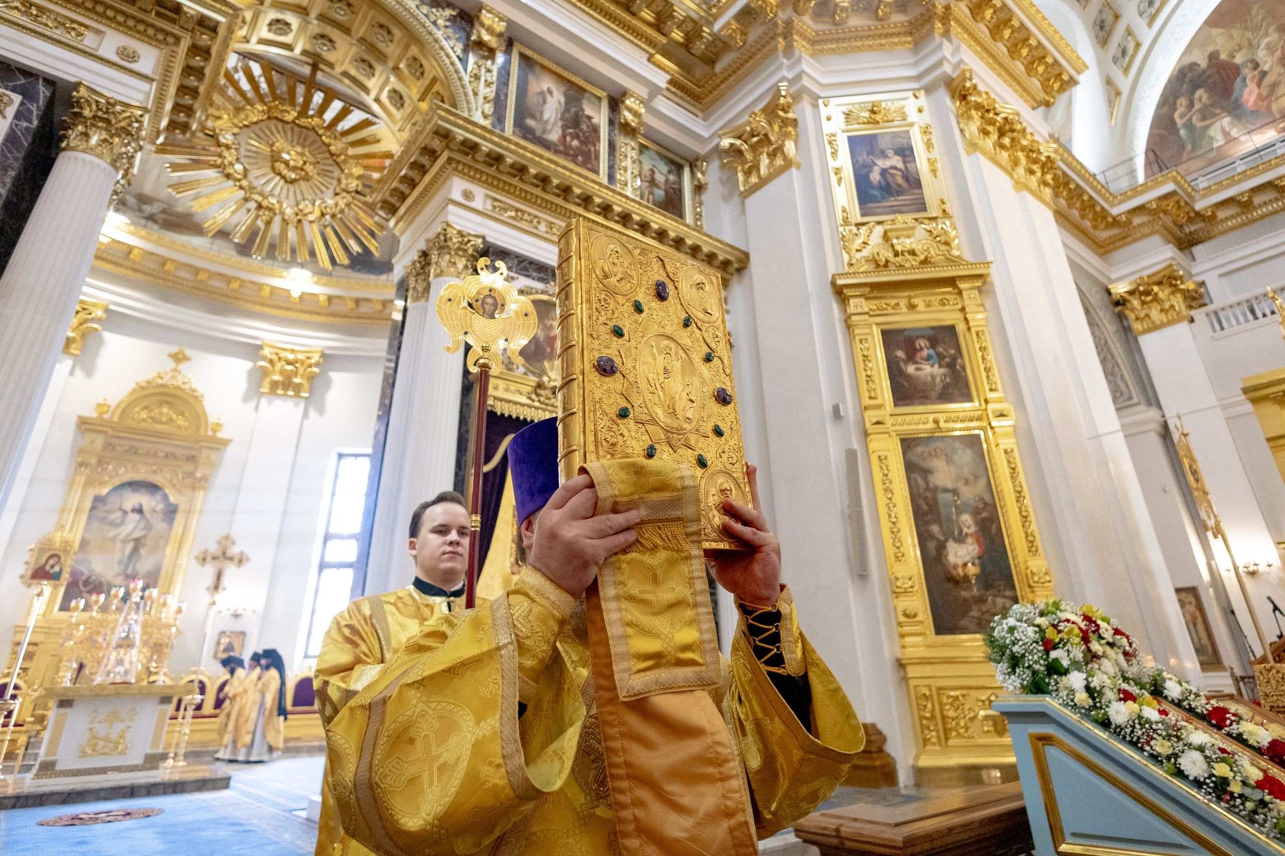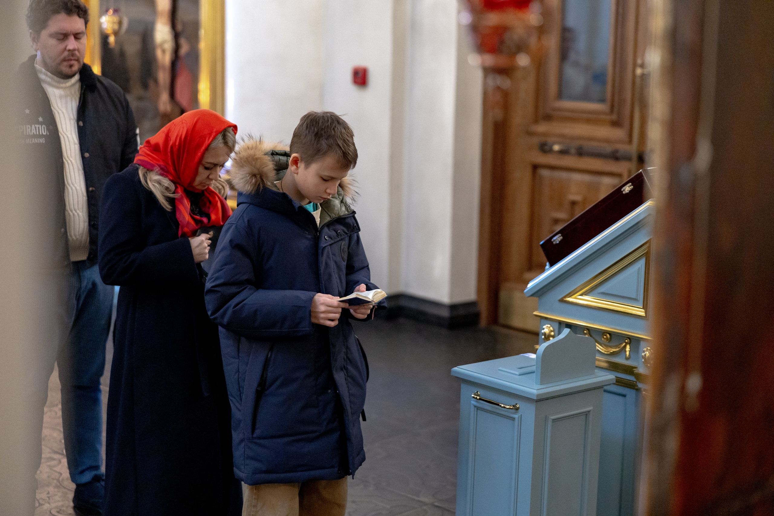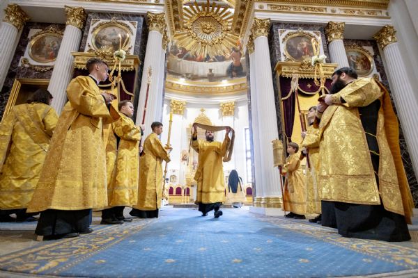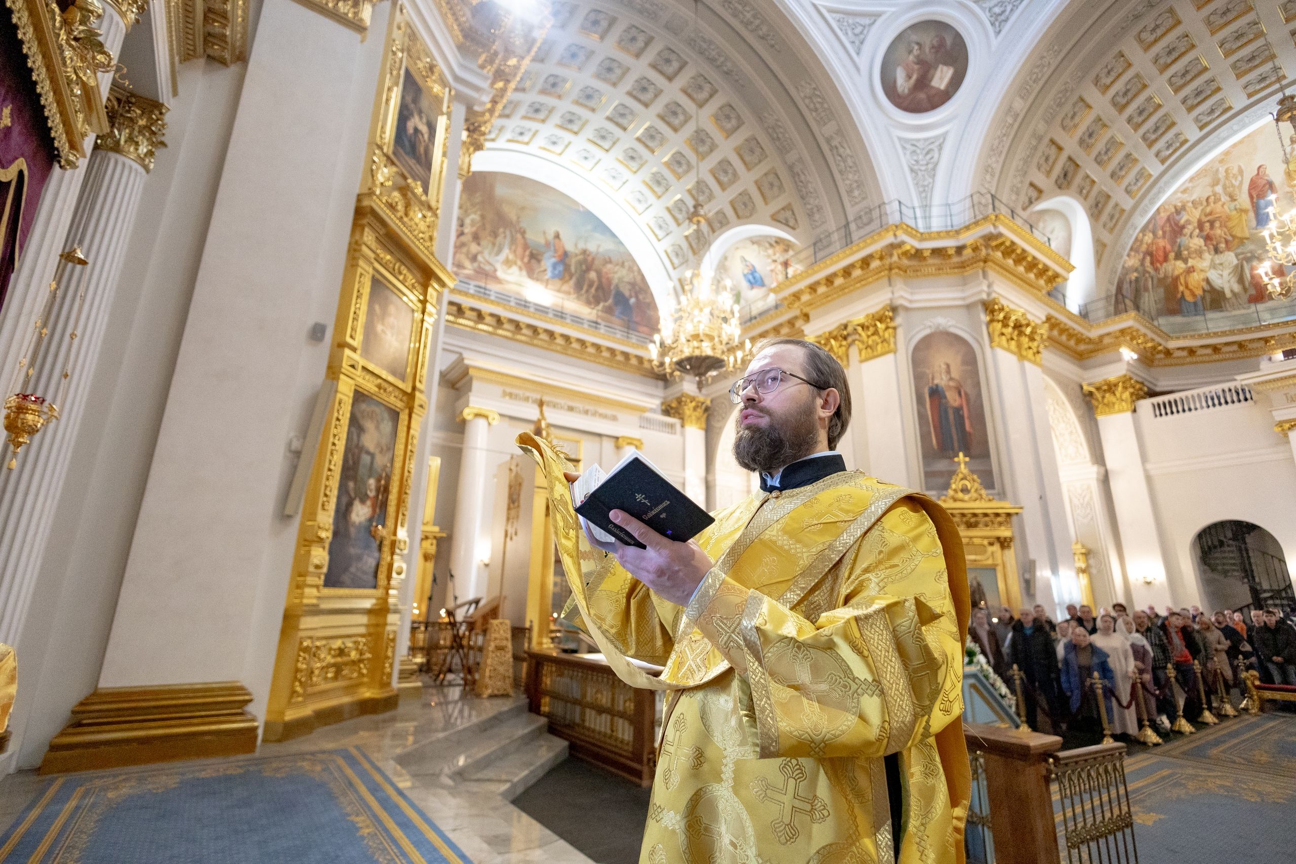 На мирной и сугубой ектениях были вознесены молитвенные прошения о Российском воинстве и о мире. По запричастном стихе проповедь произнёс иеромонах Гермоген (Рубан).