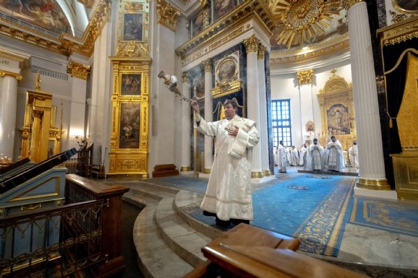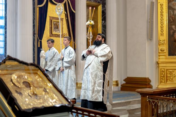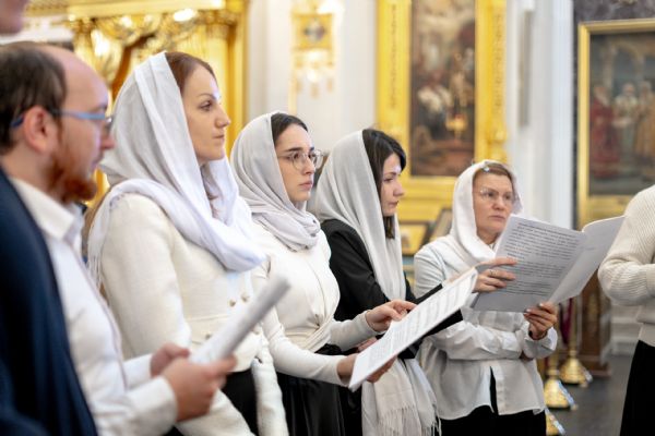 Песнопения исполнил архиерейский смешанный хор под управлением Марины Литвиненко.