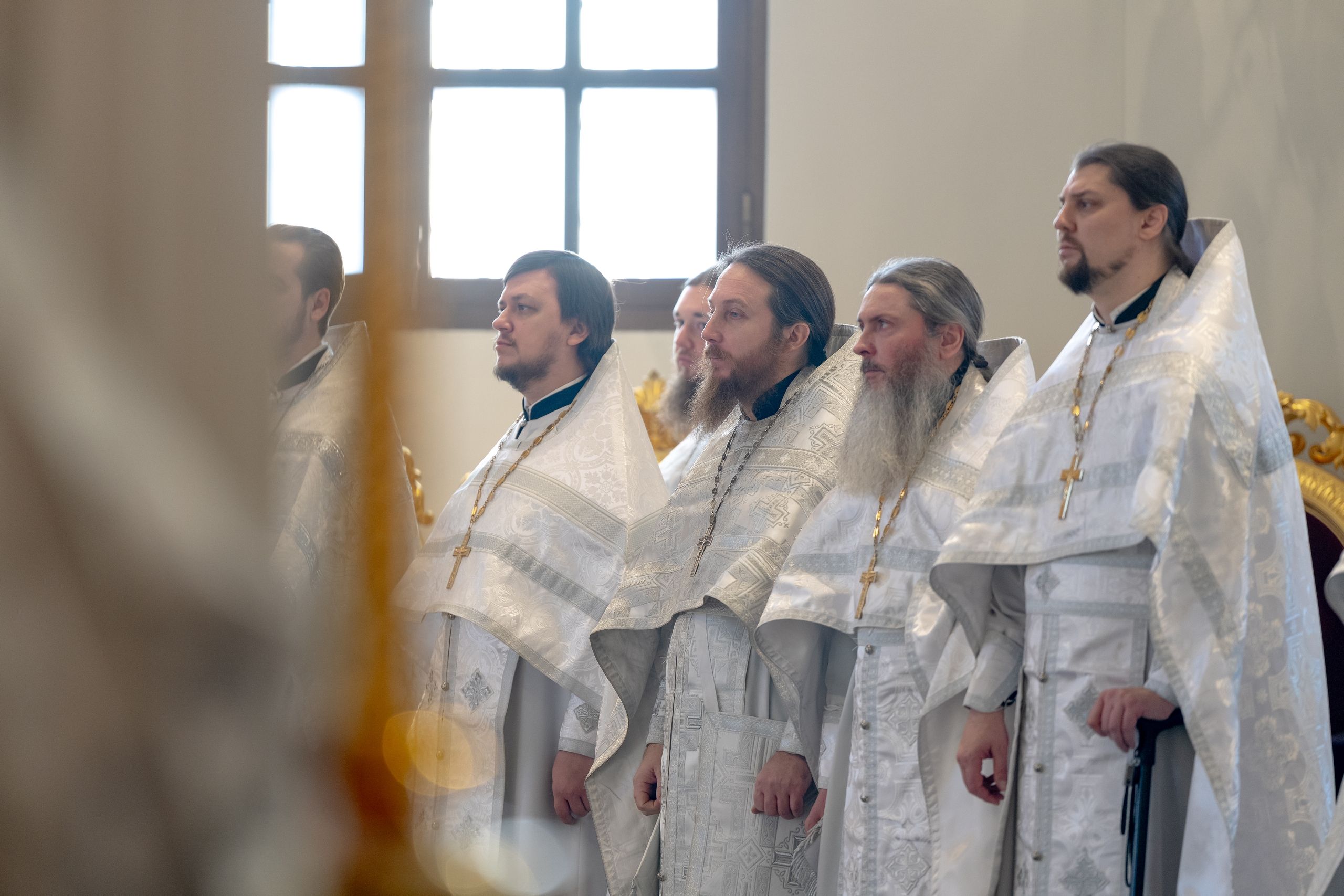 Архипастырям сослужили секретарь Татарстанской митрополии иеромонах Кирилл (Корытко), наместник Казанского Богородицкого мужского монастыря игумен Марк (Виленский), благочинный I Казанского округа протоиерей Владимир Самойленко, благочинный по монастырям Казанской епархии игумен Пимен (Ивентьев), насельники Богородицкой обители в священном сане, духовенство Татарстанской митрополии.