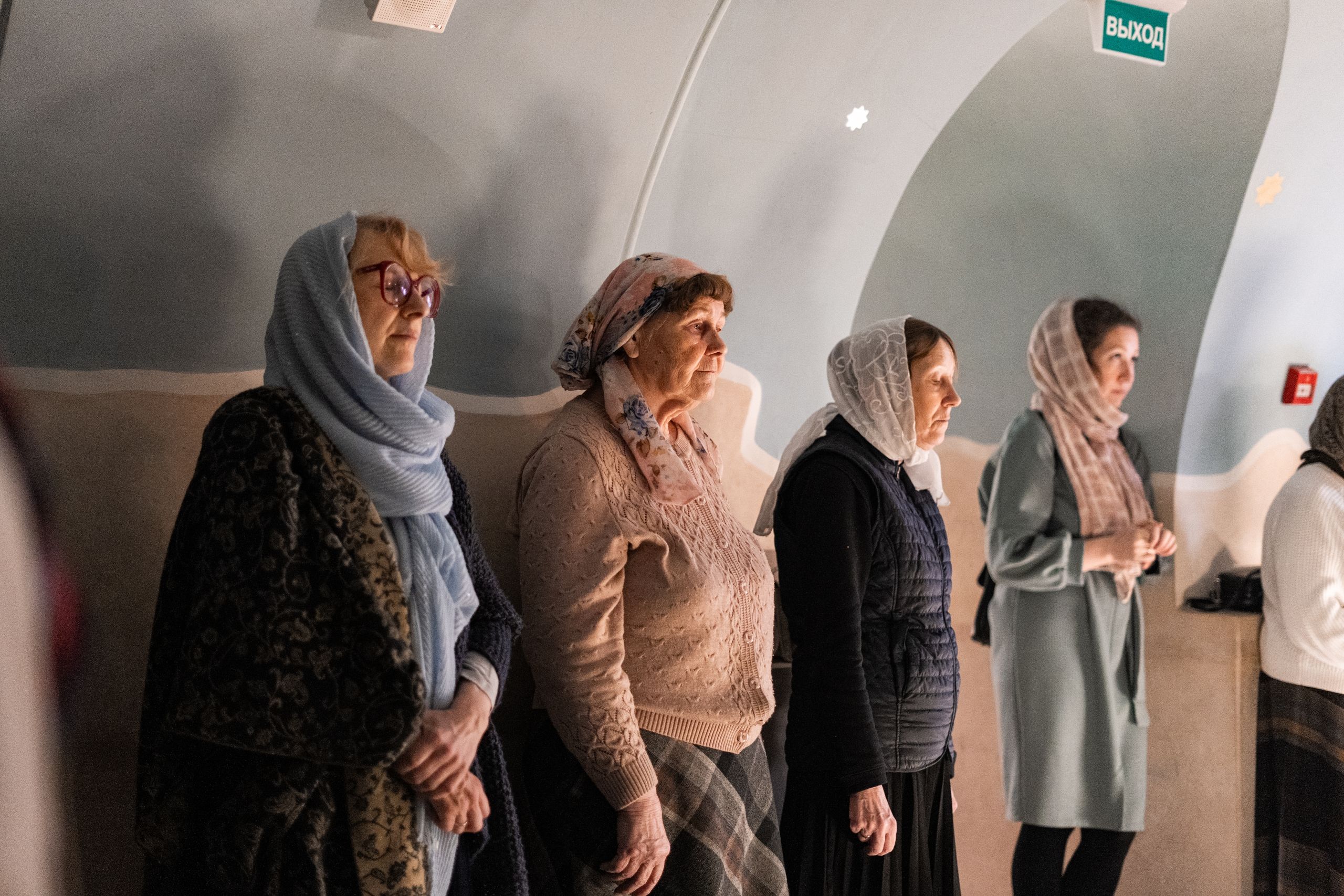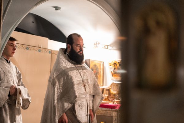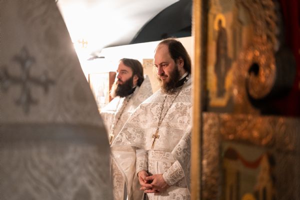 За богослужением молились насельники обители и прихожане. На мирной и сугубой ектениях были вознесены молитвы о Российском воинстве и о мире.