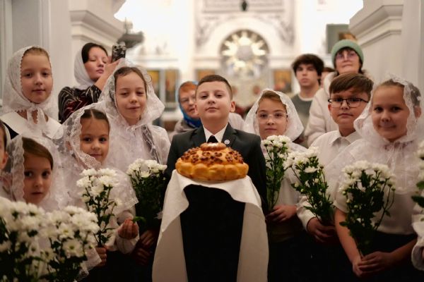 После службы архипастырь преподал верующим благословение. Детям, молившимся за богослужением, священники вручили шоколад.