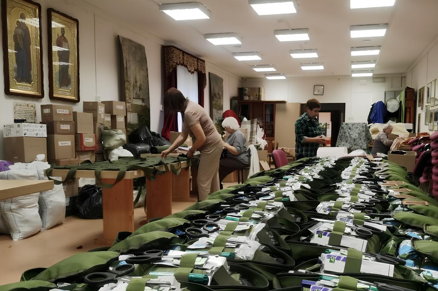 Добровольцы архиерейского подворья священномученика Кирилла Казанского своими руками изготавливают для военнослужащих маскировочные сети, спальные мешки и одежду. Помимо изделий ручной работы в прошлом месяце Кирилловский приход отправил в зону проведения СВО строительные материалы и продукты питания.