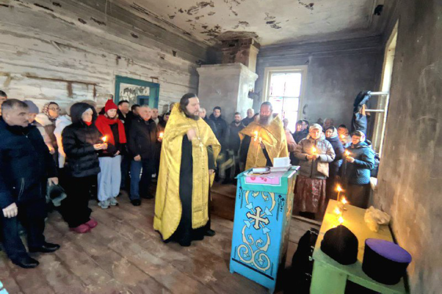 7 декабря благочинный Пестречинского округа иерей Ярослав Петрущенков возглавил молебен в древнем деревянном, частично порушенном храме Покрова Пресвятой Богородицы села Янцевары (Пестречинский район Татарстана).