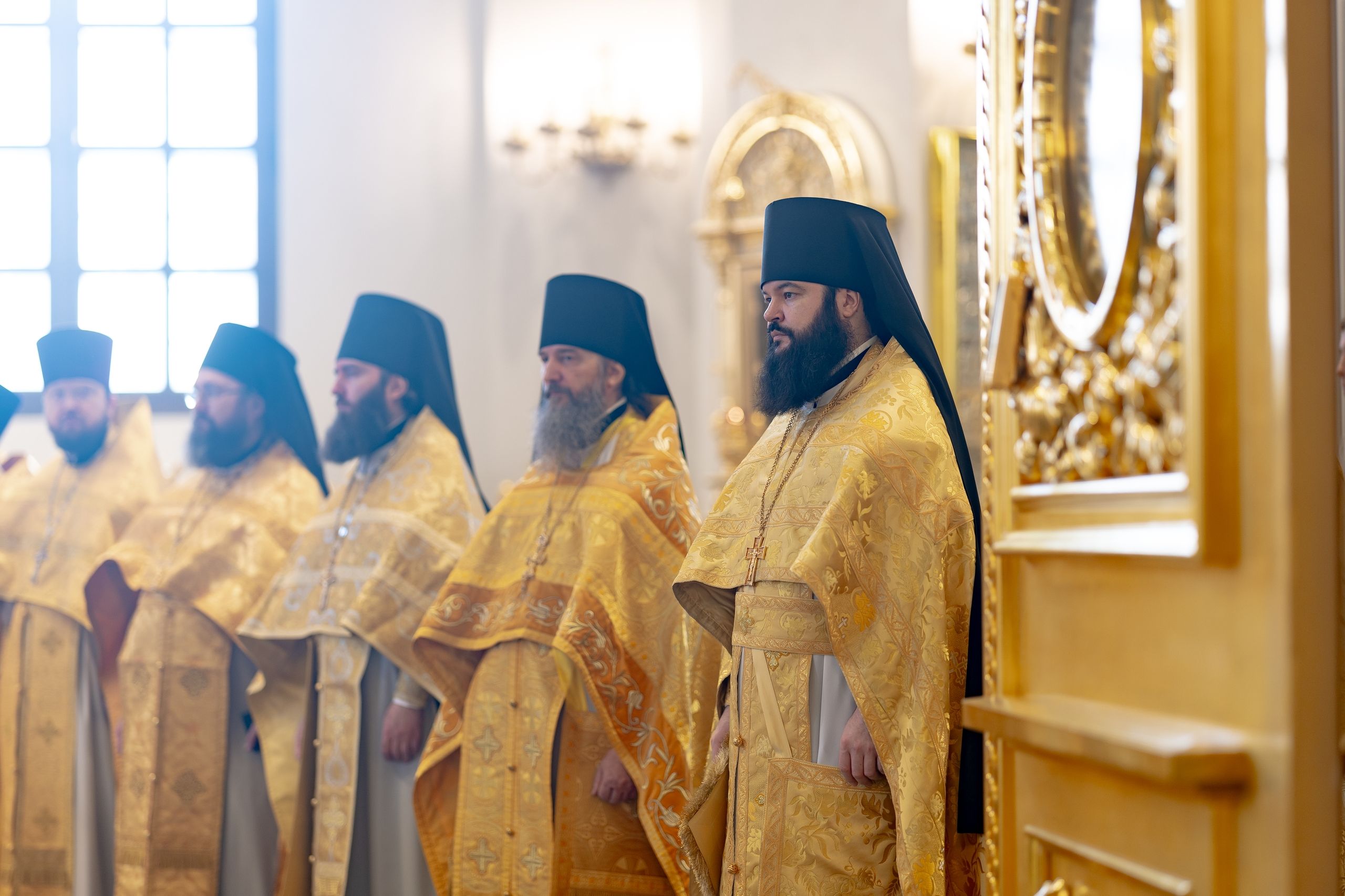 Его Высокопреосвященству сослужили наместник игумен Марк (Виленский), настоятель Введенского Кизического монастыря города Казани игумен Пимен (Ивентьев), наместник Свияжского Богородице-Успенского монастыря игумен Аркадий (Логинов), настоятель Иоанно-Предтеченского монастыря города Казани игумен Алексий (Яцейко), ключарь Благовещенского собора Казанского кремля иерей Виктор Бельских, настоятель Преображенского храма села Большие Кабаны иерей Роман Цвигуненко, братия Казанской Богородицкой обители в священном сане.