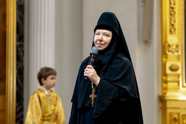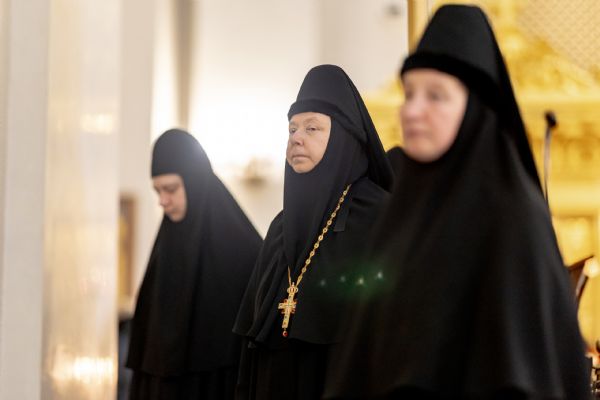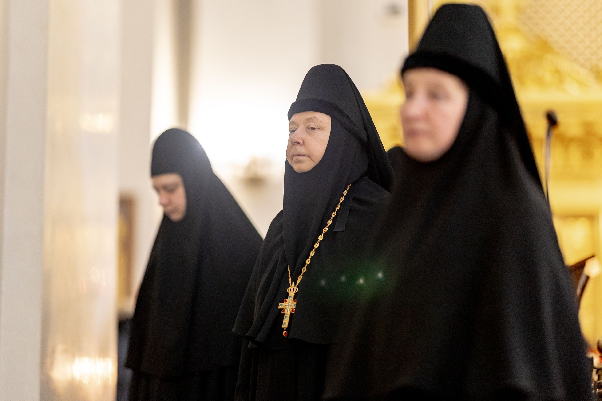 За богослужением молилась настоятельница Александро-Невского Ново-Тихвинского монастыря Екатеринбургской епархии игумения Домника (Коробейникова) с сёстрами обители.