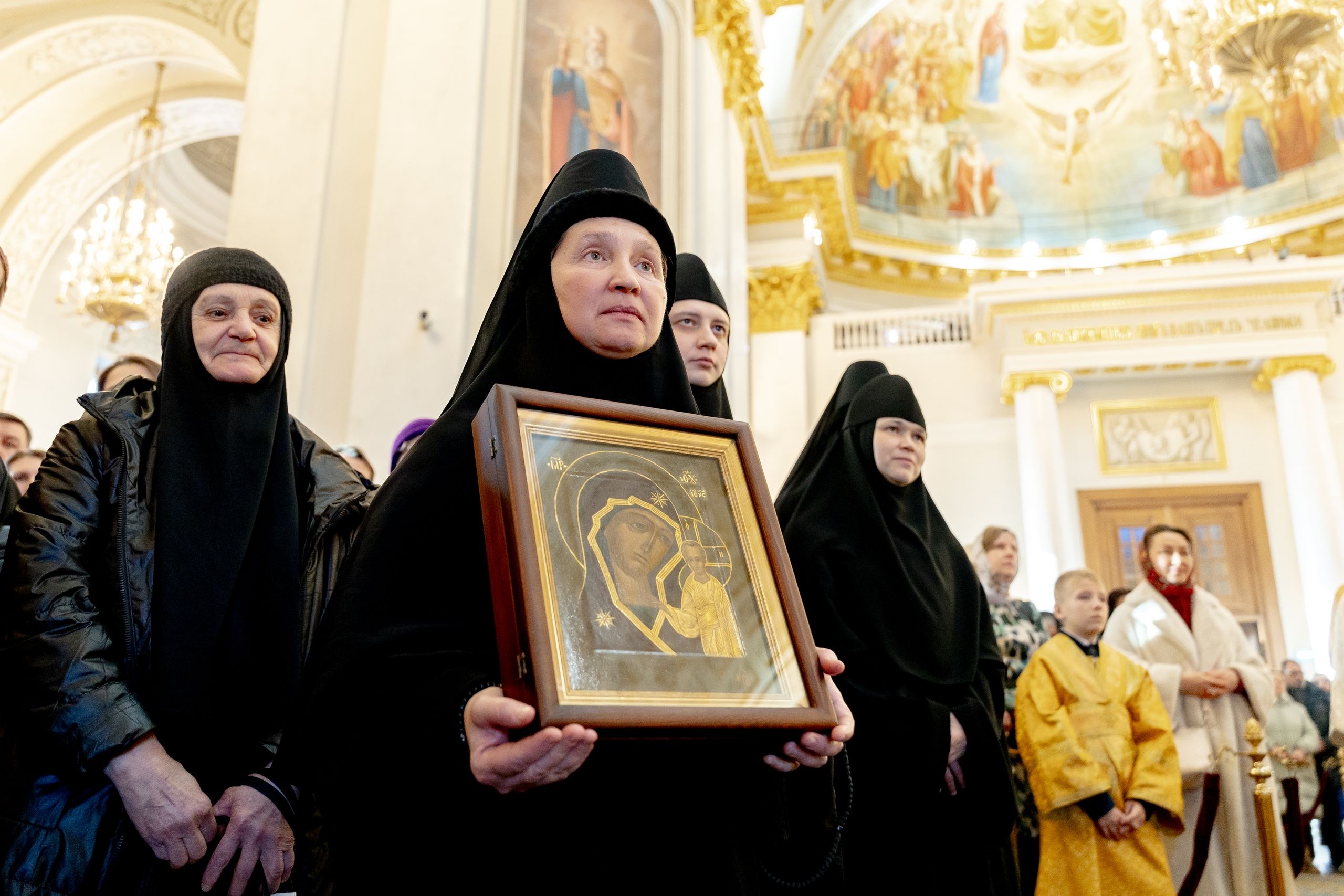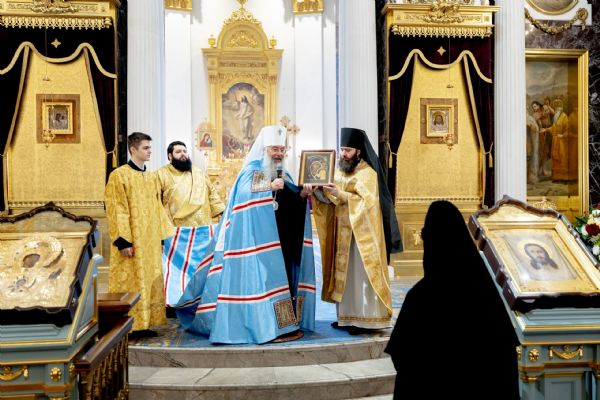 Архипастырь приветствовал игумению Домнику (Коробейникову) с сёстрами. На память о посещении столицы Татарстана архипастырь вручил матушке Казанскую икону Божией Матери. Игумения Домника в свою очередь поблагодарила владыку Кирилла за гостеприимство и радость совместной молитвы в обители Божией Матери.