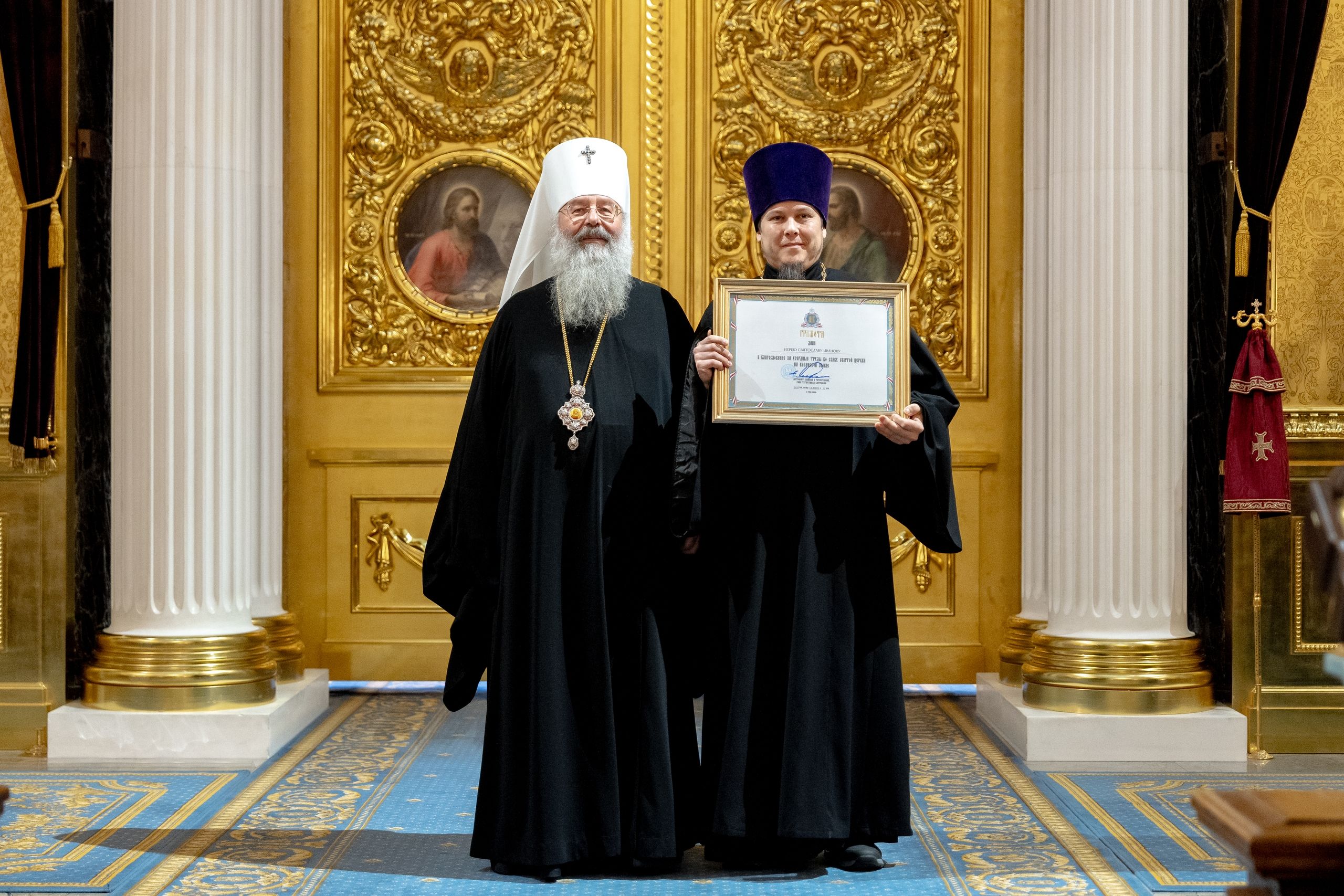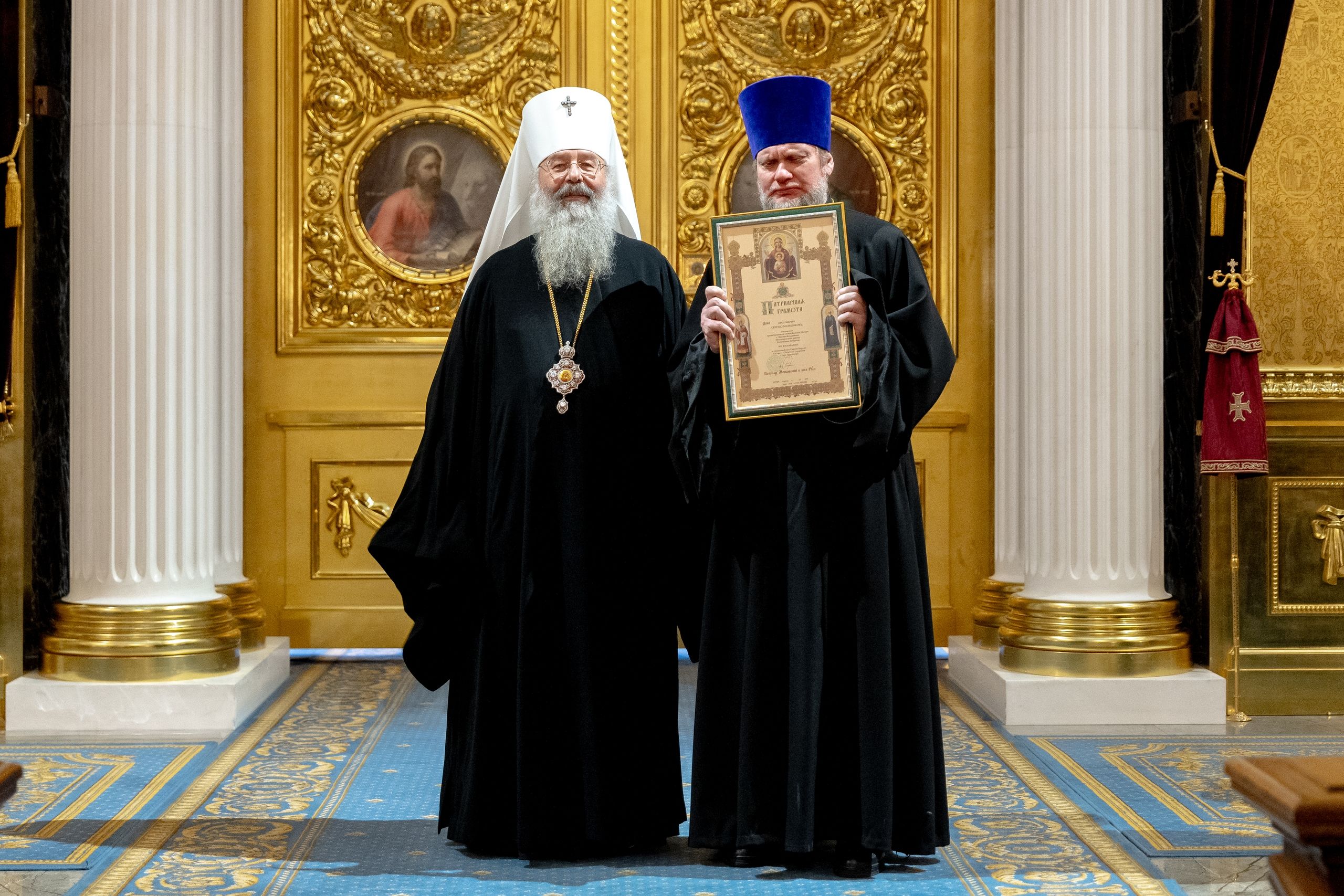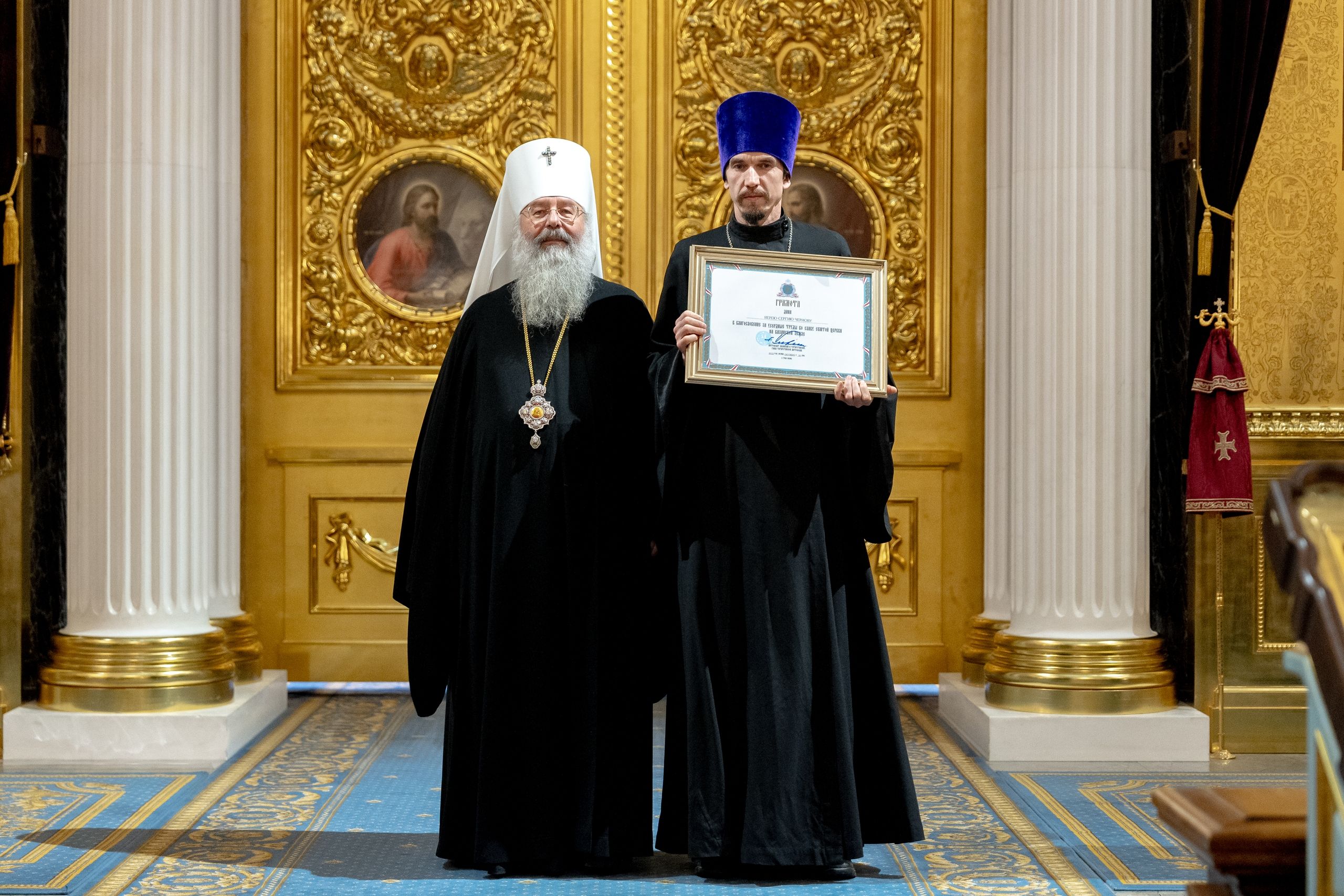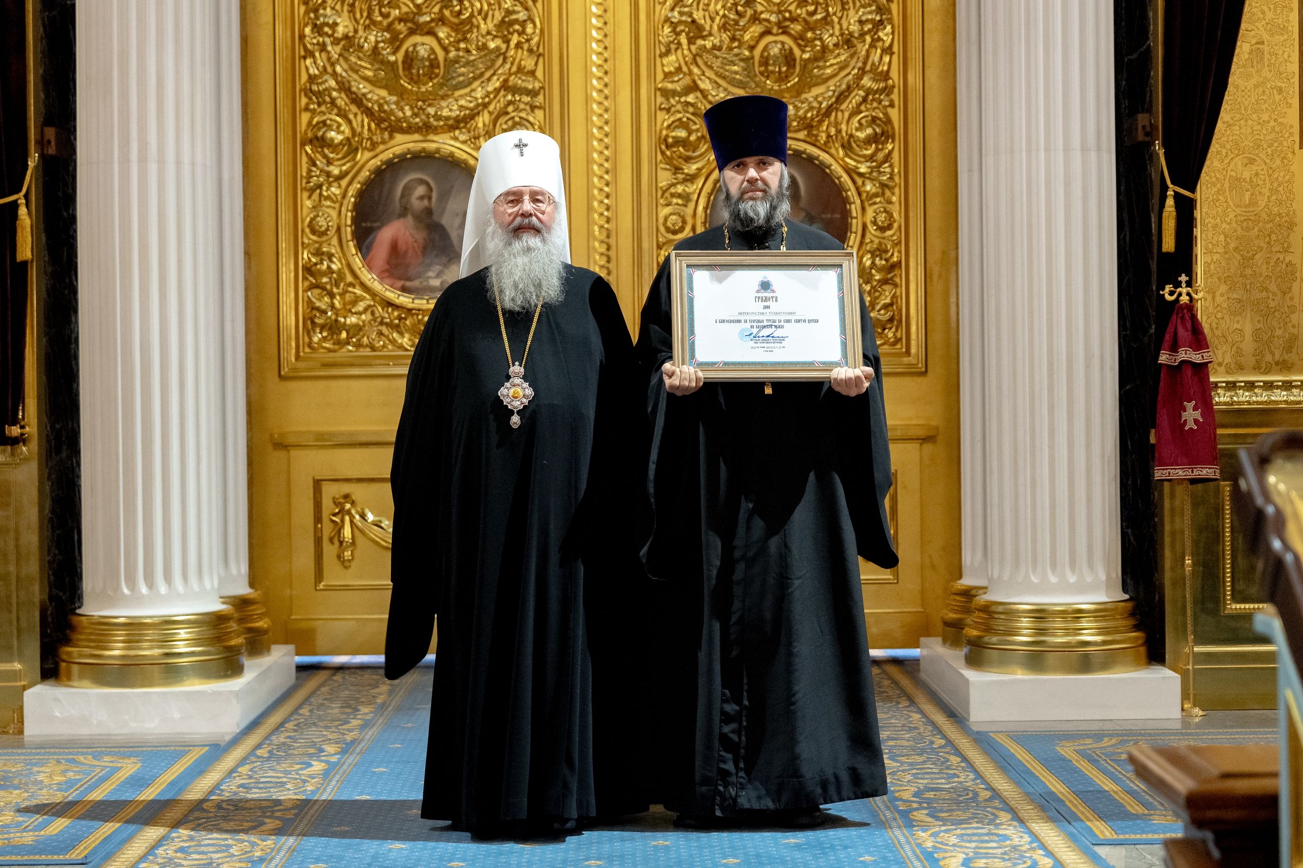Архиерейских грамот: иерей Рафаил Федоров, в связи с 40-летием со дня рождения; иерей Александр Гудовских, в связи с 40-летием со дня рождения; Михаил Тимофеев, в связи с 40-летием со дня рождения; иерей Святослав Иванов, в связи с 40-летием со дня рождения; иерей Евгений Гаврилкин, в связи с 40-летием со дня рождения; иеромонах Иустин (Денисов), в связи с 40-летием со дня рождения; протоиерей Сергий Нечипоренко, в связи с 20-летием служения в сане пресвитера; иерей Георгий Павлов, в связи с 15-летием священнослужения; иерей Андроник Чурашов, в связи с 15-летием священнослужения; иеромонах Иоасаф (Кириллов), в связи с 15-летием священнослужения; иеромонах Онуфрий (Артюшкин), в связи с 15-летием служения в сане пресвитера; игумен Марк (Виленский), в связи с 15-летием священнослужения; иеромонах Антоний (Кадетов), в связи с 15-летием служения в сане пресвитера; иеромонах Павел (Кузнецов), в связи с 15-летием служения в сане пресвитера; иеромонах Гурий (Рассыпнинский), в связи с 15-летием священнослужения; иерей Андрей Елесин, в связи с 15-летием служения в сане пресвитера; иерей Рустик Тухватуллин, в связи с 15-летием служения в сане пресвитера; иерей Иоанн Васильев, в связи с 15-летием священнослужения; иерей Сергий Чернов, в связи с 15-летием служения в сане пресвитера; иерей Артемий Петров, в связи с 15-летием священнослужения; иеромонах Харлампий (Егоров), в связи с 10-летием служения в сане пресвитера; иерей Сергий Подопрелов, в связи с 10-летием священнослужения; иерей Марк Александров, в связи с 10-летием священнослужения; иерей Сергий Вохмянин, в связи с 10-летием священнослужения; иерей Глеб Кривошеин, в связи с 10-летием служения в сане пресвитера; иерей Григорий Пашпорин, в связи с 10-летием служения в сане пресвитера; иерей Владимир Благоверный, в связи с 10-летием священнослужения; иерей Максим Самарин, в связи с 10-летием священнослужения.