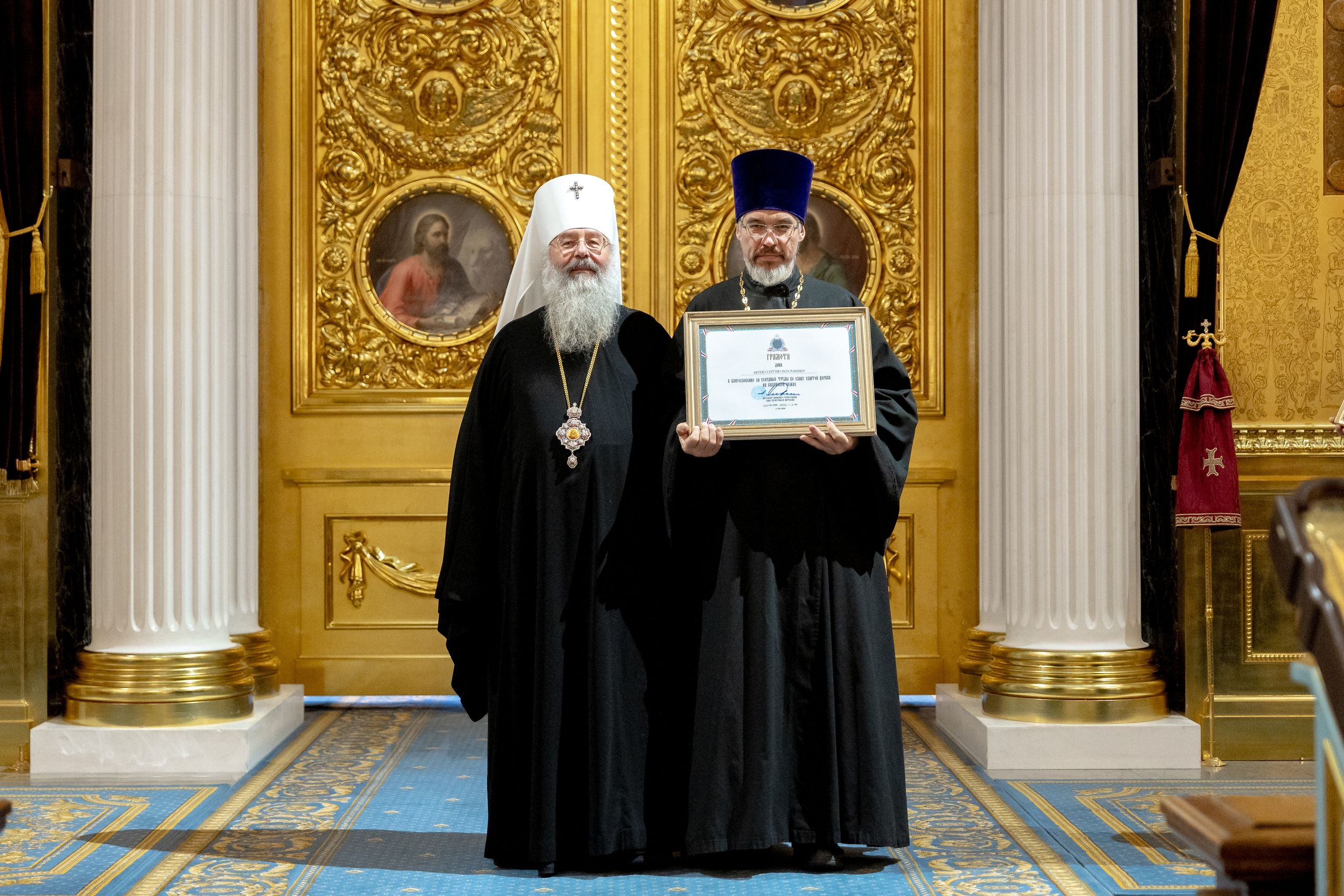 - во внимание к трудам на благо Церкви и в связи с 30-летием служения в сане пресвитера протоиерей Сергий Архипов, настоятель храма пророка Божия Илии с. Песчаные Ковали Лаишевского района РТ, — Патриаршей грамоты;