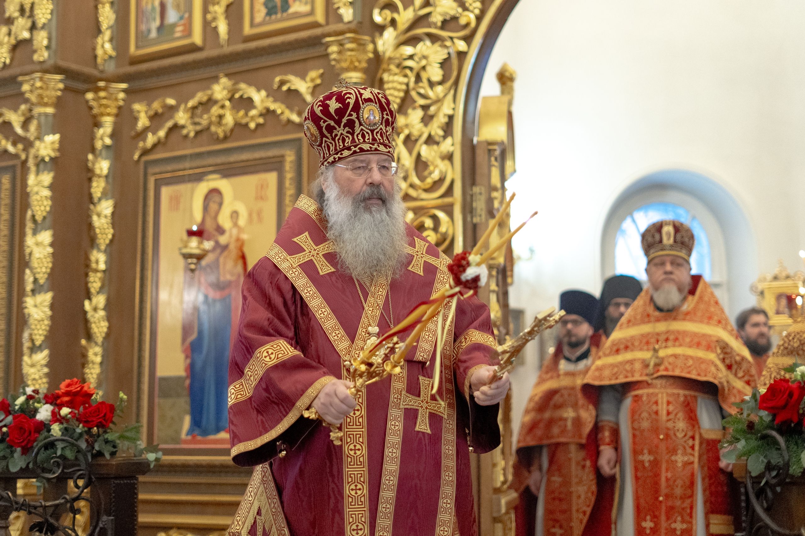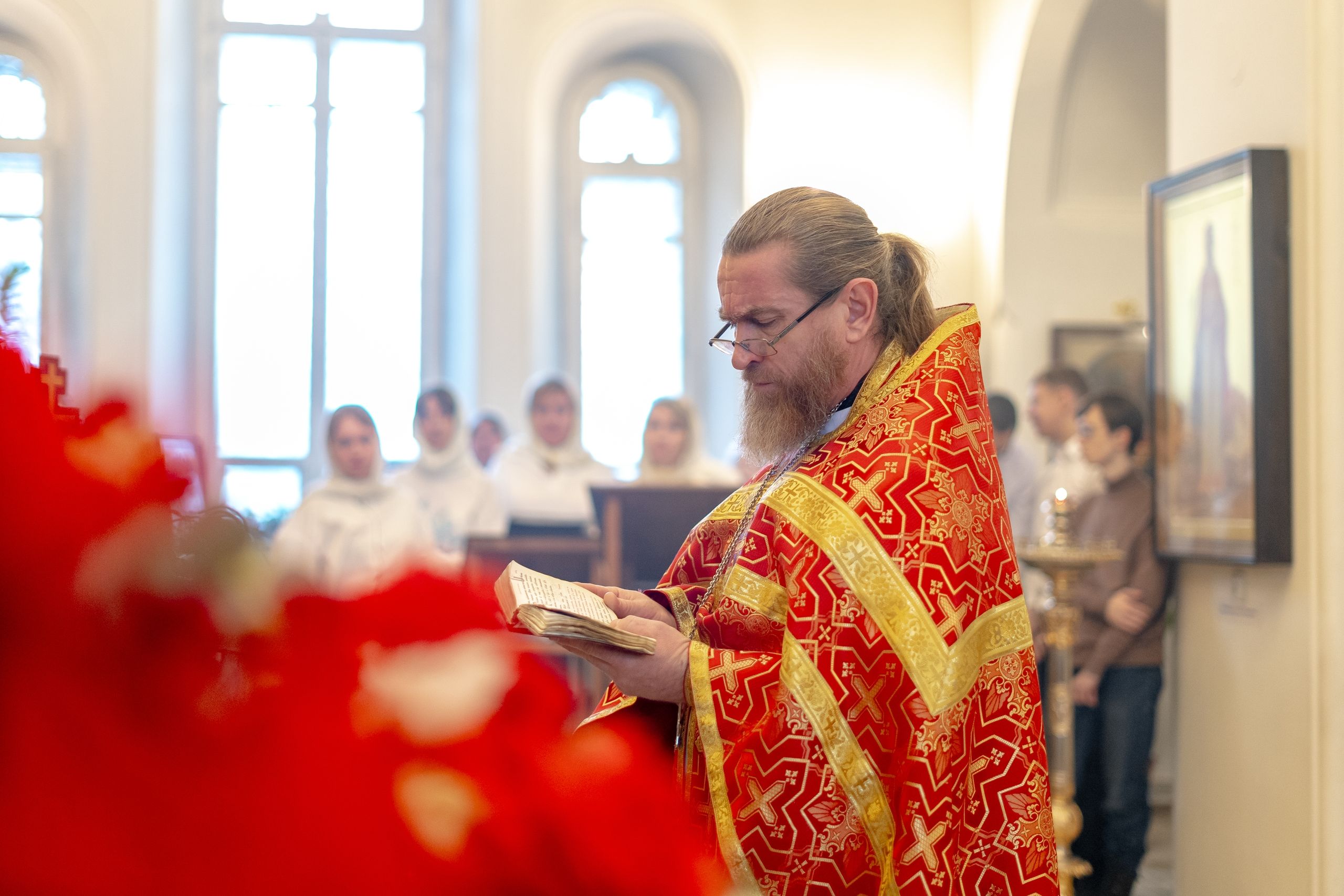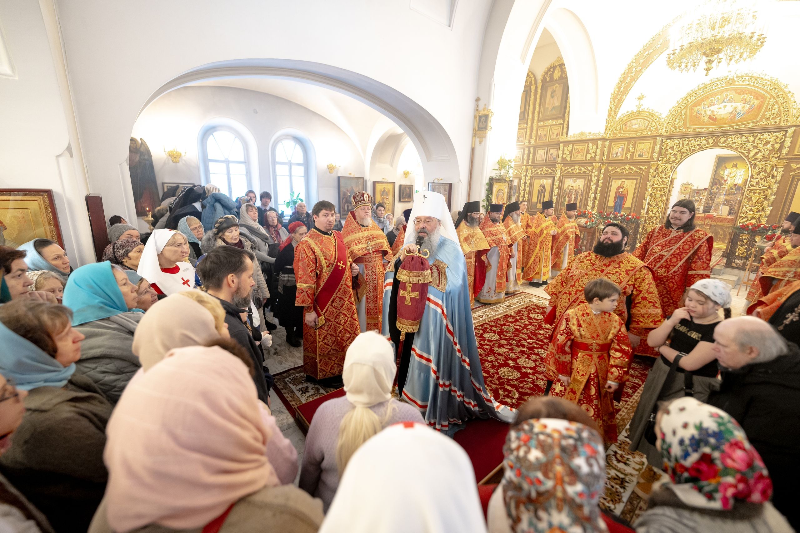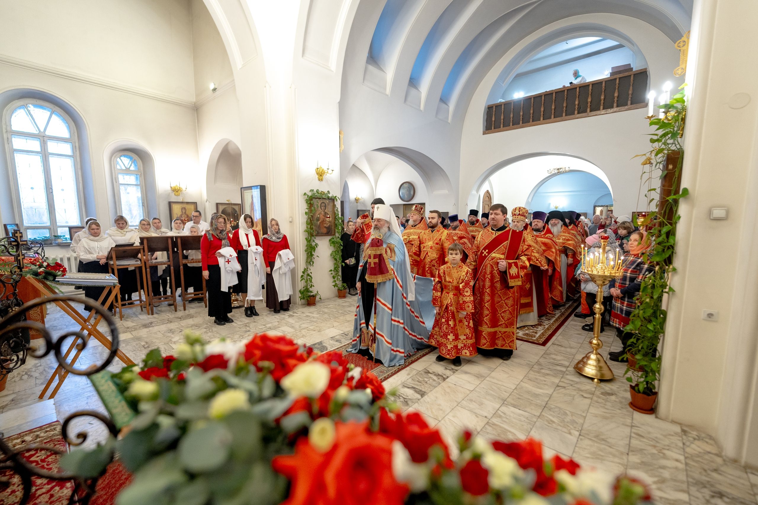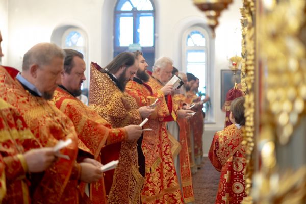Песнопения исполнили два хора: архиерейский смешанный под управлением Марины Литвиненко и приходской под управлением Алисы Маминой.