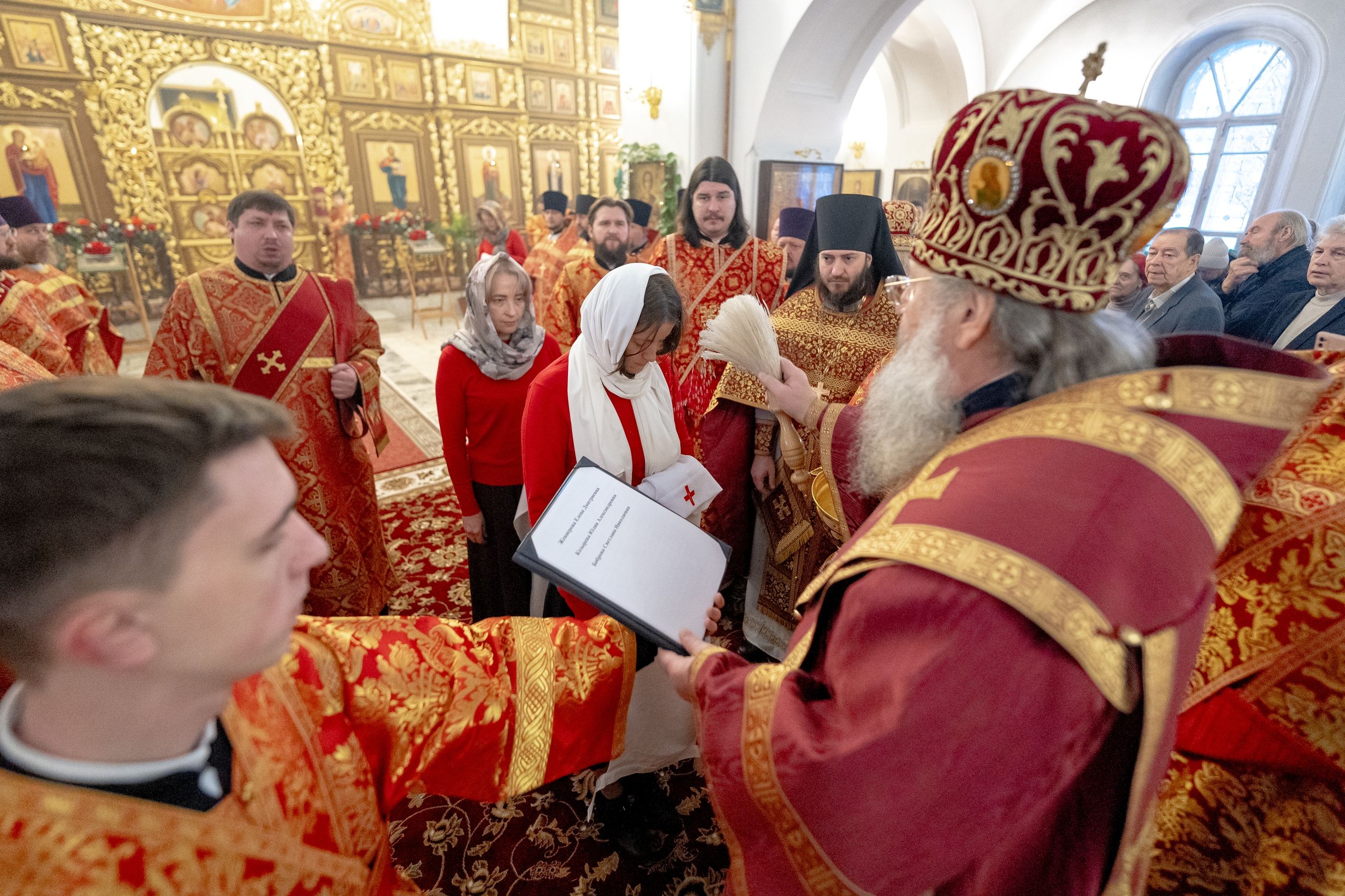Перед началом богослужения архипастырь совершил посвящение сестёр милосердия новосозданного сестричества во имя святого равноапостольного князя Владимира.