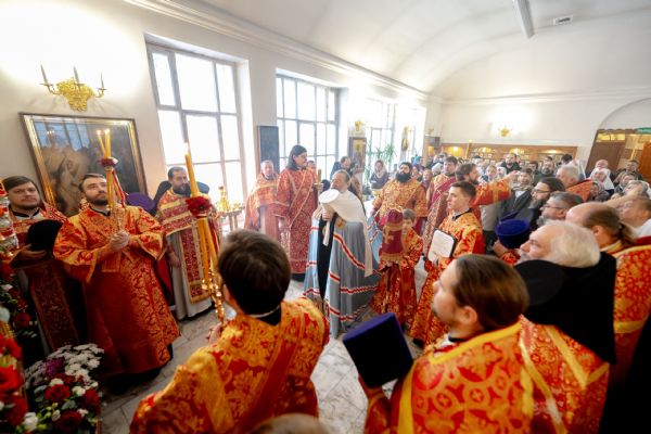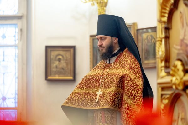 На мирной и сугубой ектениях были вознесены молитвы о Российском воинстве и о мире. По запричастном стихе проповедь произнёс игумен Пимен (Ивентьев). В завершение было совершено славление великомученице Варваре.