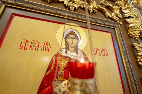 Сегодня мы молитвенно отмечаем праздник, который очень дорог нашему народу. Мощи святой великомученицы Варвары некогда были перенесены на нашу землю и ныне пребывают в Князь-Владимирском соборе Киева. Да, этот собор уже давно в руках раскольников, но мощи святой — здесь, на Русской земле, и великомученица была и остаётся покровительницей всего христианского рода, особенно же тех, кто её почитает. Сегодня мы с верой и любовью совершаем память этой удивительной святой, предстоя в замечательном храме, освящённом в её честь.