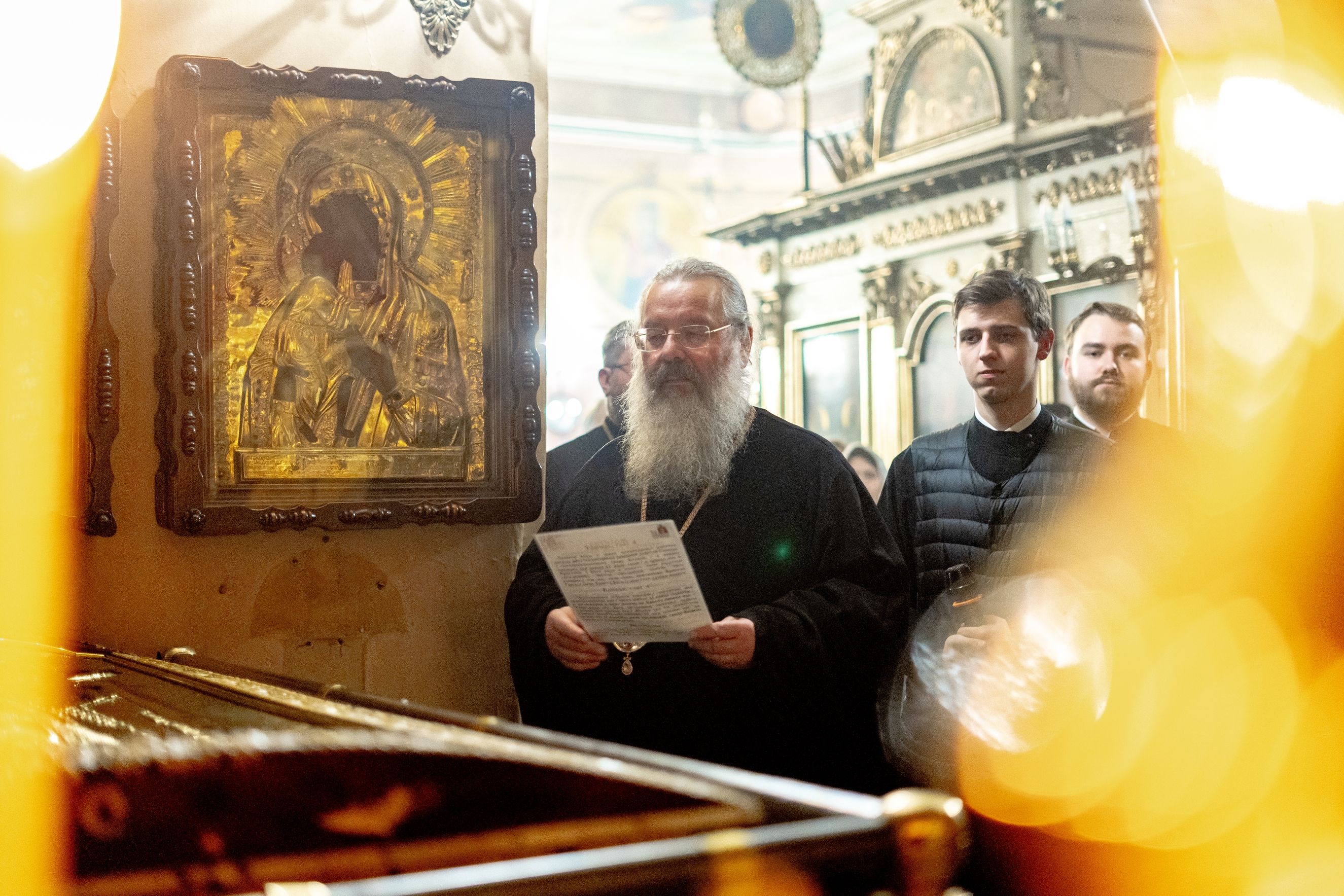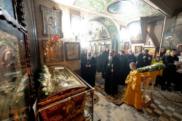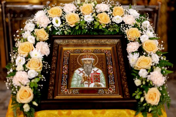 А сейчас мы с любовью молимся перед святыми мощами и желаем, чтобы каждый молитвенник и богомолец, пришедший сегодня в этот святой храм, получил утешение от апостола этой земли, от нашего первого епископа, который проложил дорогу христианству здесь, на Казанской земле.