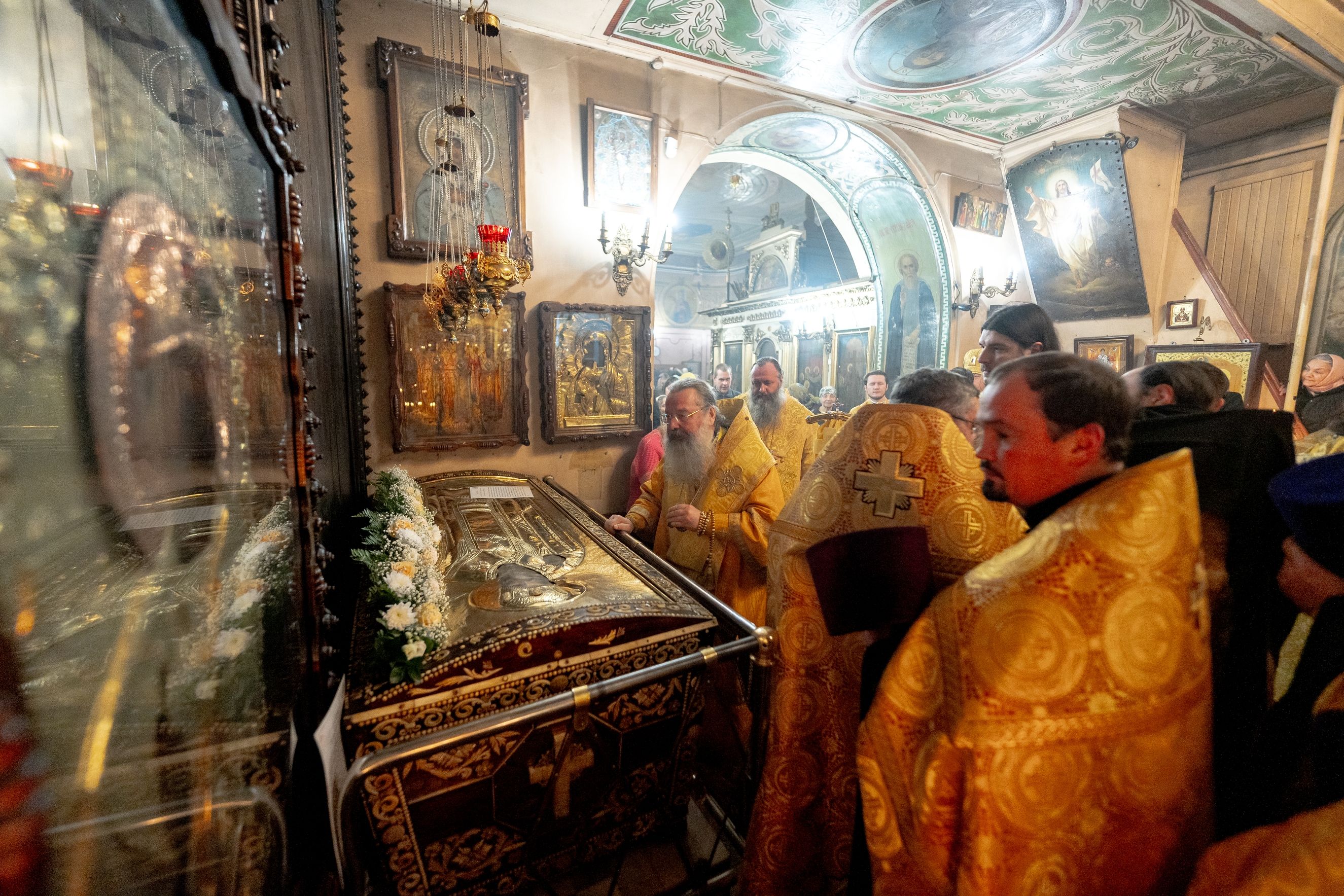 После чтения Евангелия на полиелее проповедь произнёс протоиерей Николай Троицкий. В завершение духовенство пропело величание святителю Гурию у раки с мощами святого.
