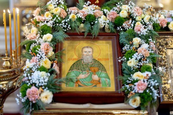 Наш храм является первым храмом в Русской Церкви, который избрал своим небесным покровителем отца Иоанна Кронштадтского. Сегодня мы молитвенно вспоминаем 30-летие освящение храма. 30 лет как в нашем городе отец Иоанн Кронштадтский не в гостях, а дома. И мы сегодня в этом Божием доме, доме отца Иоанна Кронштадтского, благоговейно празднуем его святую память. Его молитвами Господь Бог да спасёт и помилует нас. Верим, что Господь даст нам хотя бы частицы той духовной силы и благодати, которая была у отца Иоанна, чтобы и мы с вами полюбили Божественную литургию так, как любил её он. В наше время для христианина это едва ли не самое важное.
