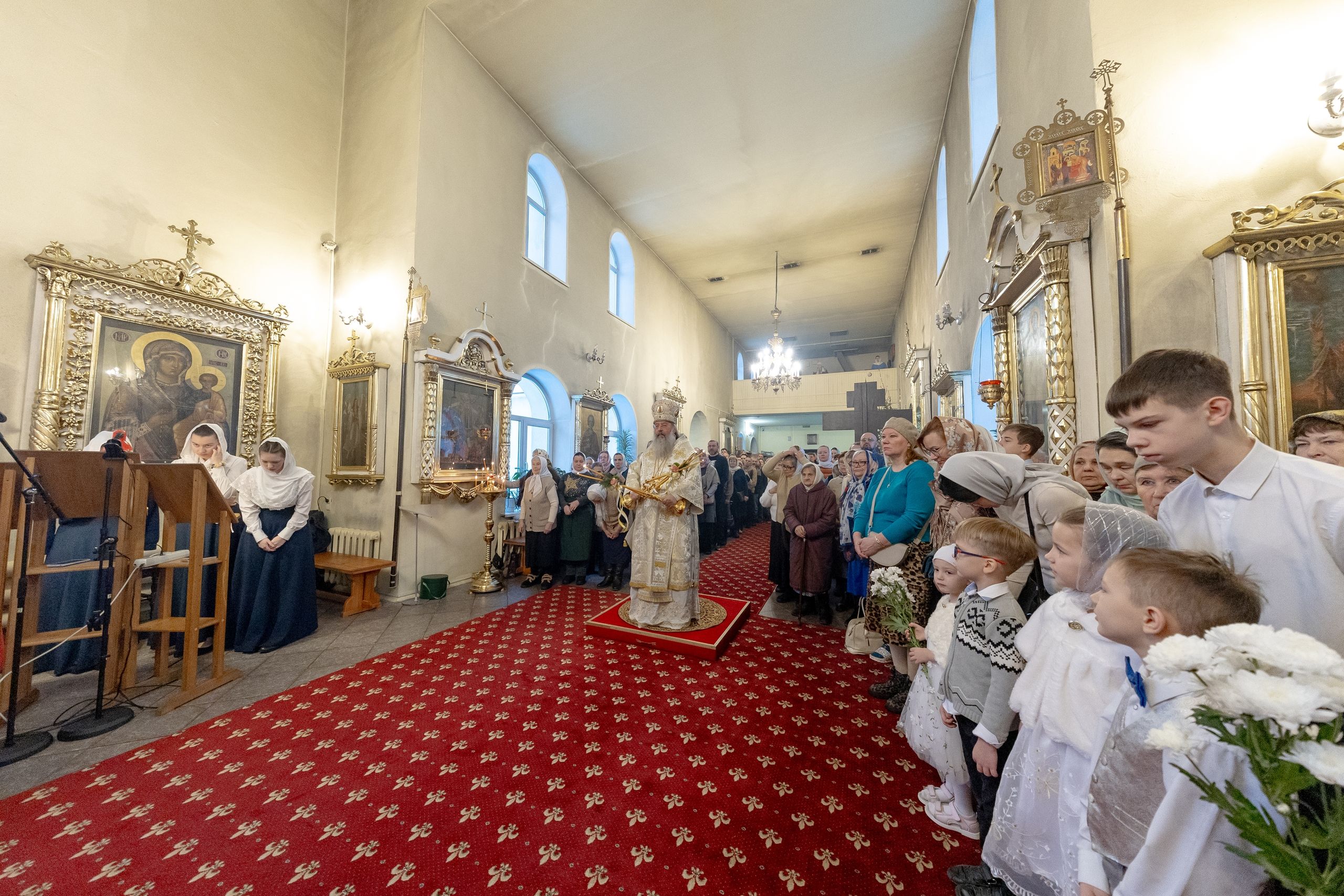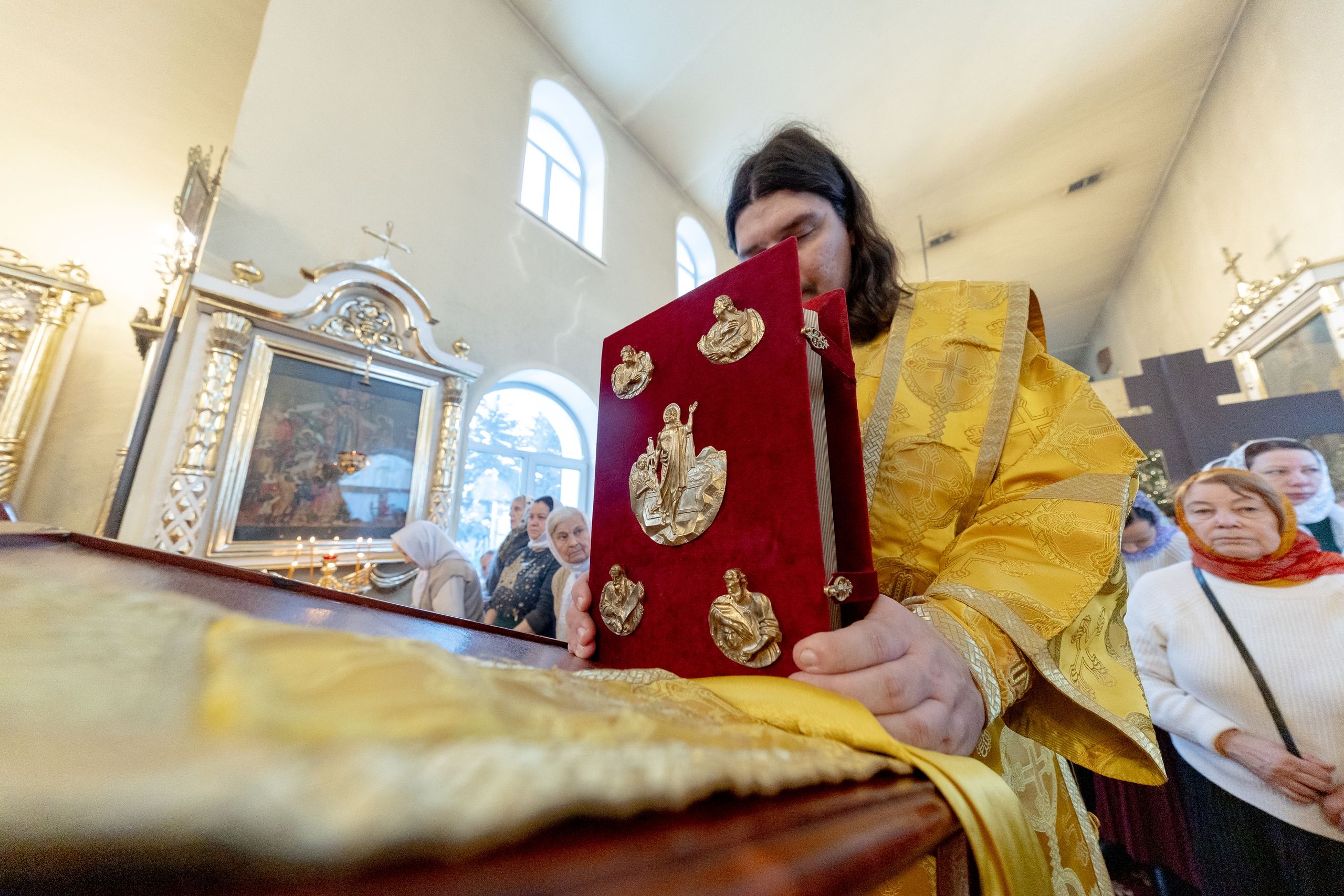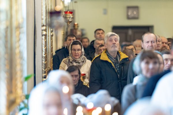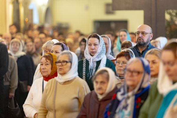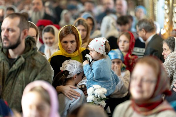 На мирной и сугубой ектениях были вознесены молитвенные прошения о Российском воинстве и молитва о мире.