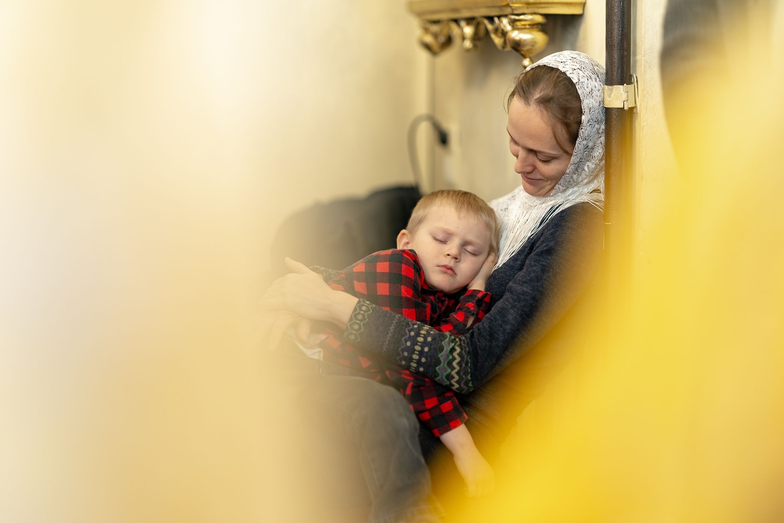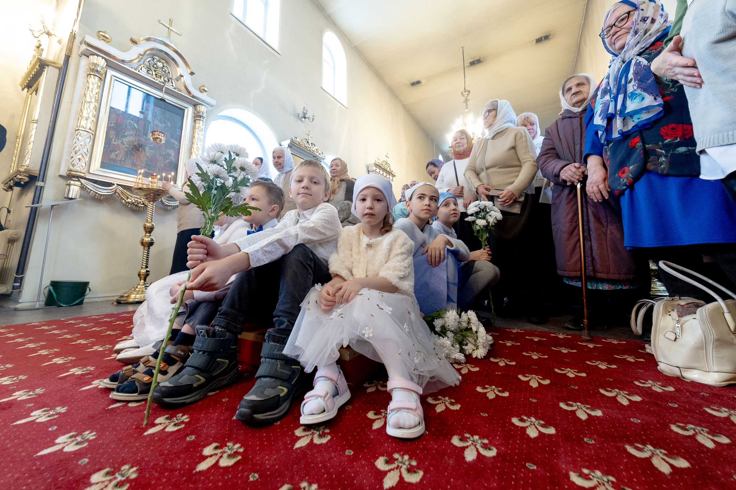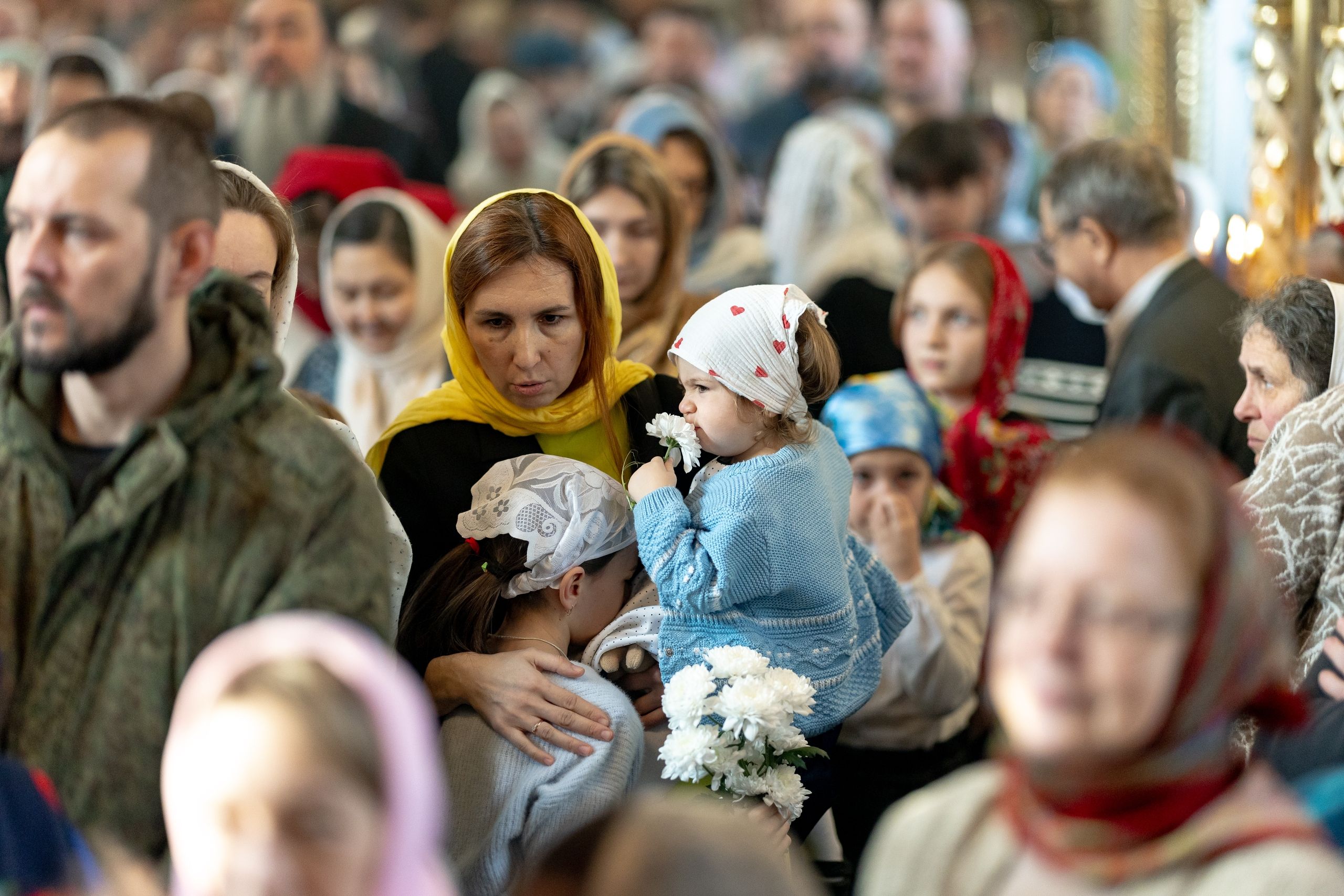 На мирной и сугубой ектениях были вознесены молитвенные прошения о Российском воинстве и молитва о мире.
