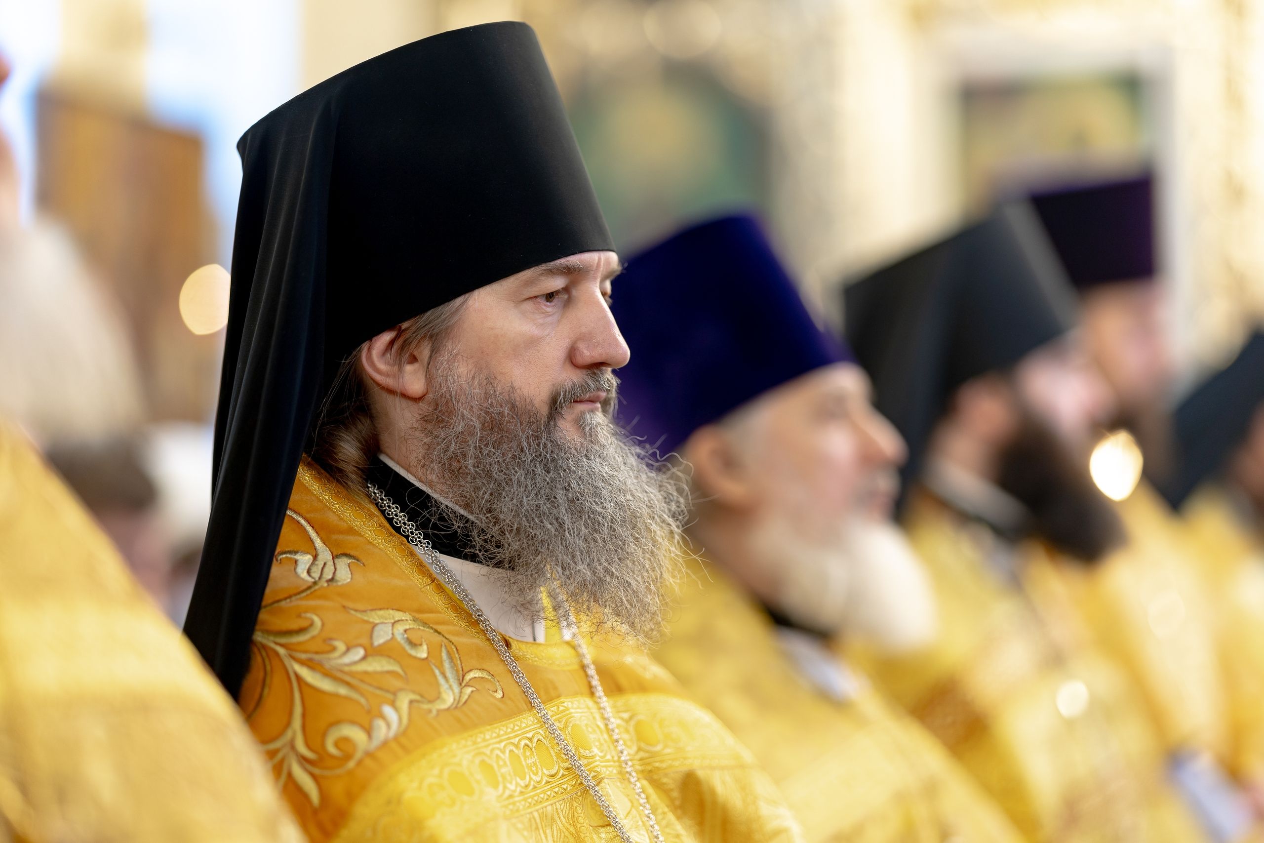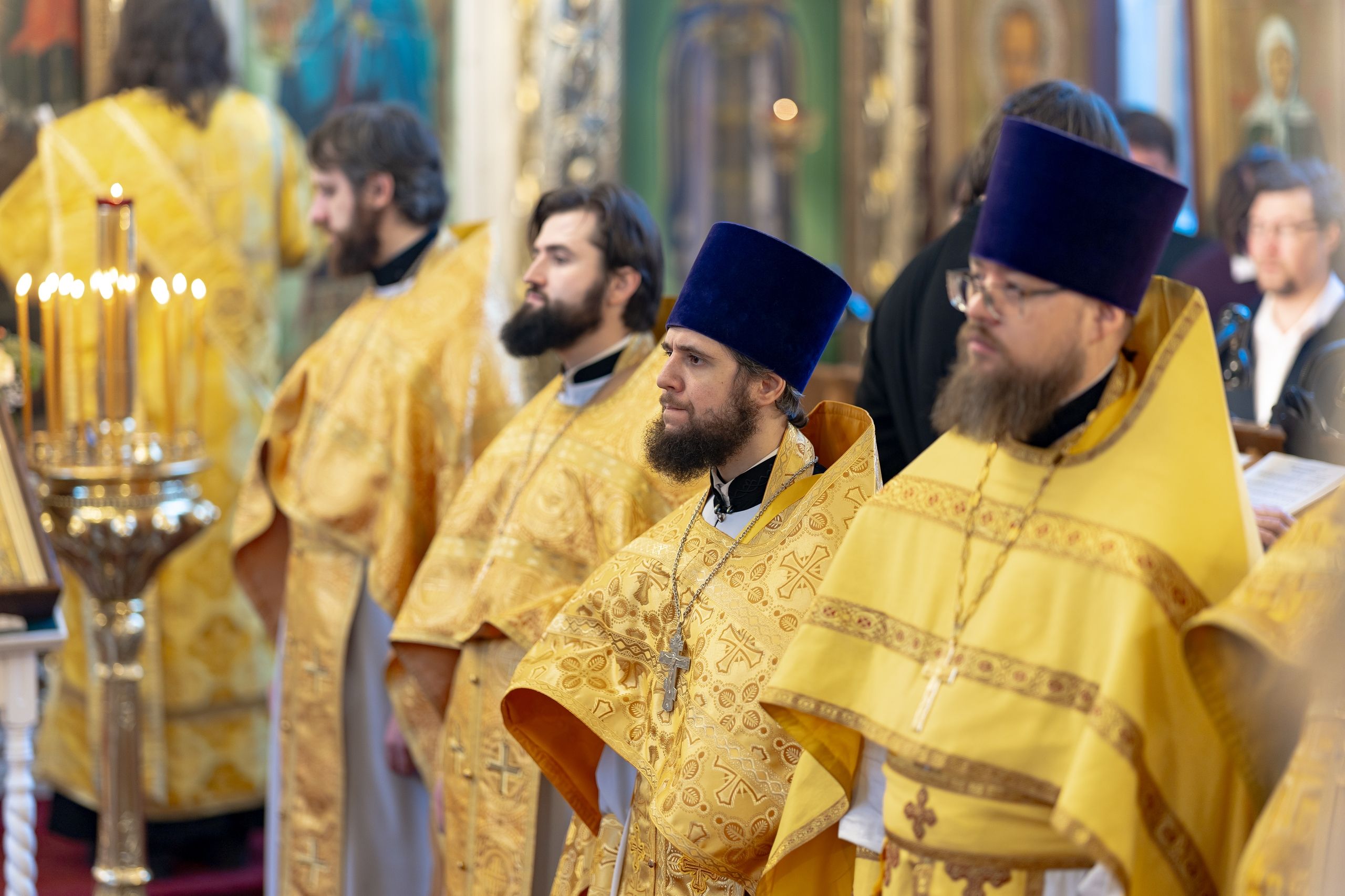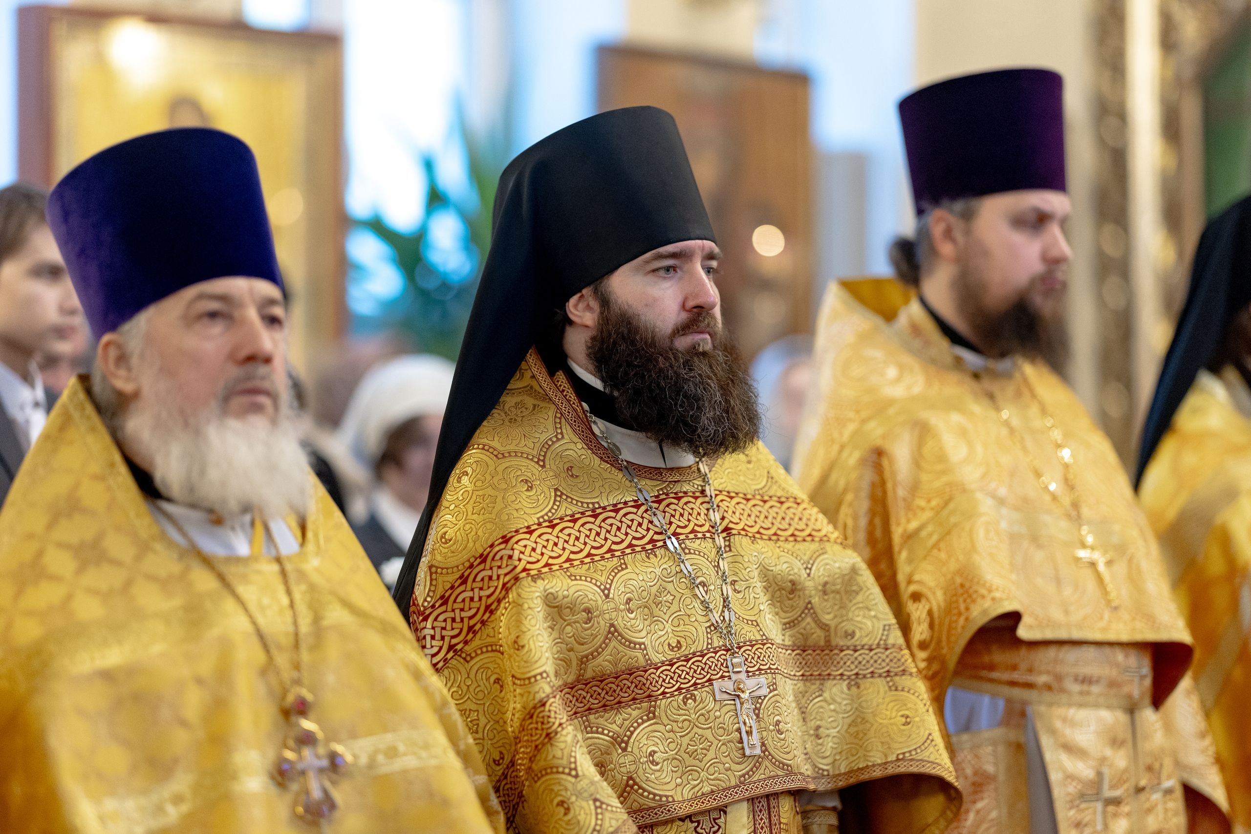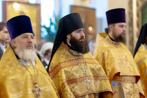 Его Высокопреосвященству сослужили секретарь Татарстанской митрополии иеромонах Кирилл (Корытко), благочинный I округа города Казани протоиерей Владимир Самойленко, наместник Свияжского Успенского мужского монастыря игумен Аркадий (Логинов), настоятель Иоанно-Предтеченского мужского монастыря города Казани игумен Алексий (Яцейко), преподаватели Казанской духовной семинарии в священном сане, клирики семинарского храма.
