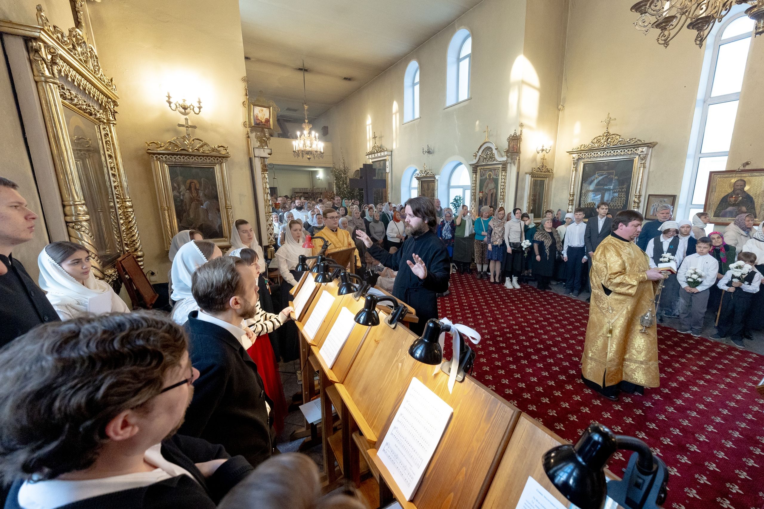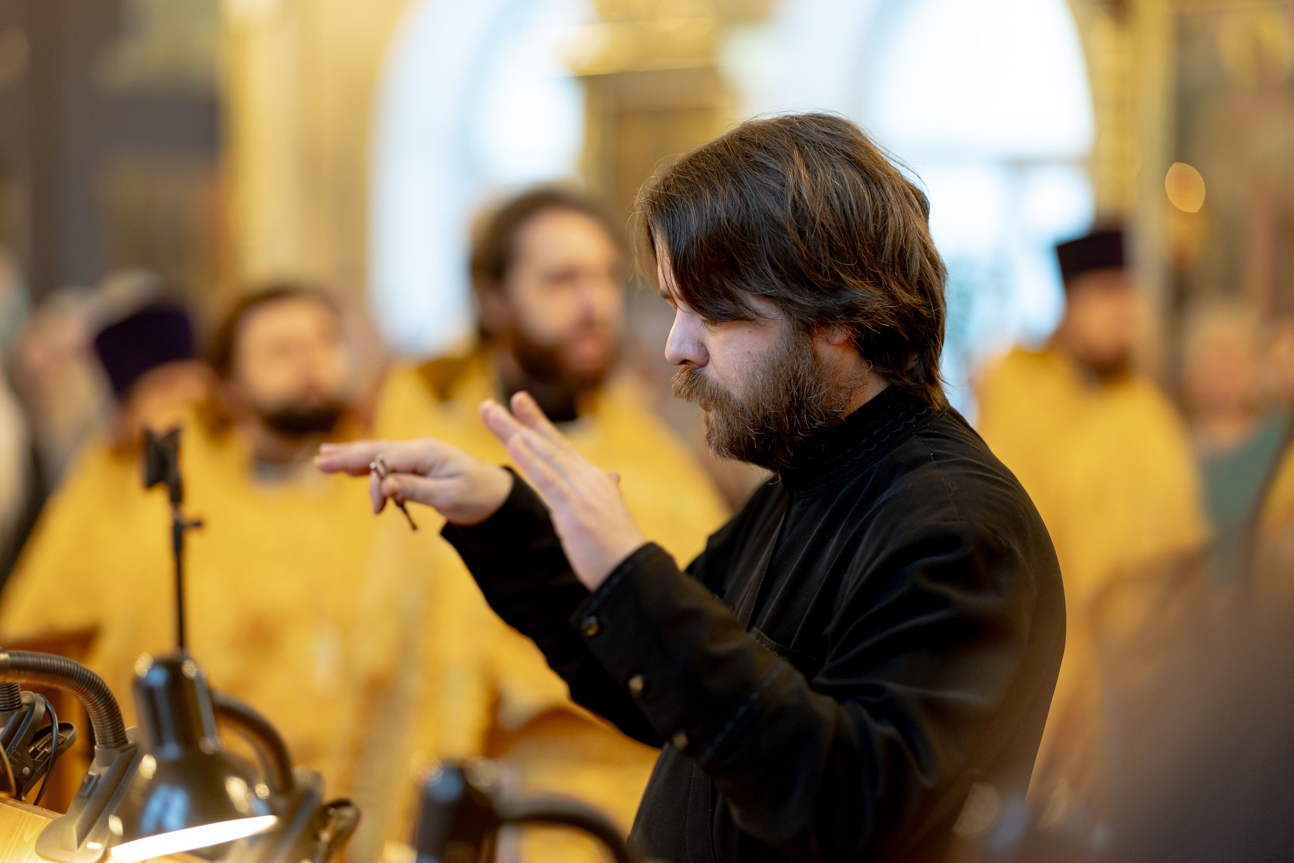 Песнопения исполнили хор студентов КазДС под управлением Дениса Рогова.