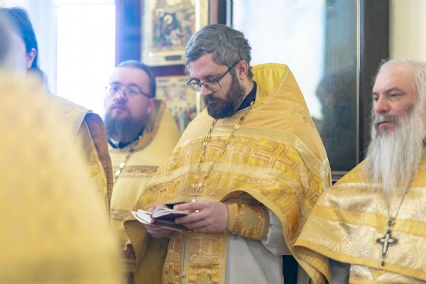 По запричастном стихе проповедь произнёс старший преподаватель кафедры богословия и философии КазДС иерей Александр Ермолин.