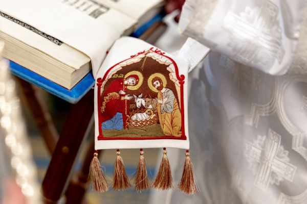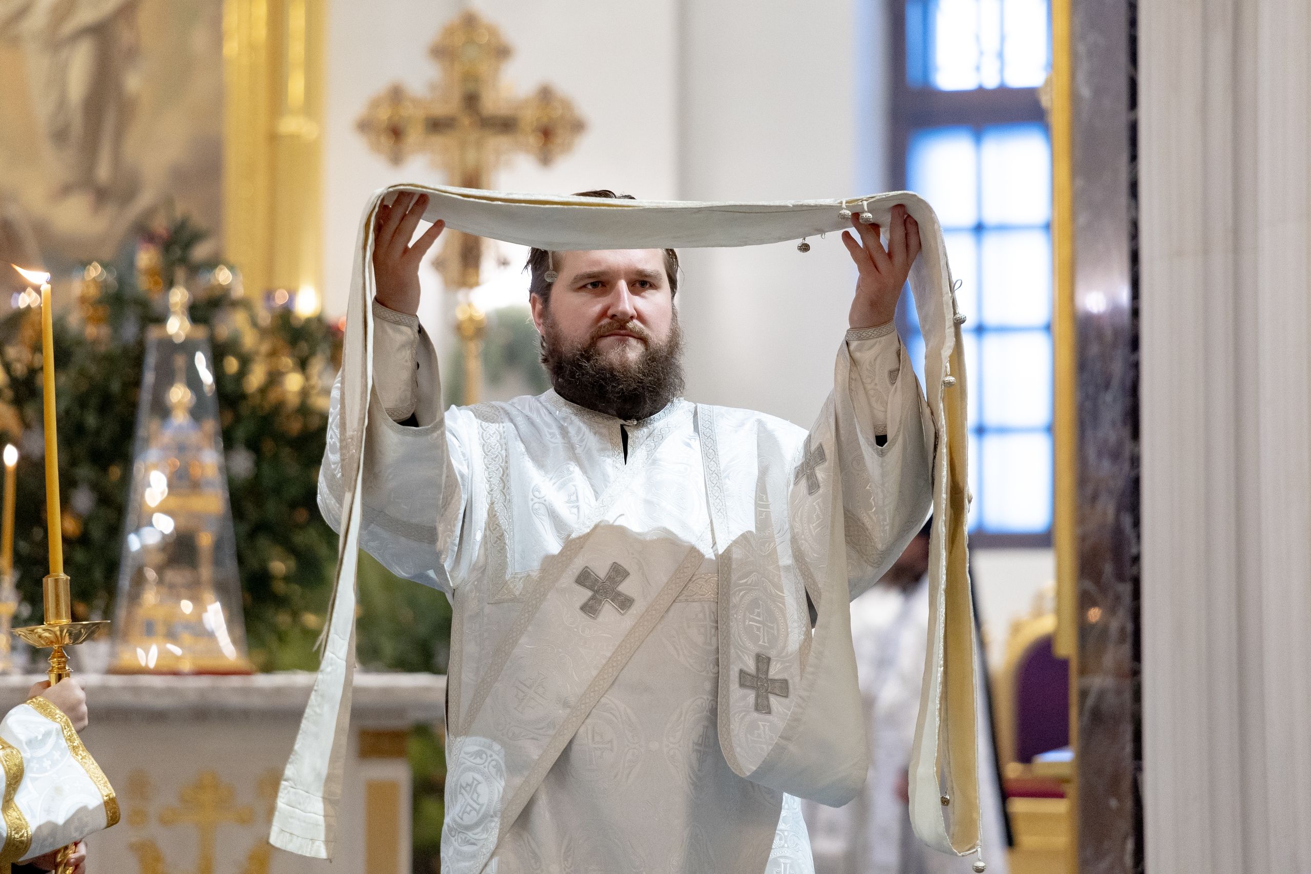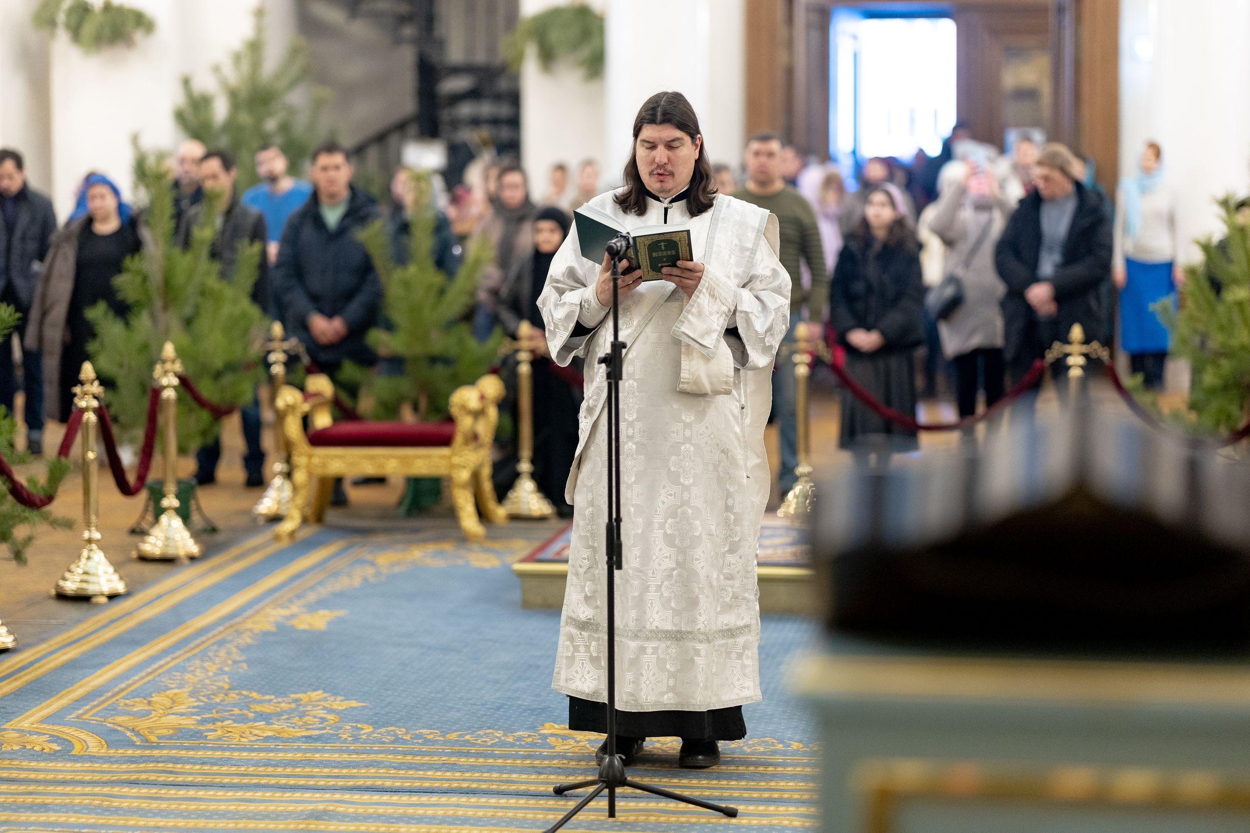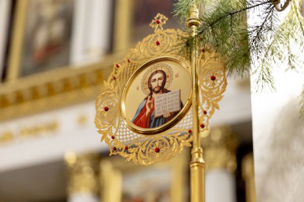 В завершение богослужения на середину храма была вынесена свеча, символизирующая Рождественскую звезду. Духовенство и хор пропели тропарь и кондак праздника Рождества Христова.