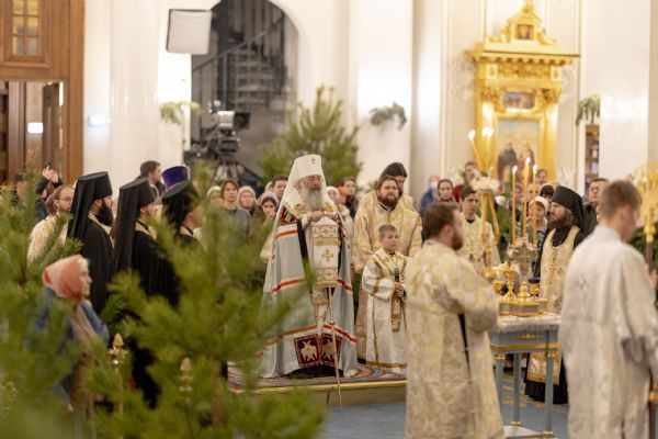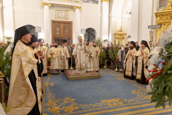 Вечером 6 января 2026 года, в канун праздника Рождества Господа Бога и Спаса нашего Иисуса Христа, митрополит Казанский и Татарстанский Кирилл совершил всенощное бдение в кафедральном соборе Казанской иконы Божией Матери Казанского Богородицкого мужского монастыря.