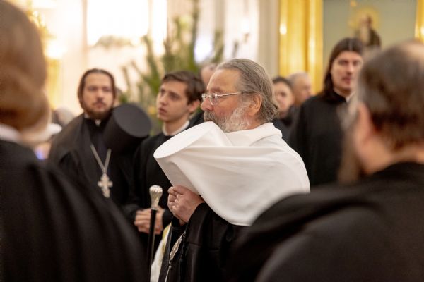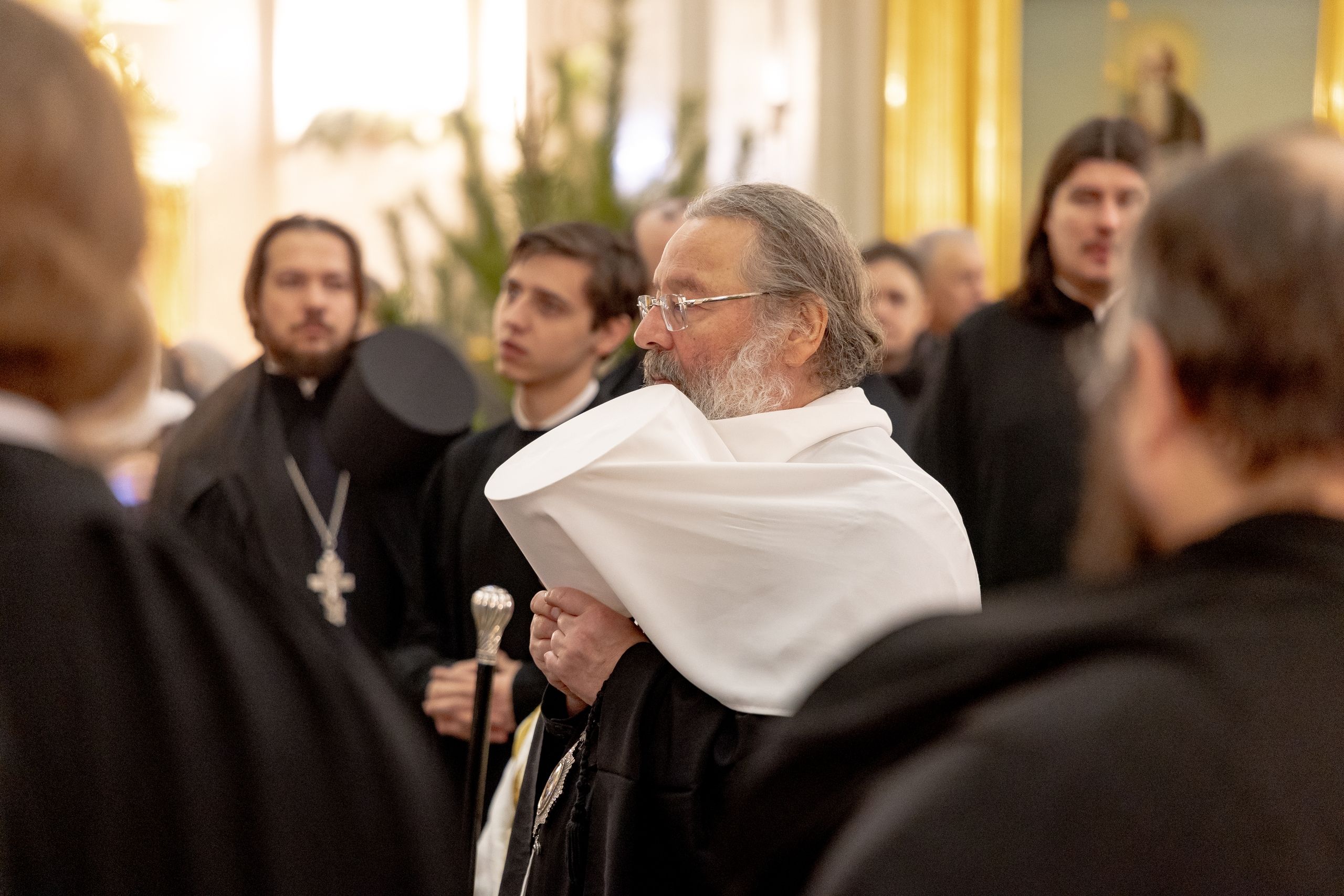 Песнопения исполнили два архиерейских хора: смешанный под управлением Марины Литвиненко и мужской под управлением Дениса Рогова.