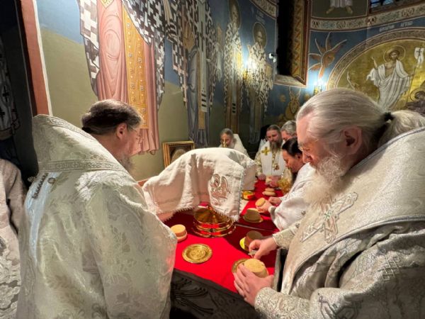 Божественную литургию совершили митрополит Ханты-Мансийский и Сургутский Павел, митрополит Казанский и Татарстанский Кирилл, митрополит Сингапурский и Юго-Восточно-Азиатский Сергий, митрополит Екатеринбургский и Верхотурский Евгений, архиепископ Салехардский и Ново-Уренгойский Николай, епископ Тихвинский и Лодейнопольский Мстислав, епископ Югорский и Няганский Михаил.