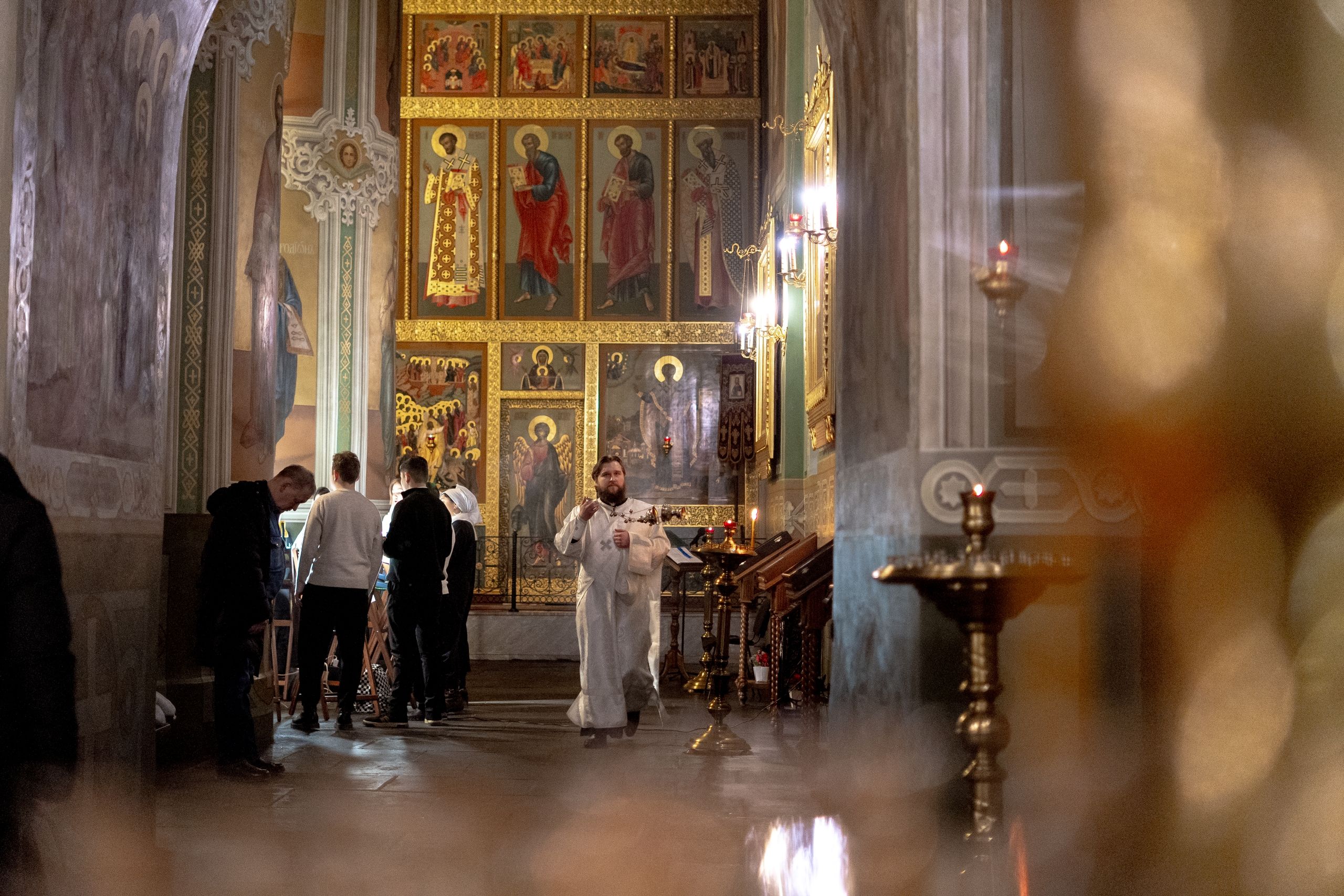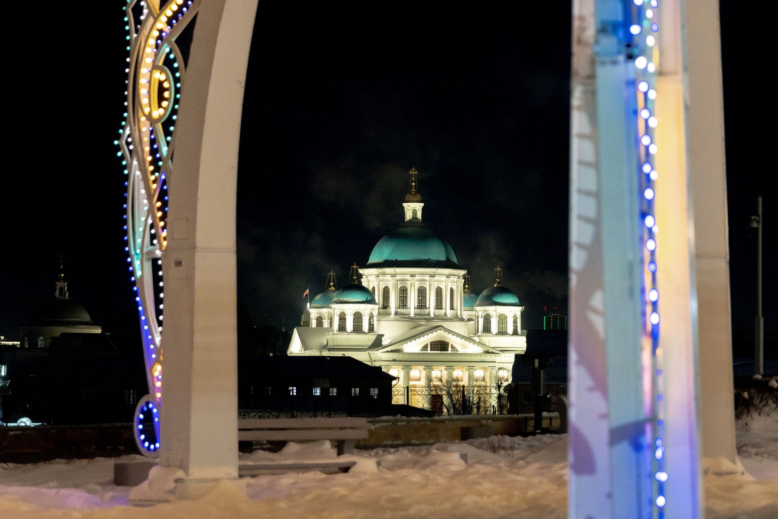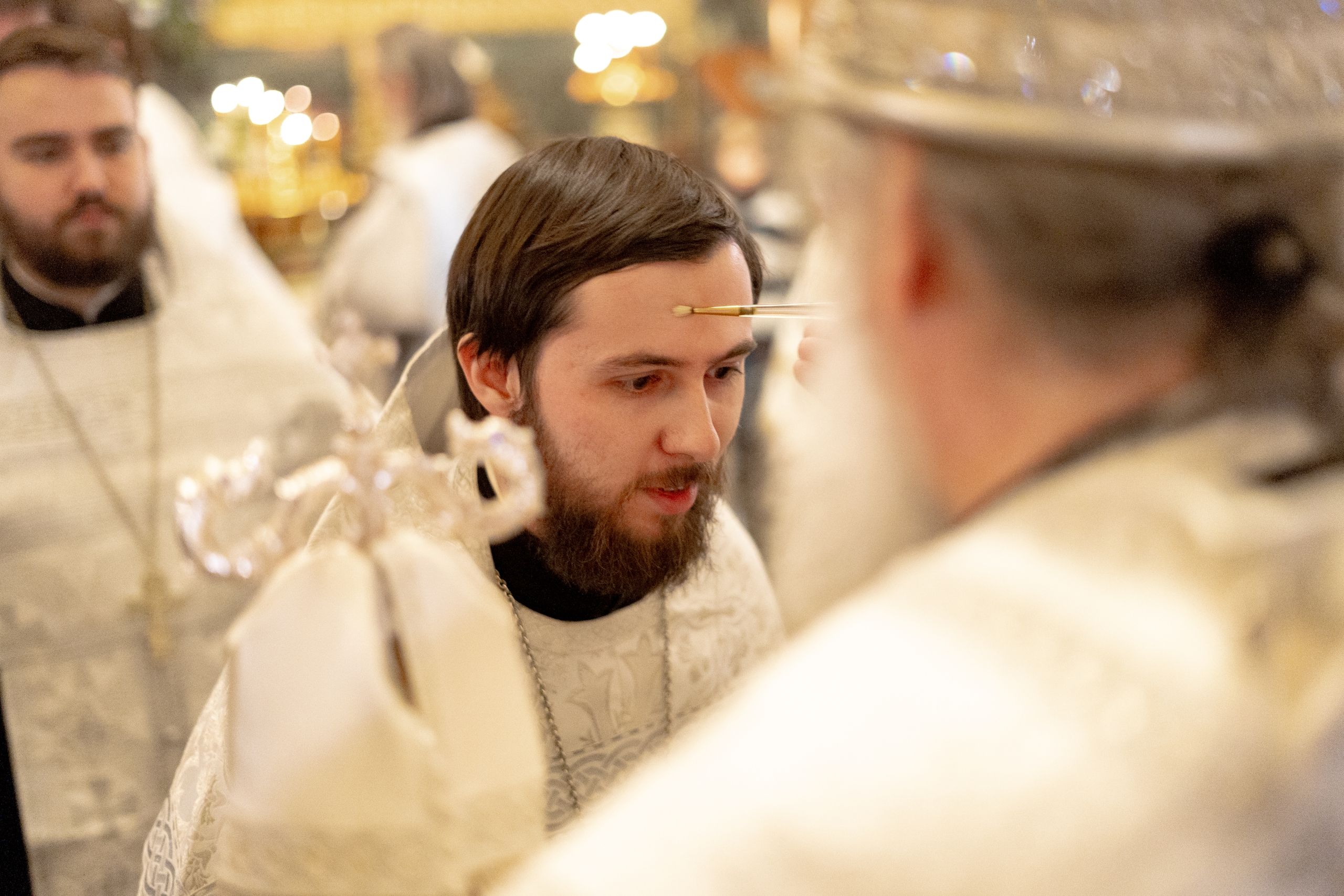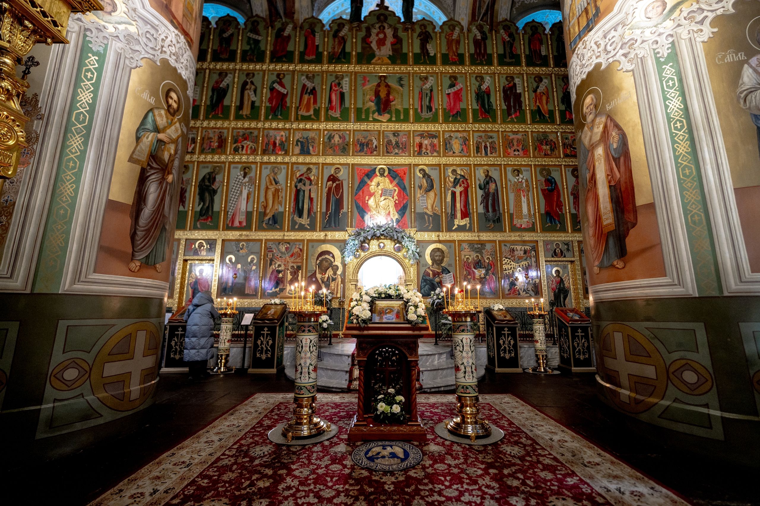 Его Высокопреосвященству сослужили благочинный I Казанского округа протоиерей Владимир Самойленко, ключарь Благовещенского собора иерей Виктор Бельских, клирик собора иерей Александр Махов, клирики храма преподобного Серафима Саровского города Казани иерей Никита Ярош и иерей Роман Ермолаев.