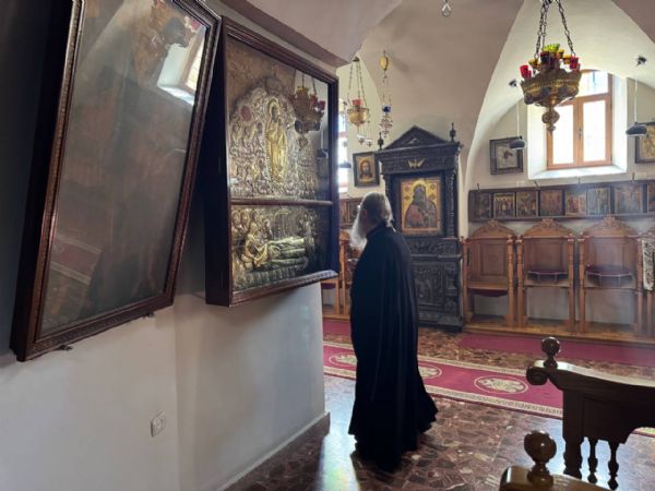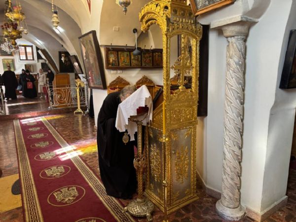 После беседы с Патриархом Феофилом митрополит Кирилл в сопровождении священнослужителей посетил монастырь святых равноапостольных Константина и Елены при Иерусалимской Патриархии.
