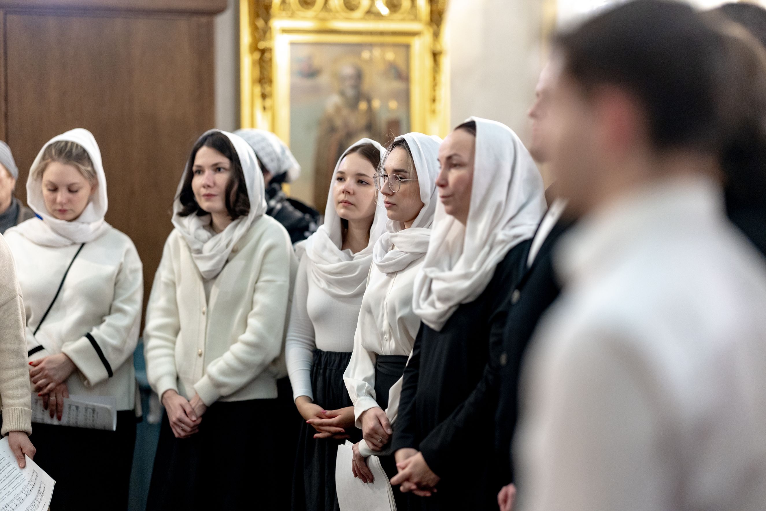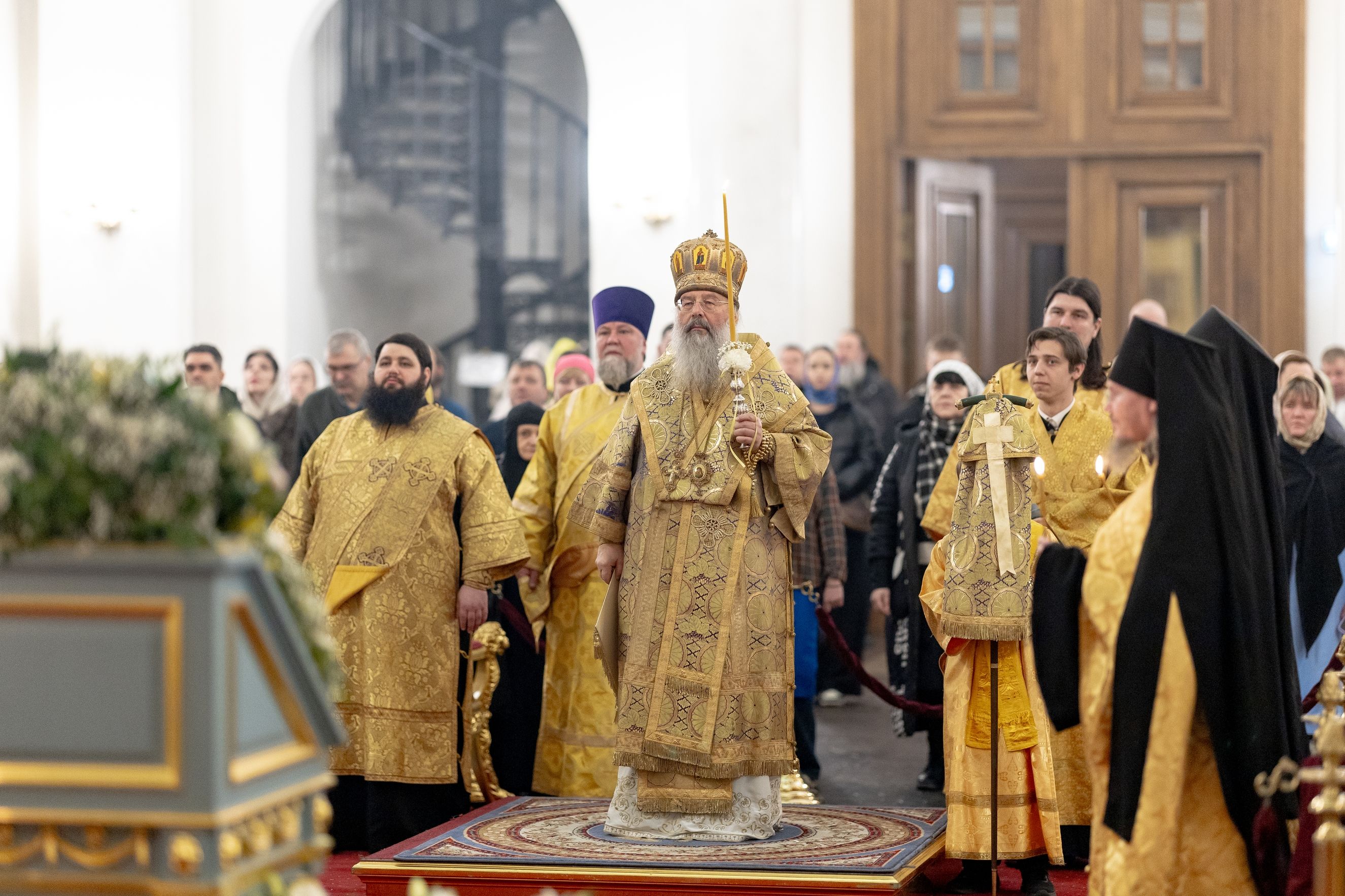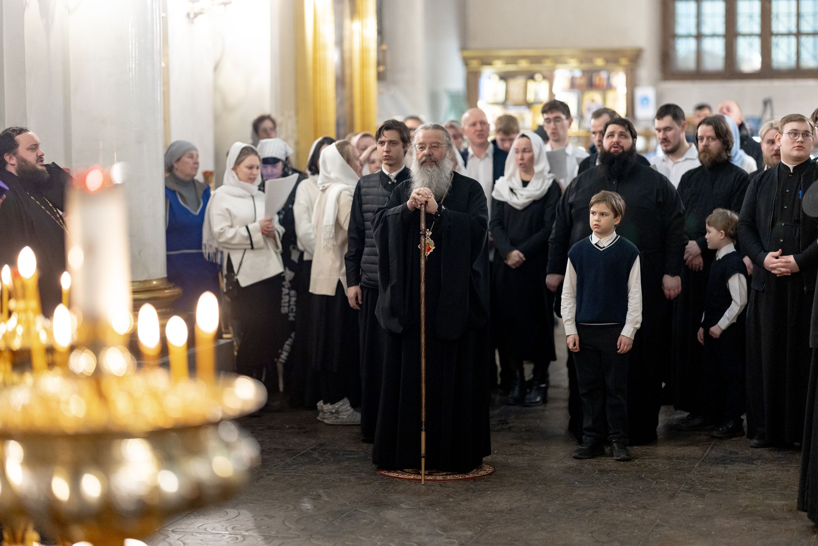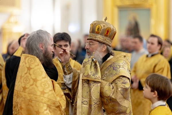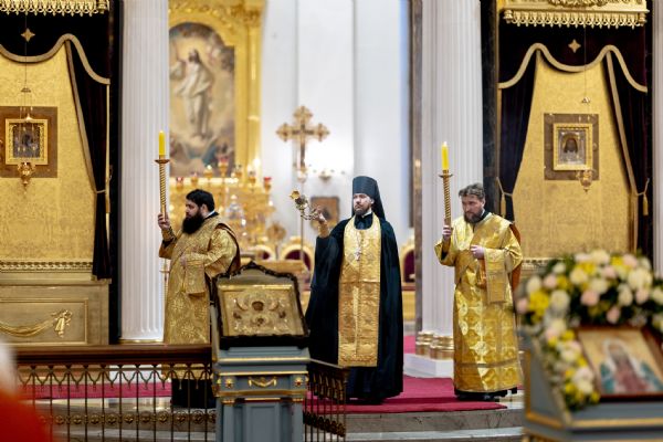 Песнопения исполнили два архиерейских хора: смешанный под управлением Марины Литвиненко и мужской под управлением Дениса Рогова.