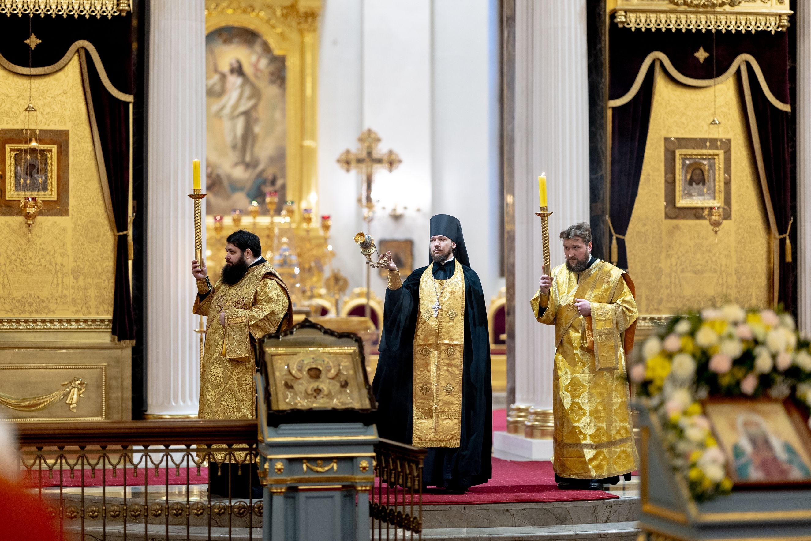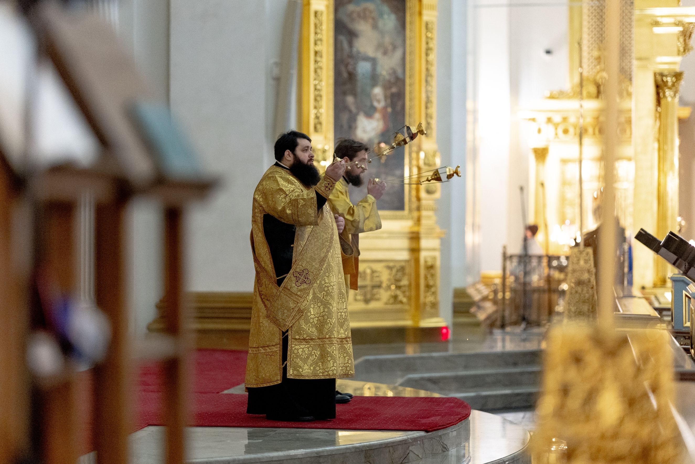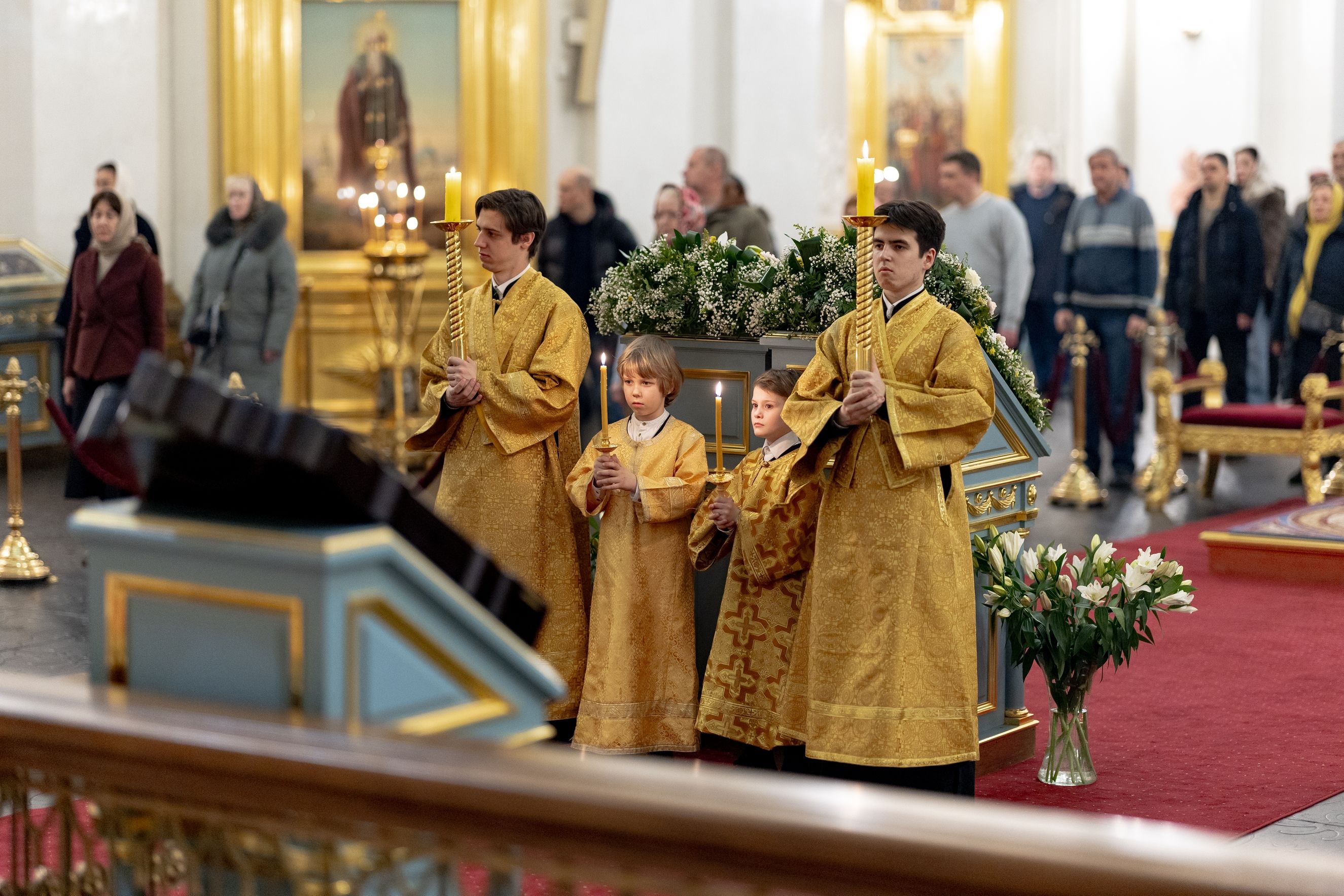 Песнопения исполнили два архиерейских хора: смешанный под управлением Марины Литвиненко и мужской под управлением Дениса Рогова.