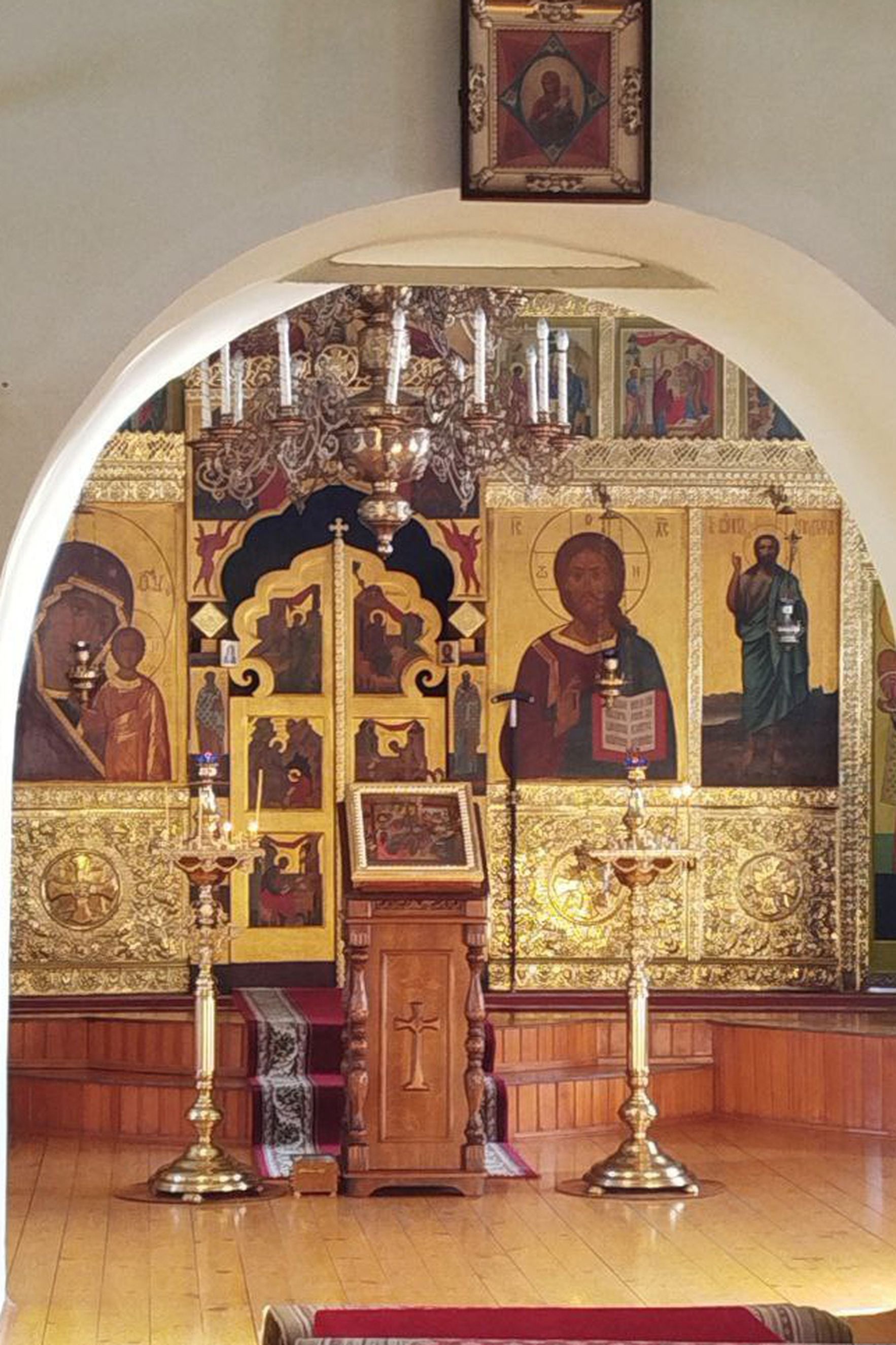 На мирной и сугубой ектениях были вознесены молитвы о Российском воинстве и о мире. В завершение было совершено славление чествуемому ныне угоднику Божию.