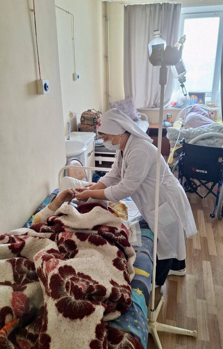 Добровольцы осуществляли уход за ранеными бойцами, помогали им переодеваться, проводить гигиенические процедуры, принимать пищу.