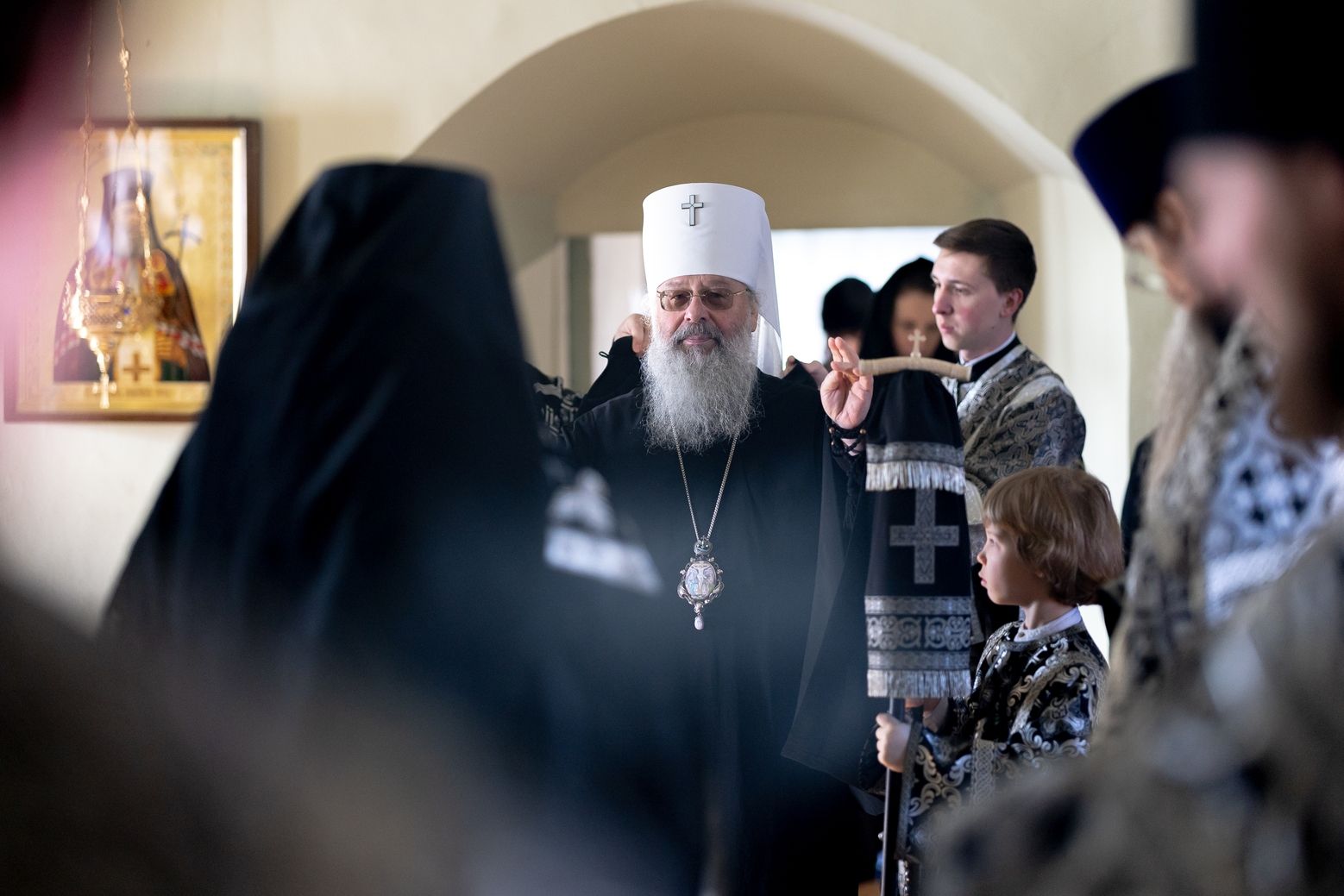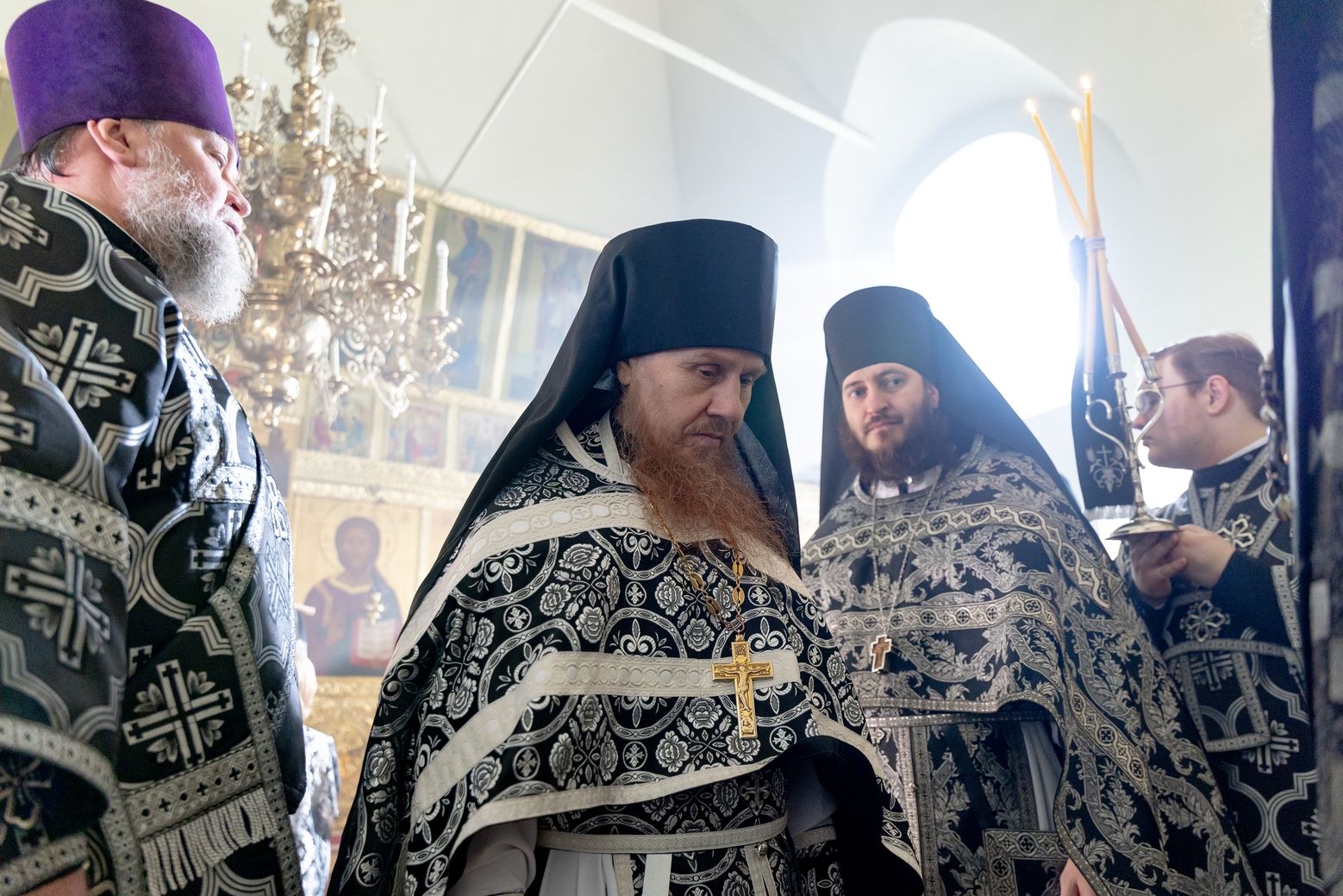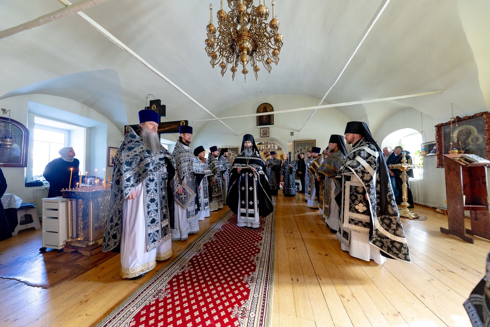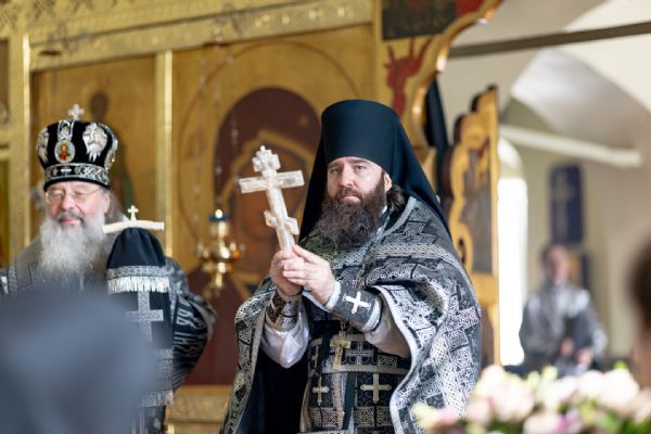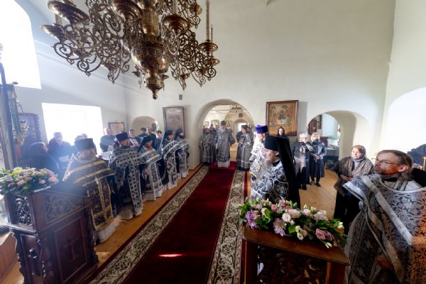 Его Высокопреосвященству сослужили секретарь Татарстанской митрополии иеромонах Кирилл (Корытко), благочинный монастырей Казанской епархии игумен Пимен (Ивентьев), настоятель обители игумен Алексий (Яцейко), клирик Алексеевского ставропигиального женского монастыря города Москвы протоиерей Артемий Владимиров, настоятель Петропавловского храма города Зеленодольска протоиерей Святослав Мирганиев, ключарь Благовещенского собора Казанского кремля иерей Виктор Бельских, настоятель Богоявленского храма села Анатыш (Рыбно-Слободский район РТ) иерей Дионисий Ветошкин, клирик храма Рождества Иоанна Предтечи села Ключищи иерей Олег Медведев, братия обители в священном сане.