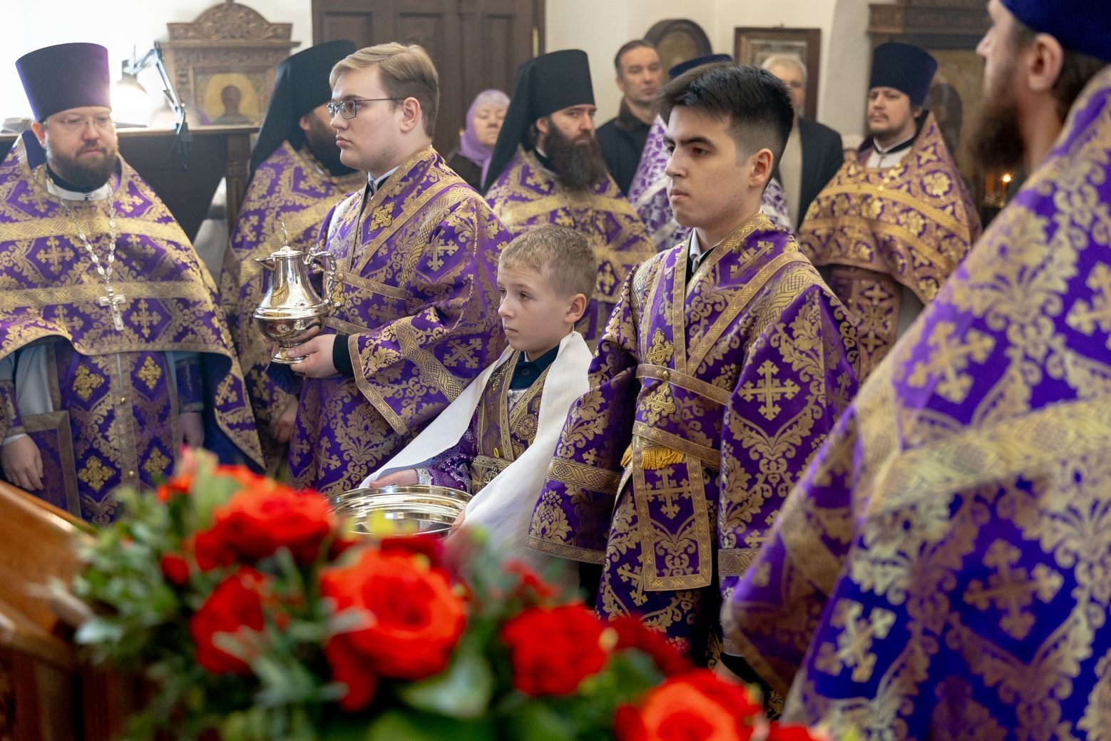 Архипастырям сослужили секретарь Татарстанской митрополии иеромонах Кирилл (Корытко), благочинный I Казанского округа протоиерей Владимир Самойленко, настоятель Спасо-Евдокиевского храма иерей Димитрий Аликин, наместник Свияжского Успенского монастыря игумен Аркадий (Логинов), настоятель храма Ярославских чудотворцев на Арском кладбище города Казани протоиерей Николай Троицкий, ректор Казанской духовной семинарии иерей Никита Кузнецов, настоятель Иоанно-Предтеченского монастыря города Казани игумен Алексий (Яцейко), клирик храма благоверного князя Александра Невского города Казани протоиерей Сергий Хохлов, иеромонах Кирилл (Забавнов), настоятель архиерейского подворья священномученика Кирилла Казанского иерей Василий Крючков, ключарь Благовещенского собора Казанского кремля иерей Виктор Бельских.