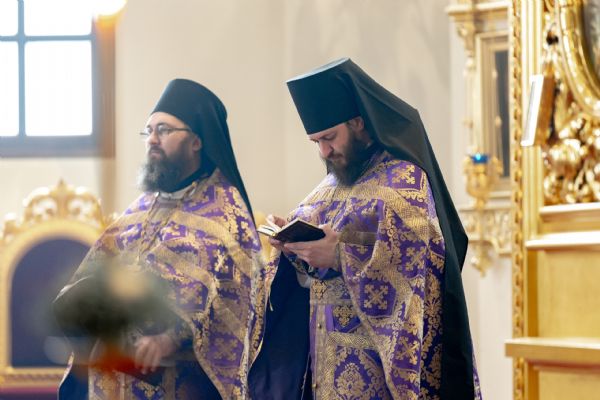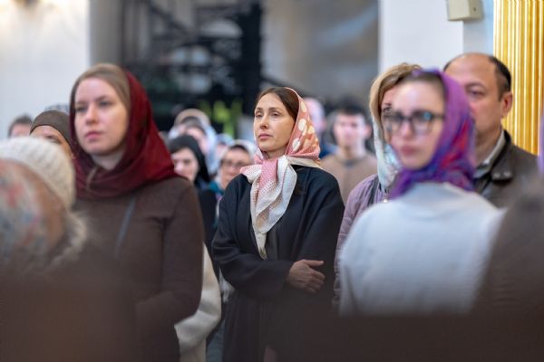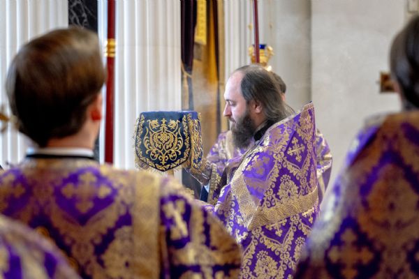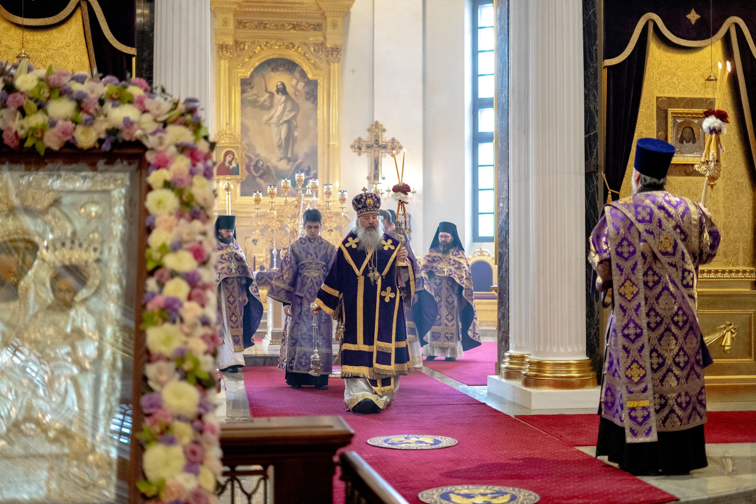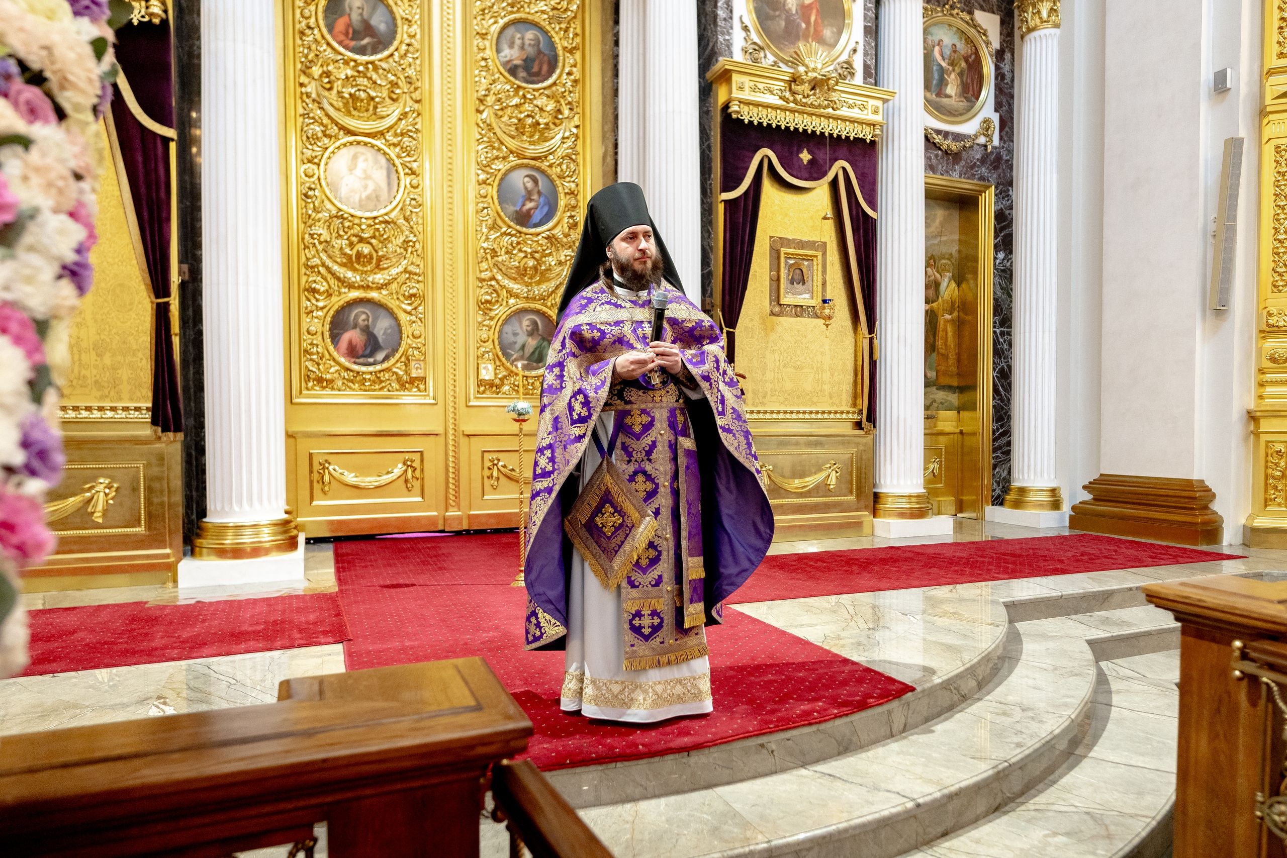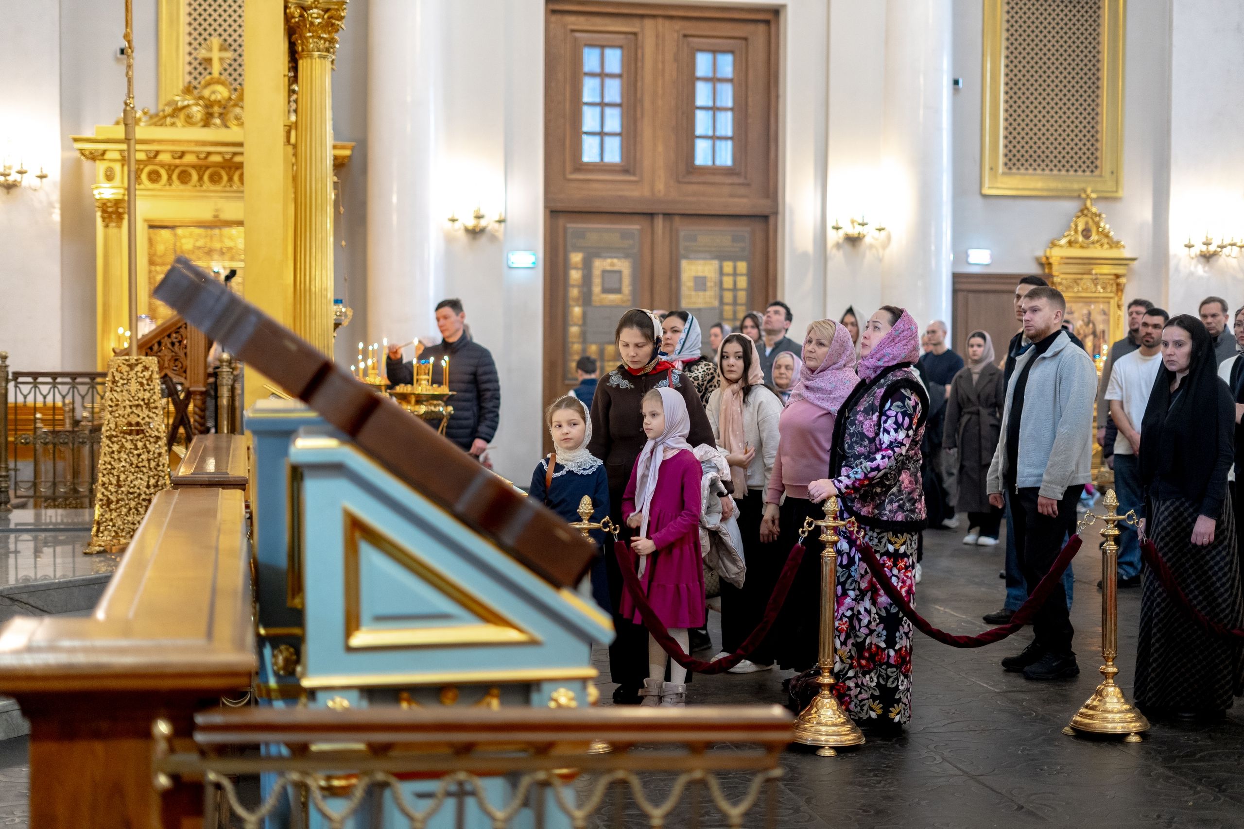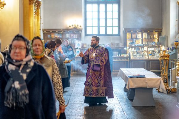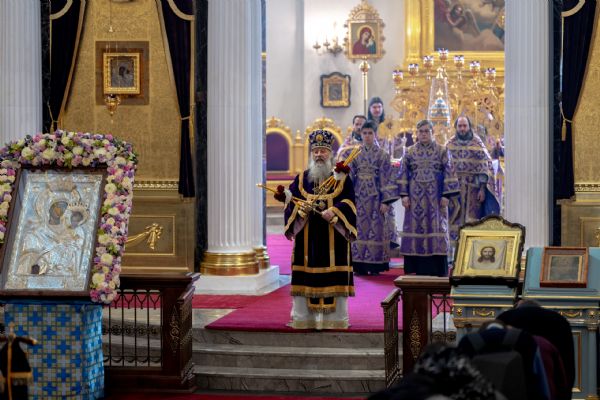 На мирной и сугубой ектениях были вознесены молитвы о Российском воинстве и о мире. По запричастном стихе проповедь произнёс иеромонах Кирилл (Корытко). В завершение богослужения духовенство и верующие пропели молитву «Царице моя Преблагая».