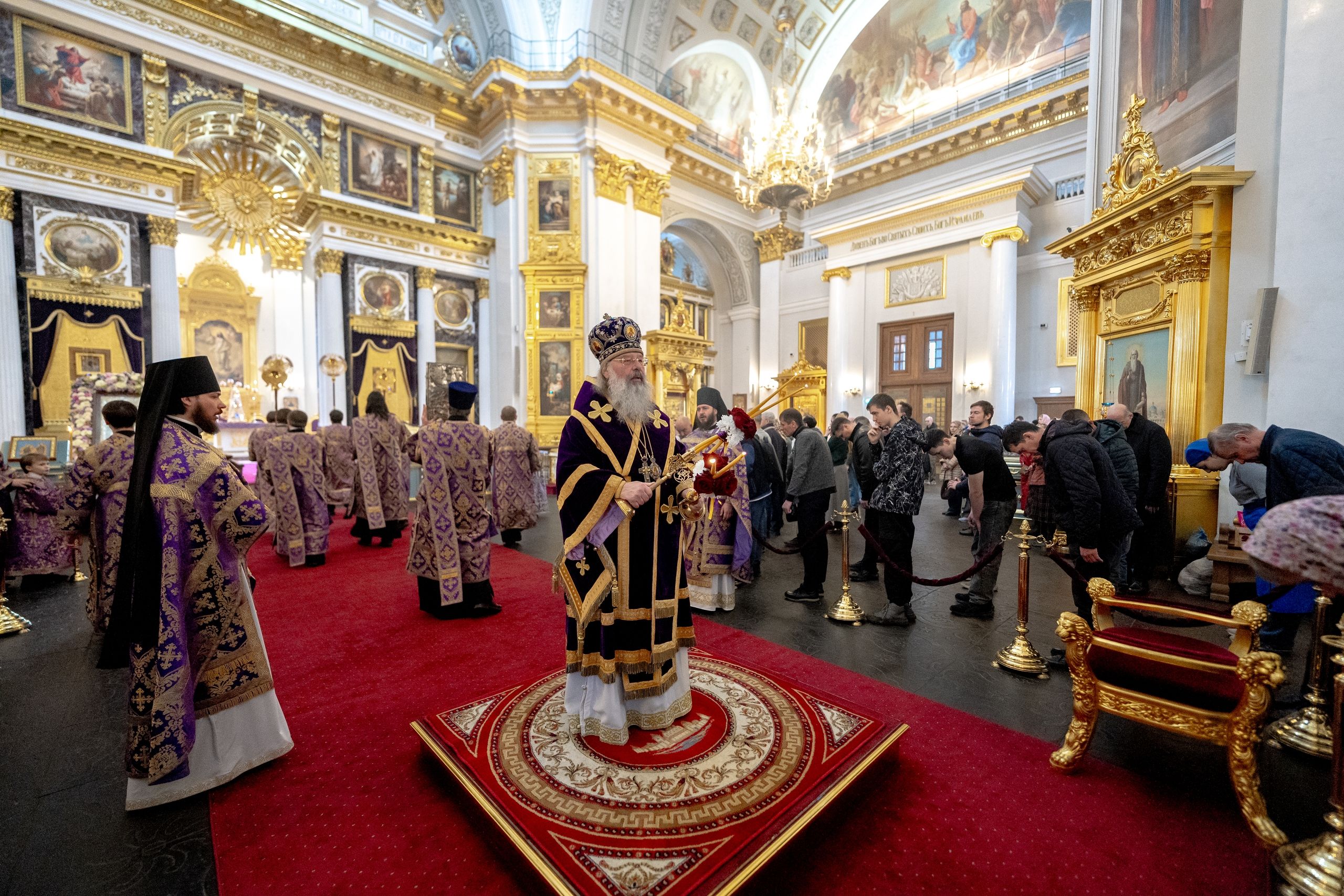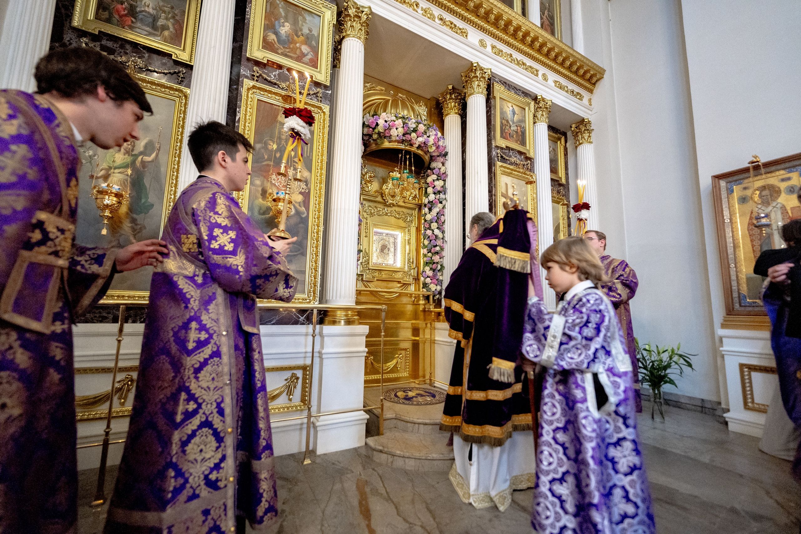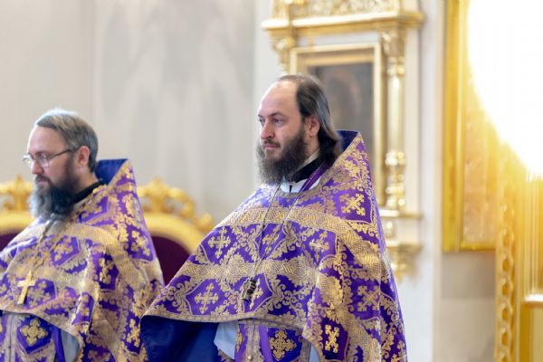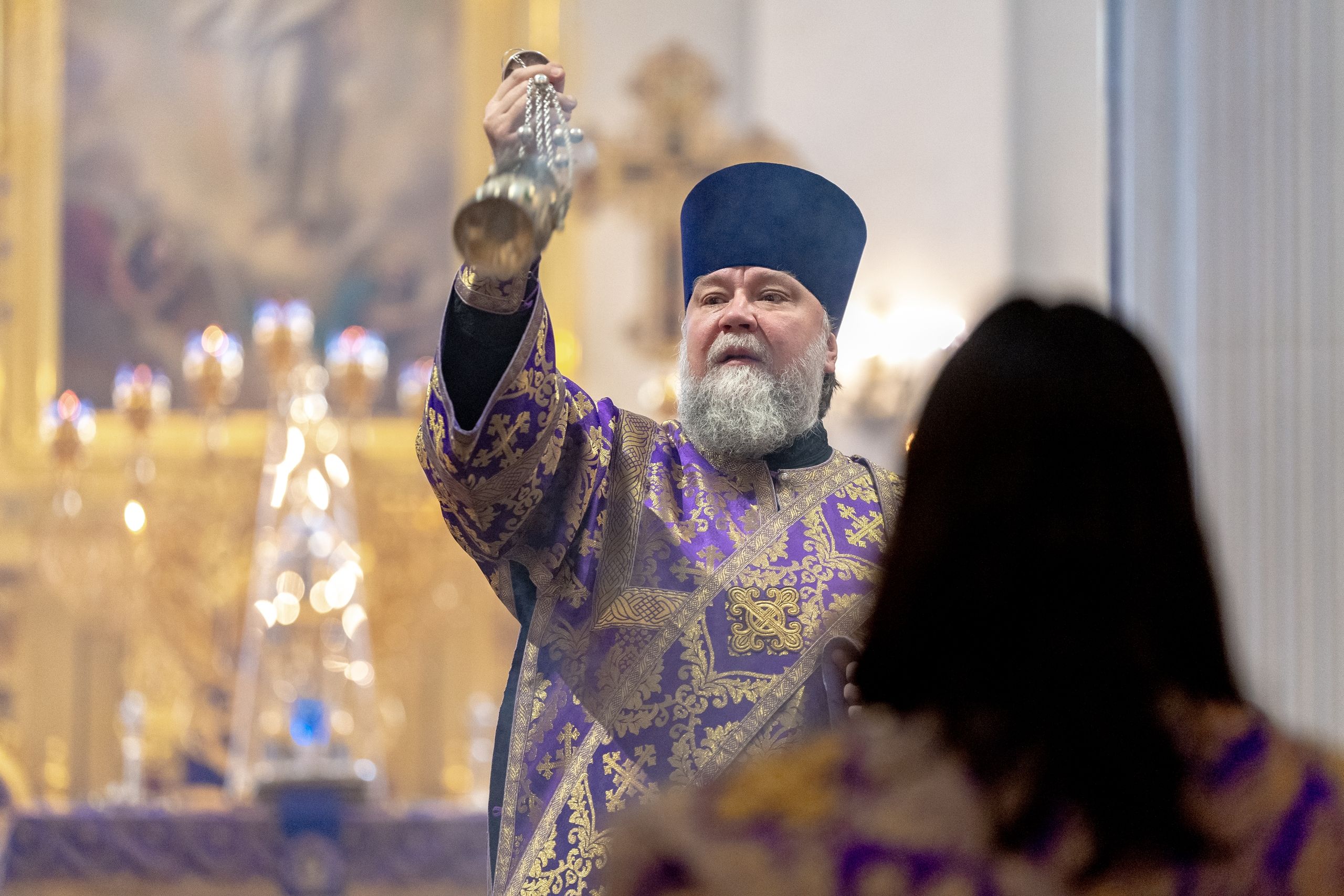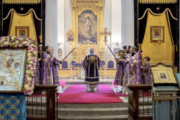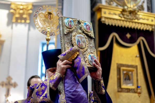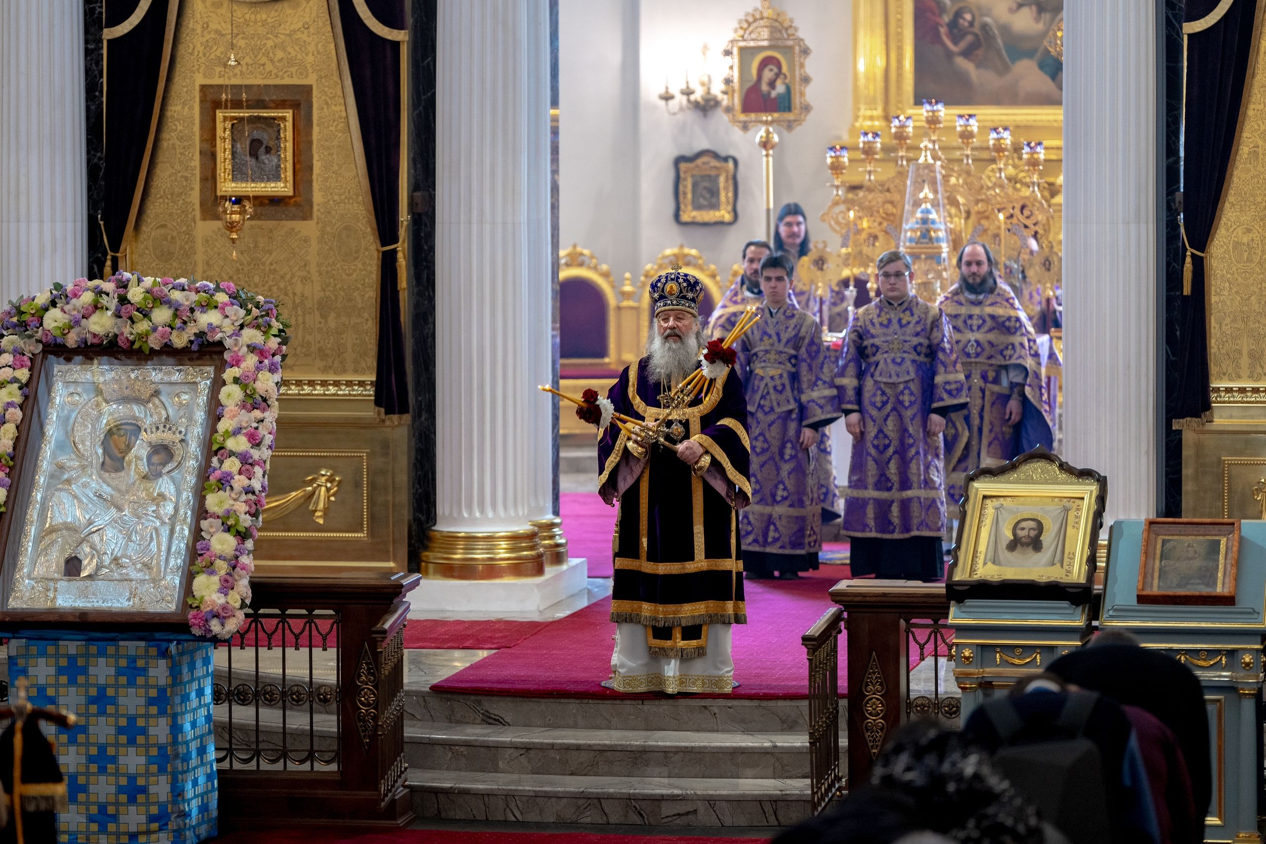 На мирной и сугубой ектениях были вознесены молитвы о Российском воинстве и о мире. По запричастном стихе проповедь произнёс иеромонах Кирилл (Корытко). В завершение богослужения духовенство и верующие пропели молитву «Царице моя Преблагая».
