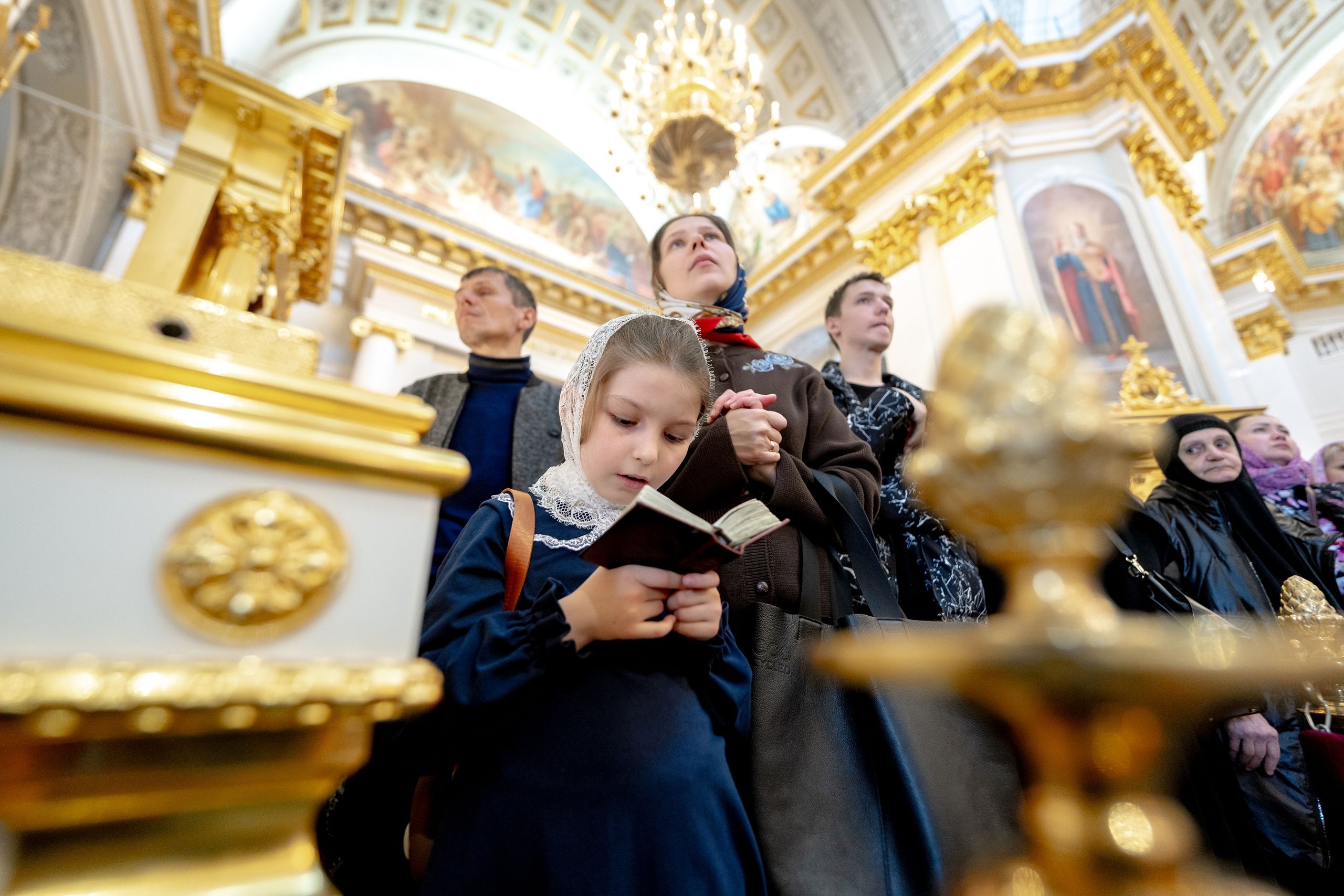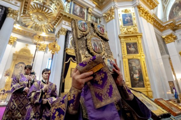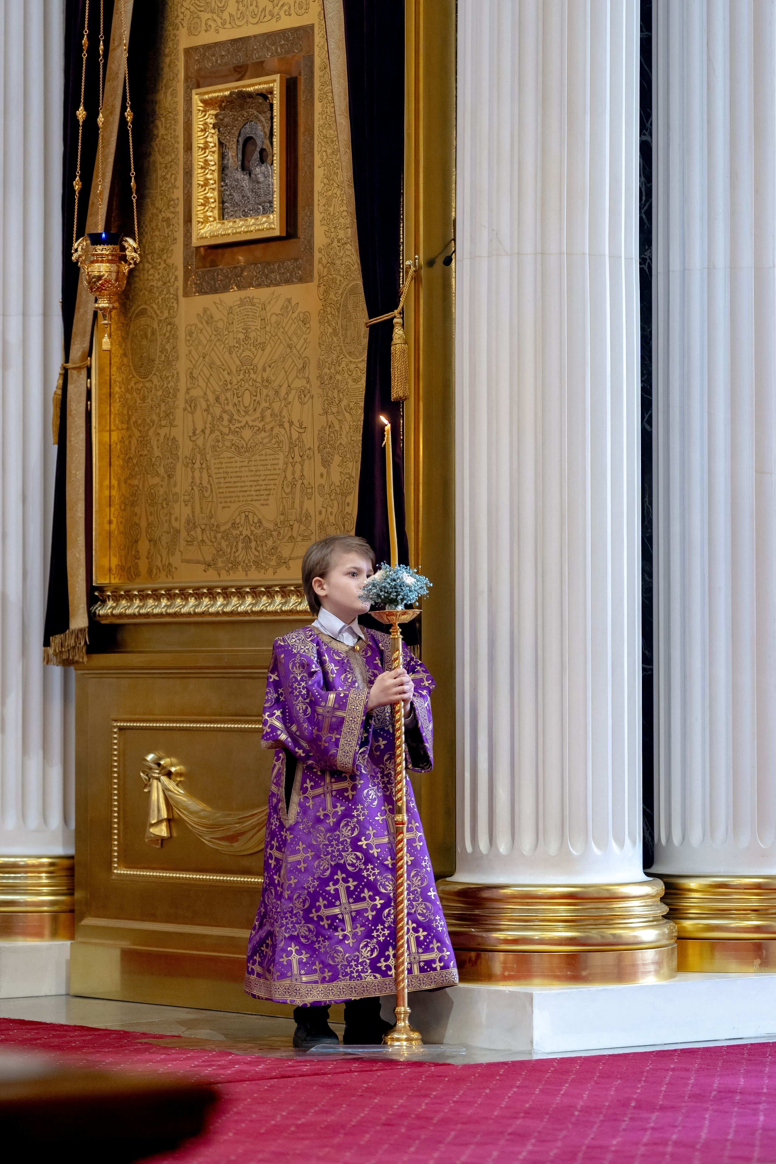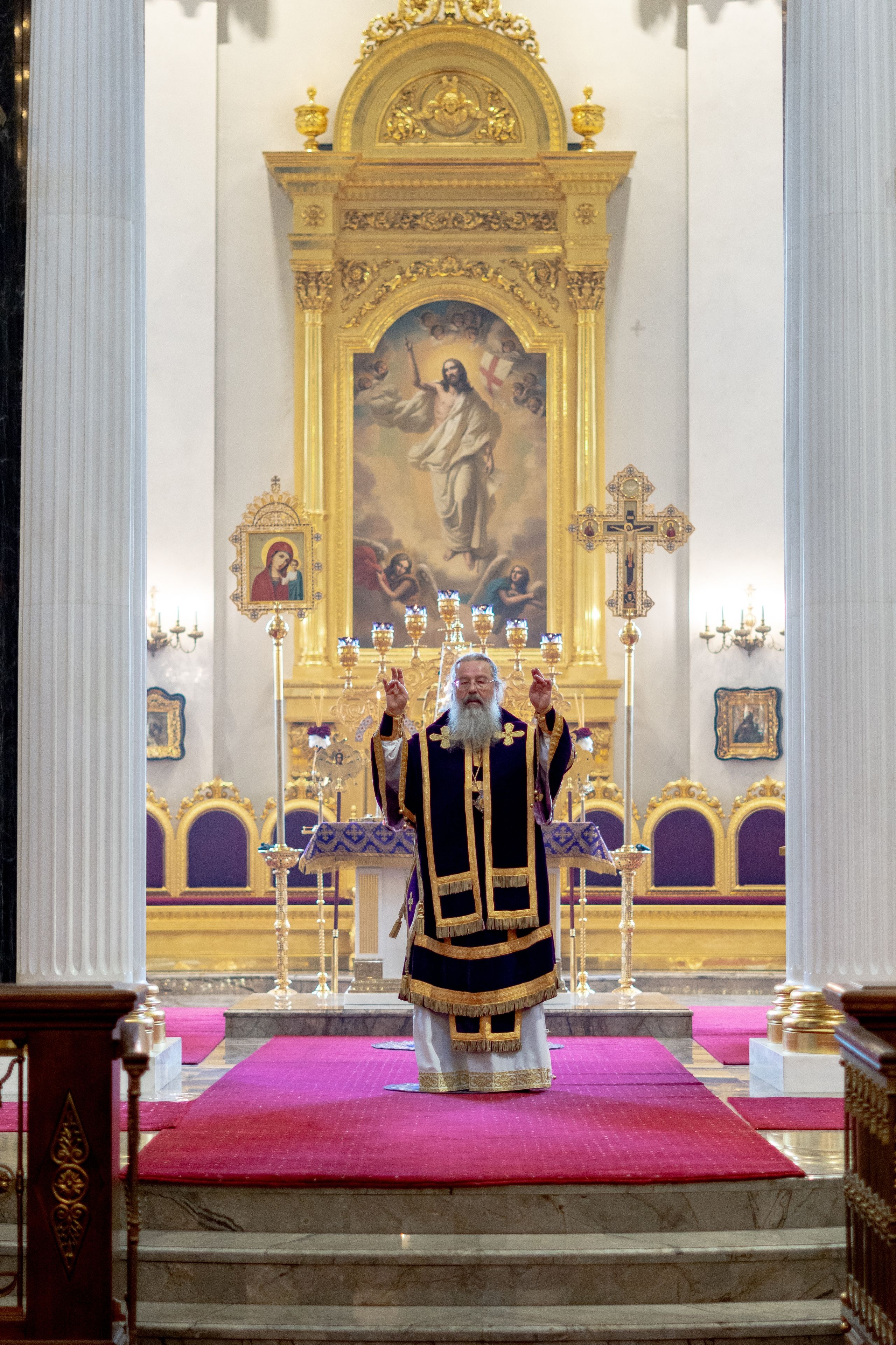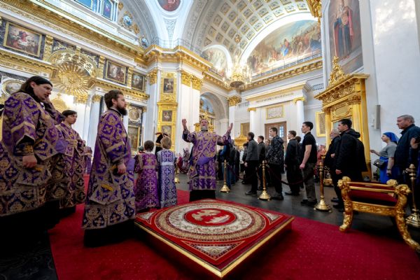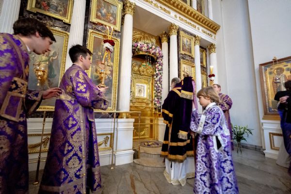 На мирной и сугубой ектениях были вознесены молитвы о Российском воинстве и о мире. По запричастном стихе проповедь произнёс иеромонах Кирилл (Корытко). В завершение богослужения духовенство и верующие пропели молитву «Царице моя Преблагая».