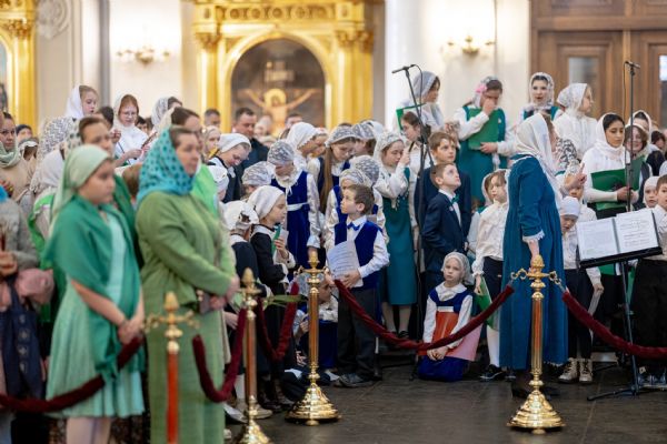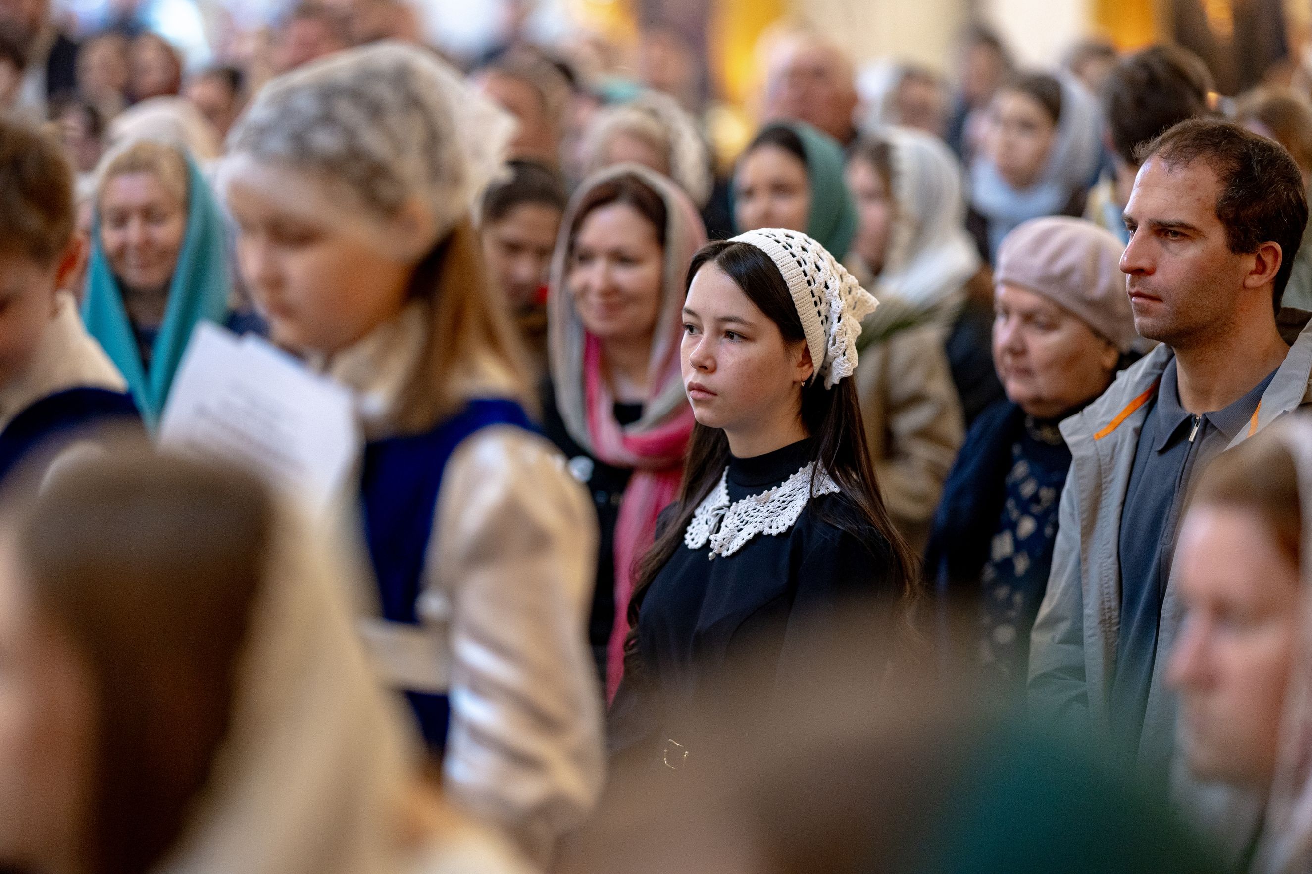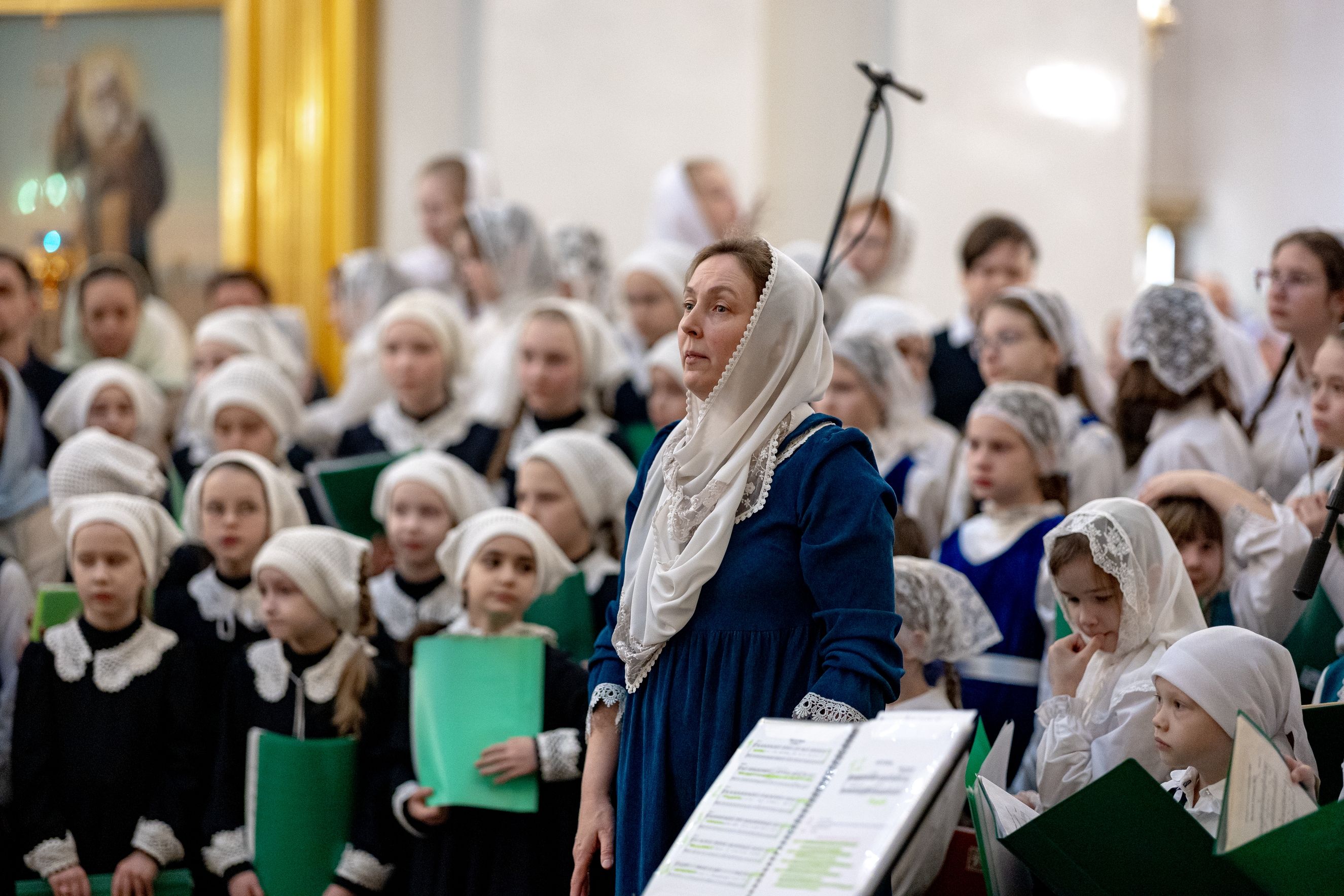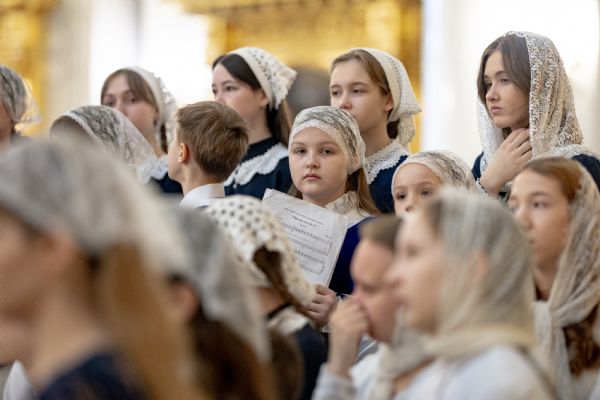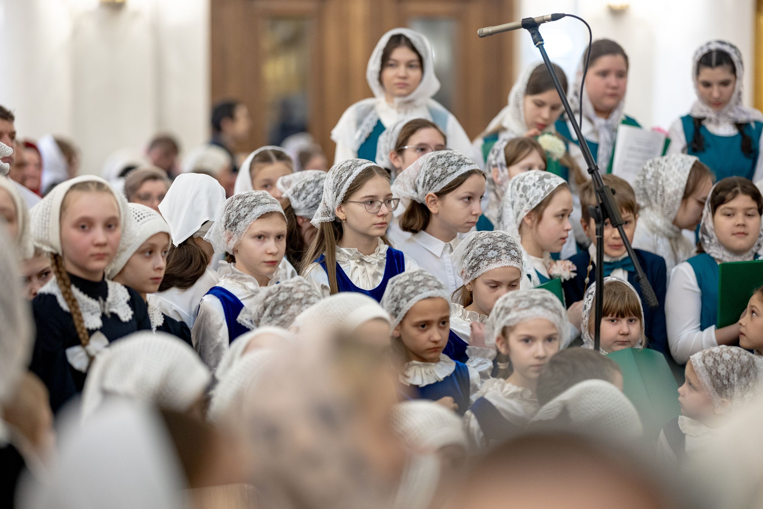 Песнопения исполнили архиерейский смешанный хор под управлением Марины Литвиненко и сводный детский хор воскресных школ Казанской епархии под управлением матушки Полины Павловой.