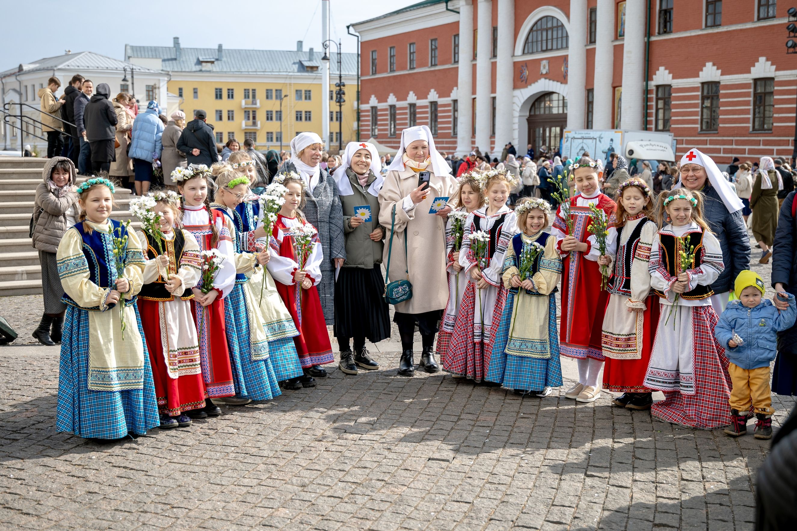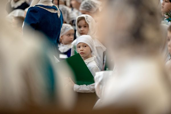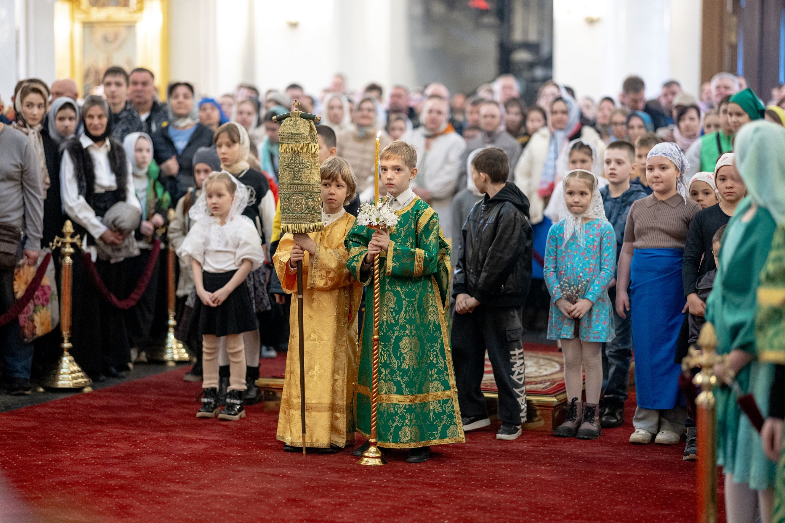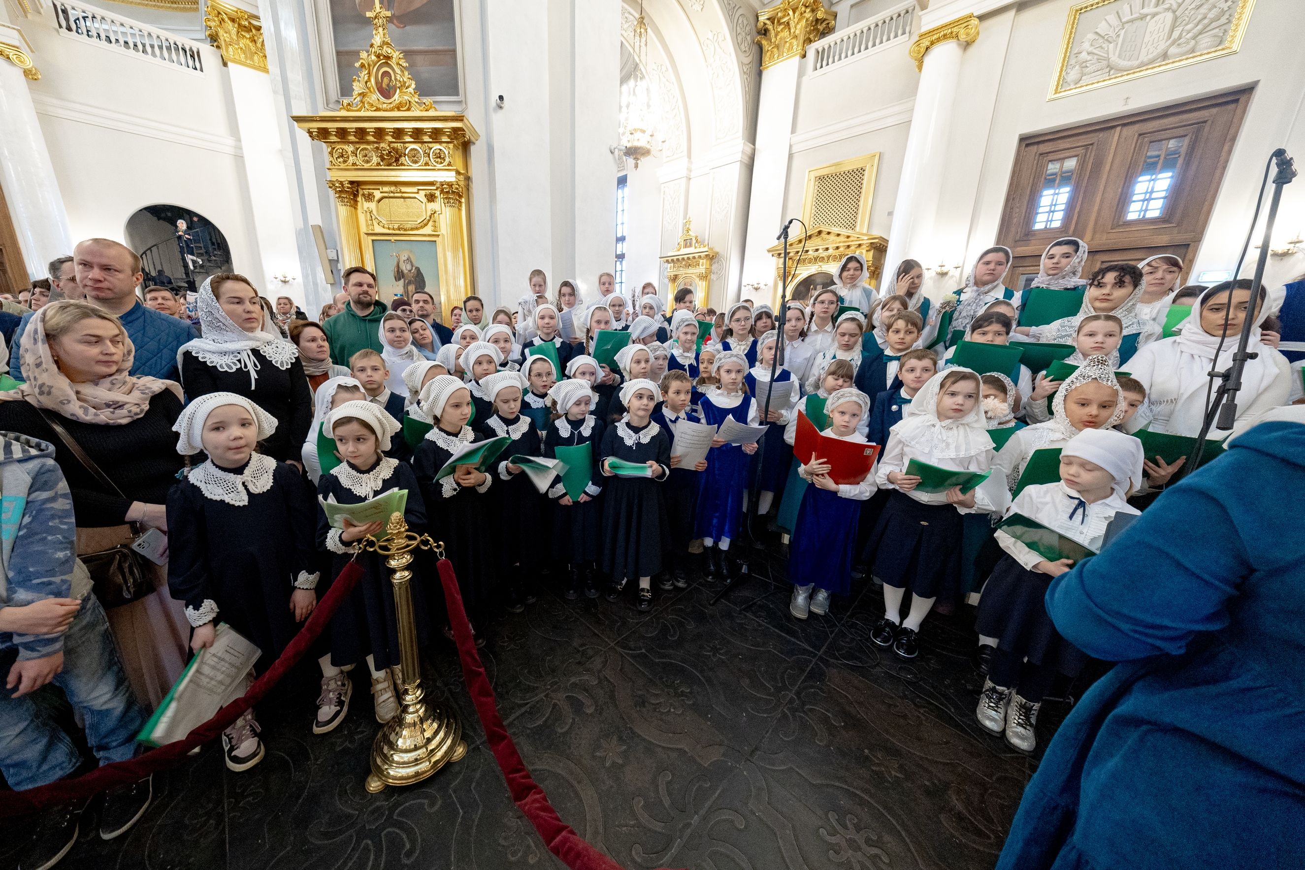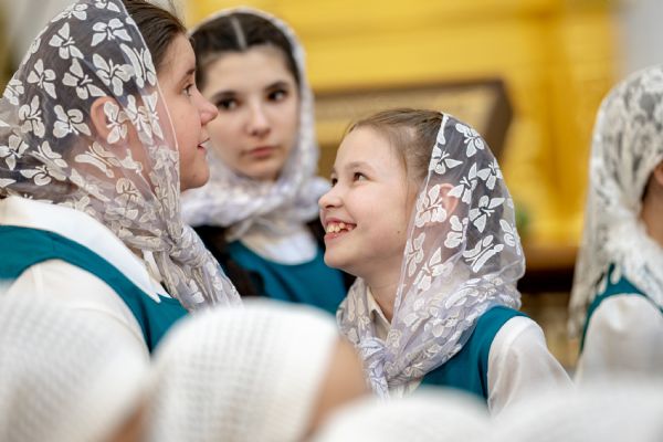 Песнопения исполнили архиерейский смешанный хор под управлением Марины Литвиненко и сводный детский хор воскресных школ Казанской епархии под управлением матушки Полины Павловой.