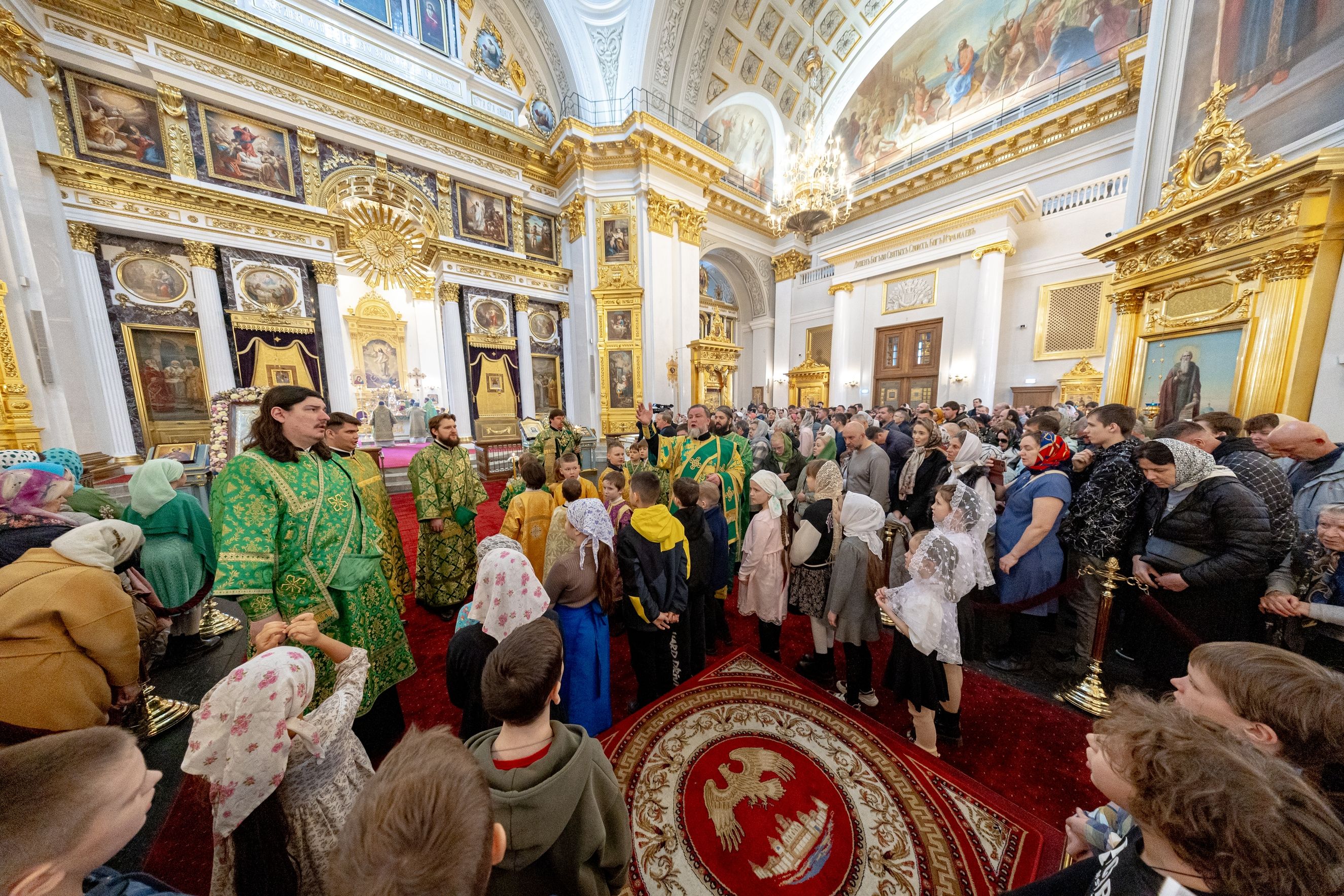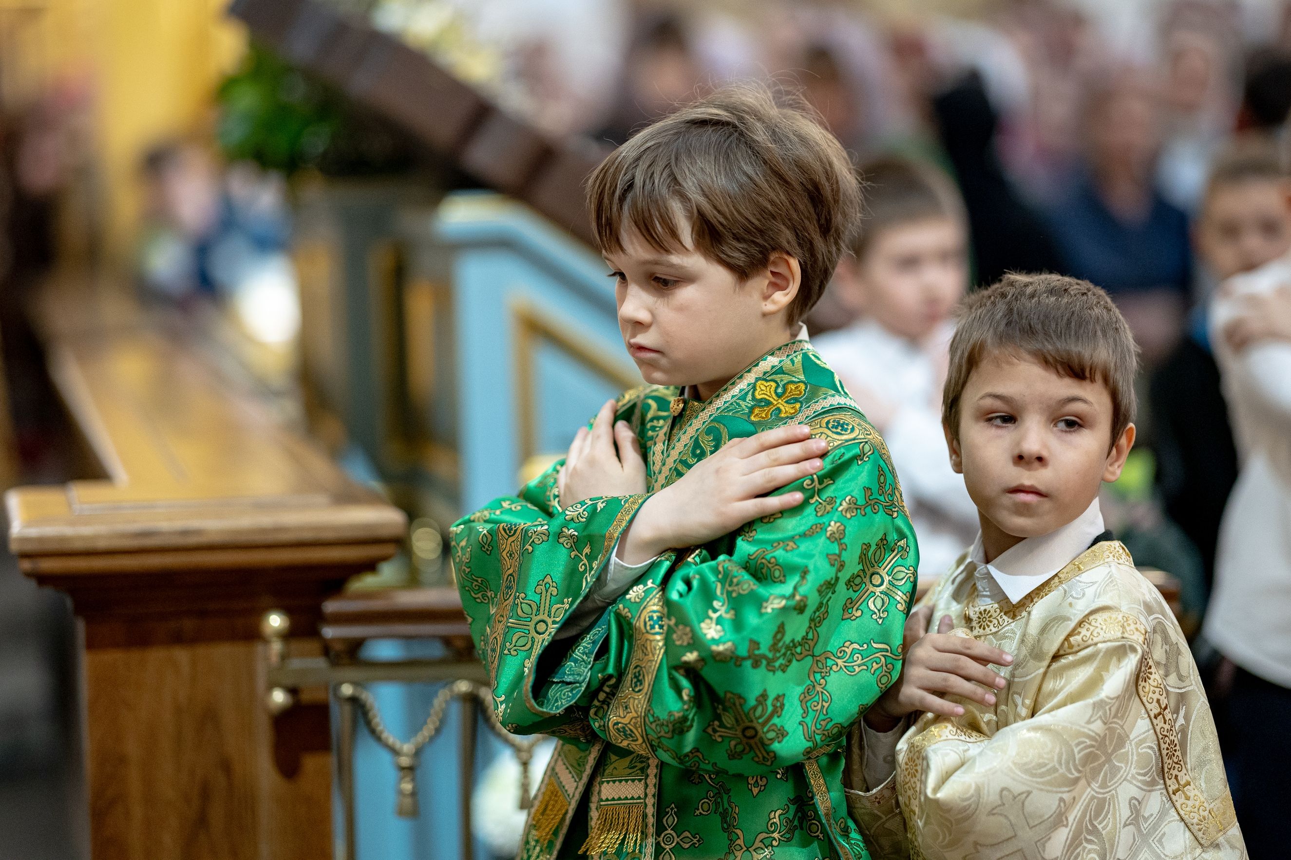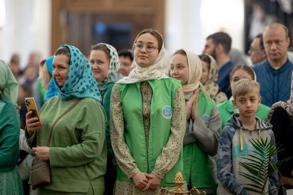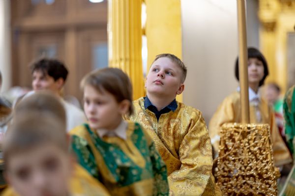 За Литургией молились педагоги и воспитанники воскресных школ, родители учащихся, прихожане и паломники.