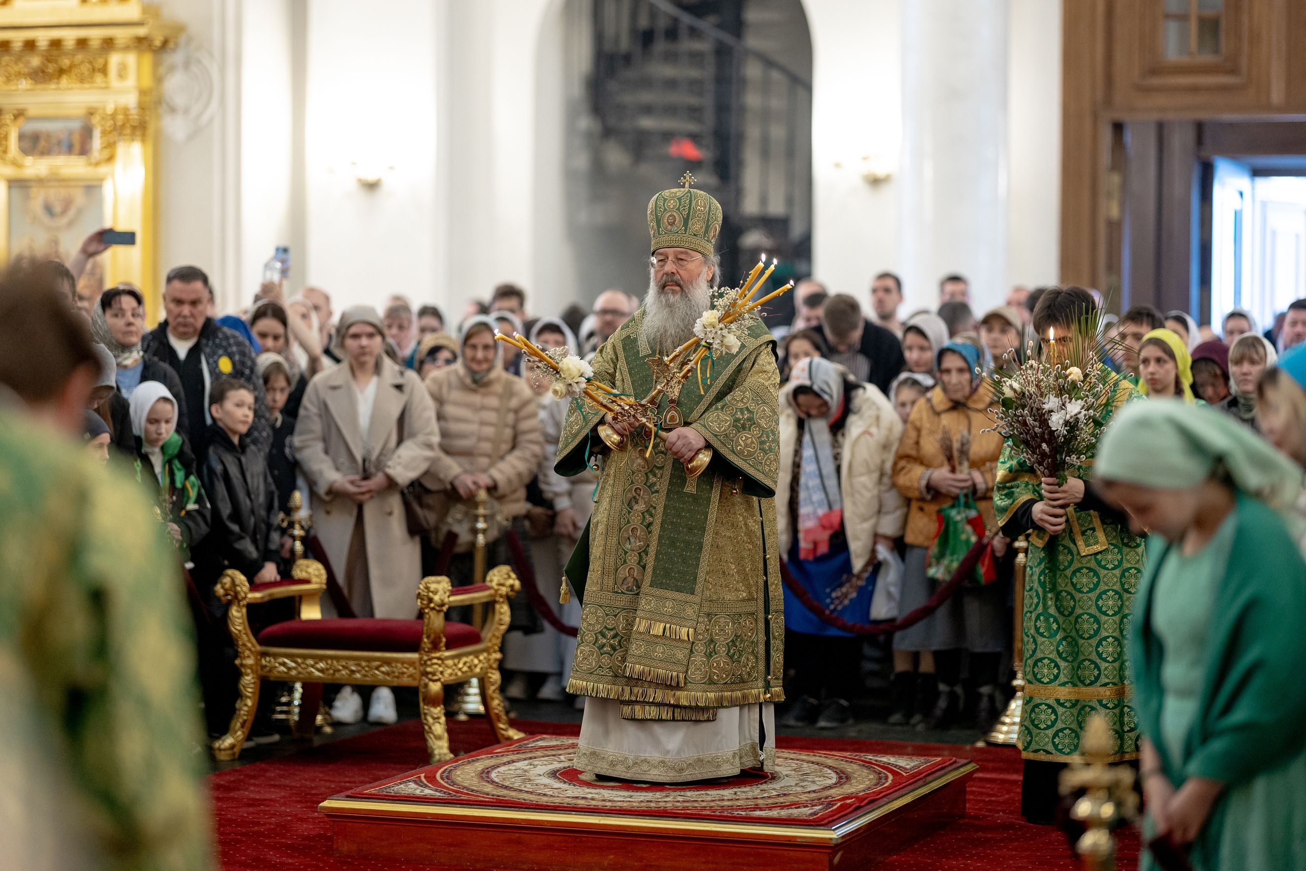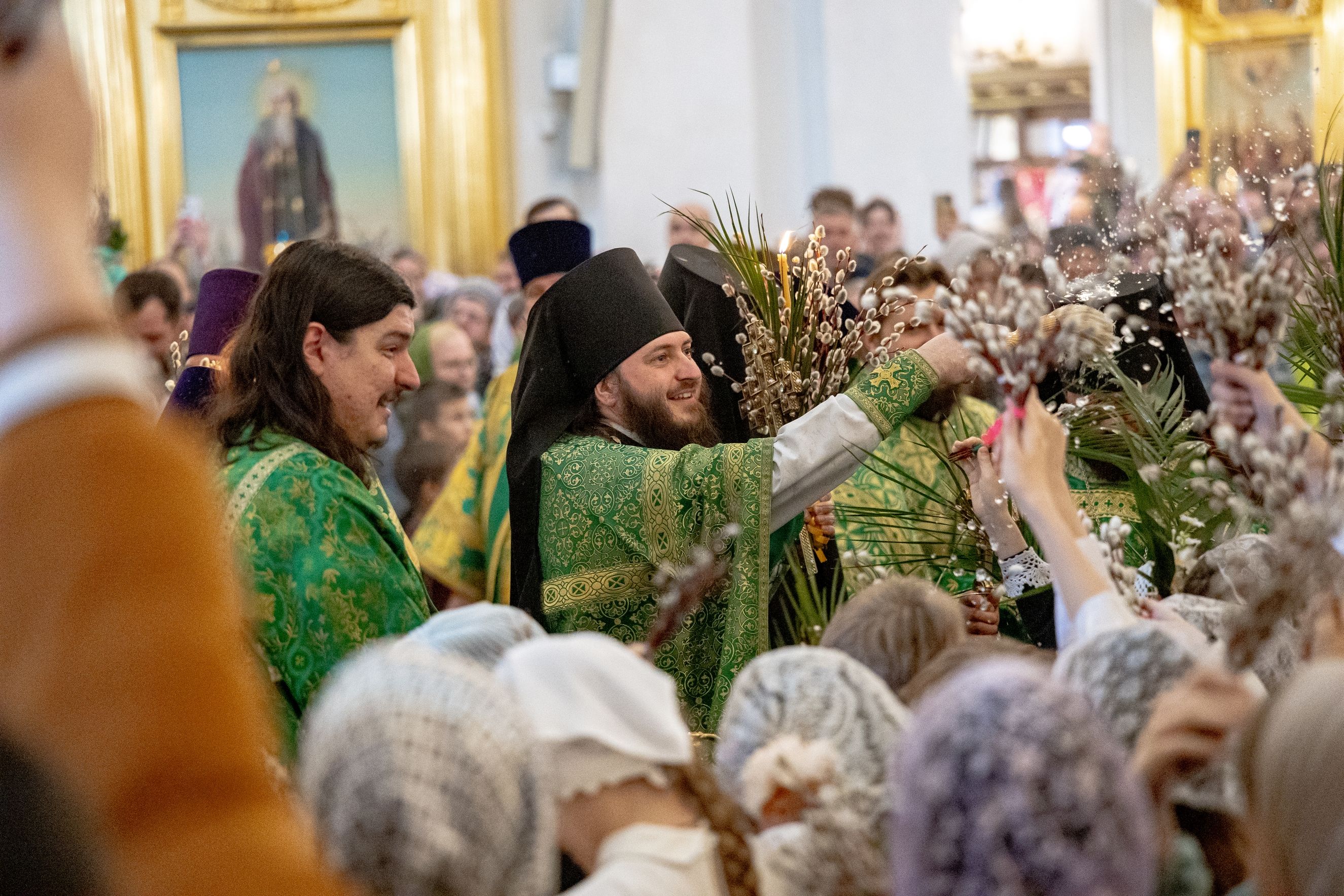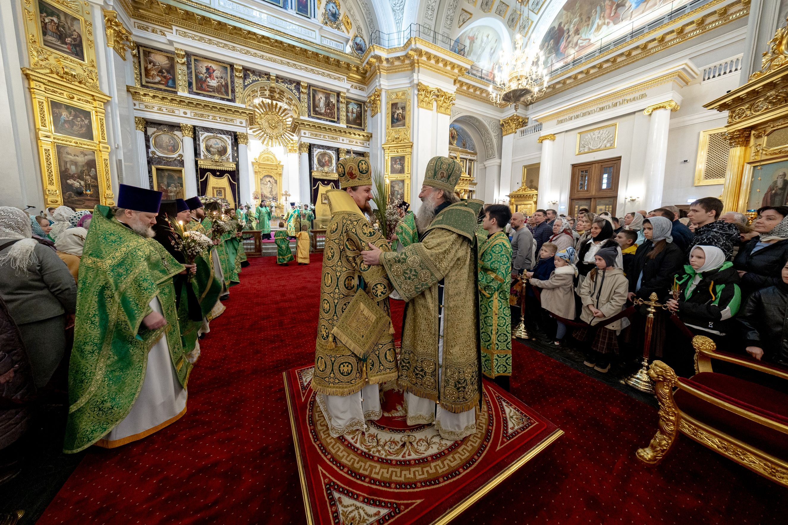 5 апреля 2026 года, в Неделю 6-ю Великого поста, ваий (Вербное воскресенье), праздник Входа Господня в Иерусалим, митрополит Казанский и Татарстанский Кирилл и митрополит Иосиф (Масленников) совершили Божественную литургию в кафедральном соборе Казанской иконы Божией Матери Казанского Богородицкого мужского монастыря.