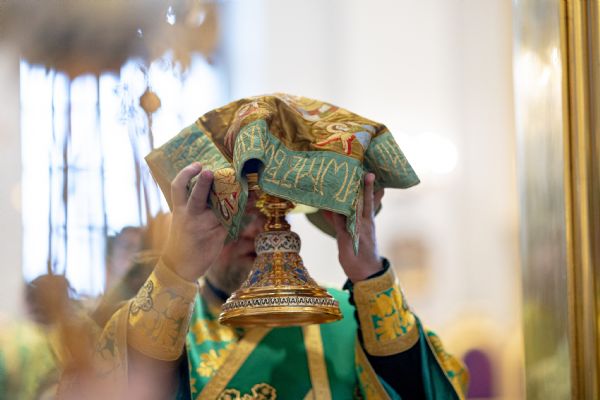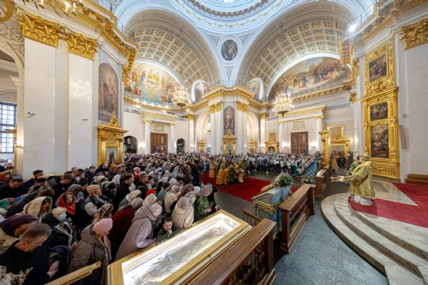На мирной и сугубой ектениях были вознесены молитвы о Российском воинстве и о мире. По запричастном стихе проповедь произнёс иерей Александр Данилов.