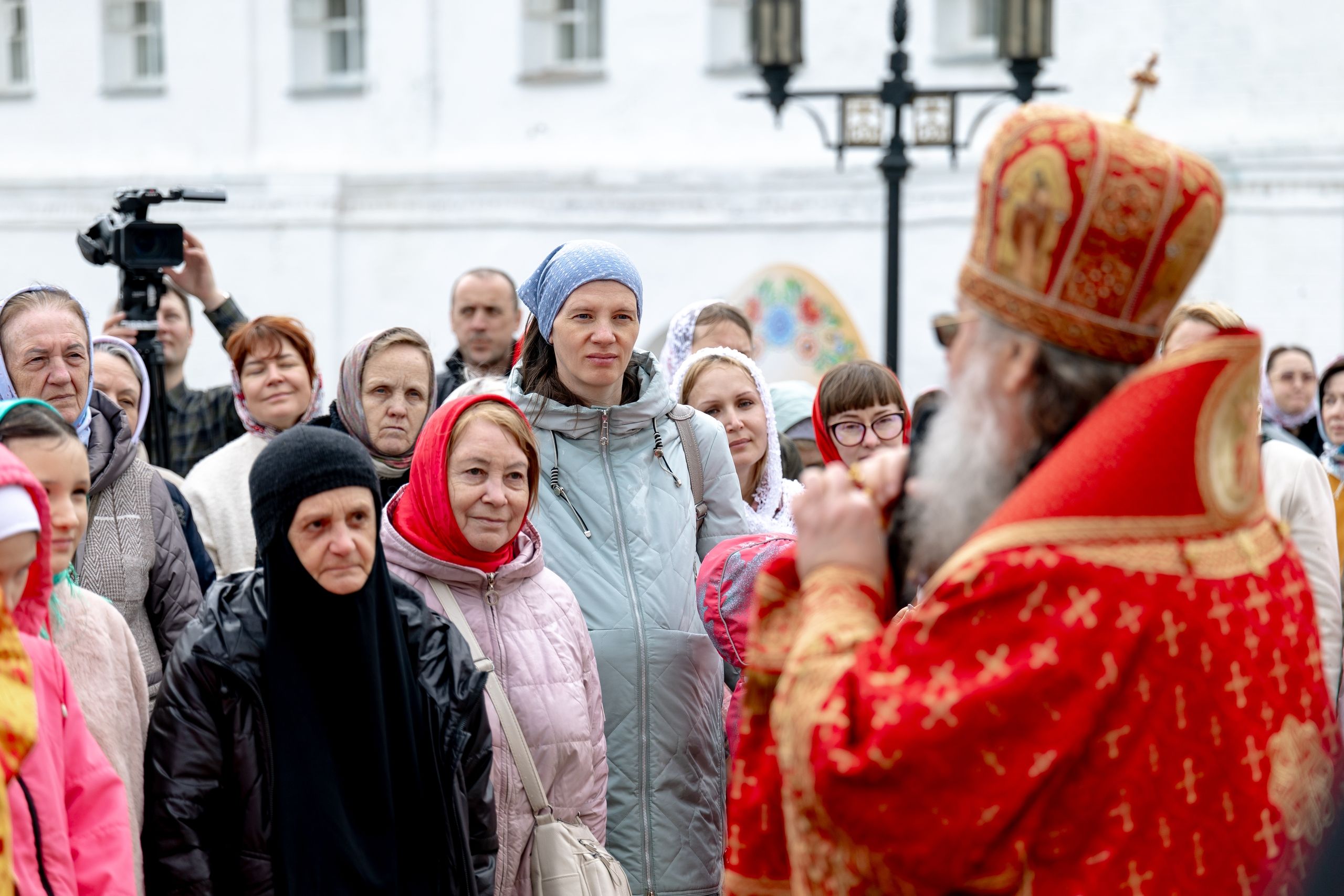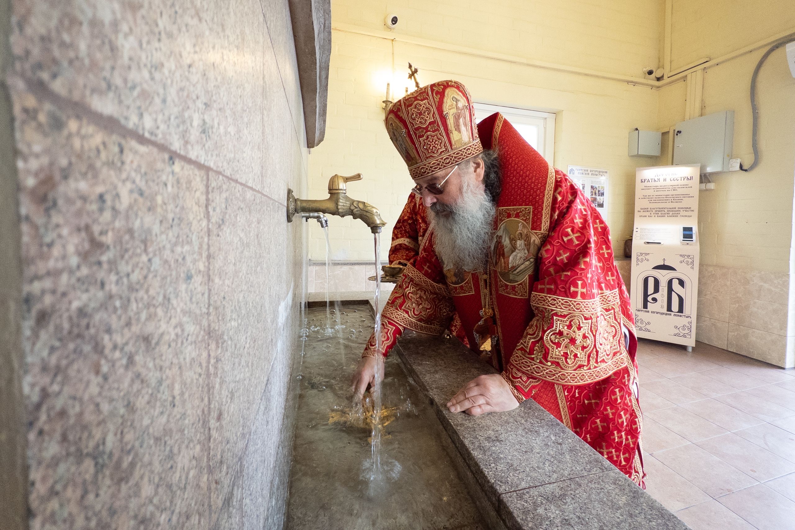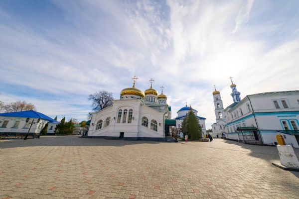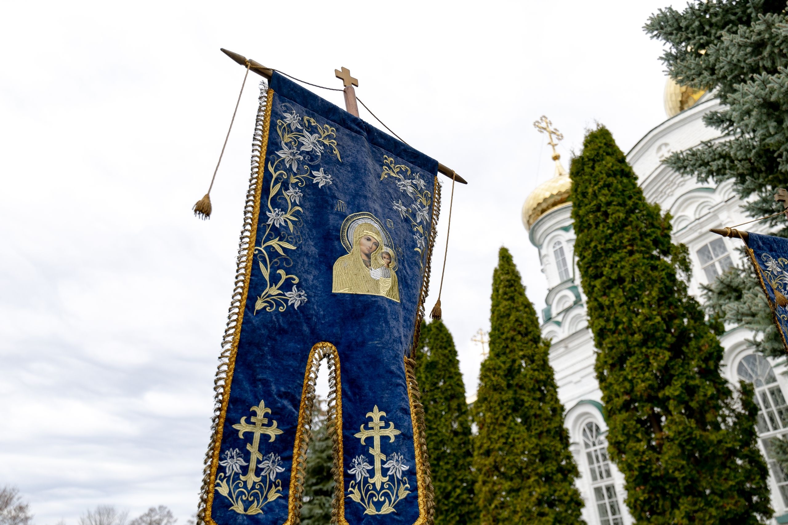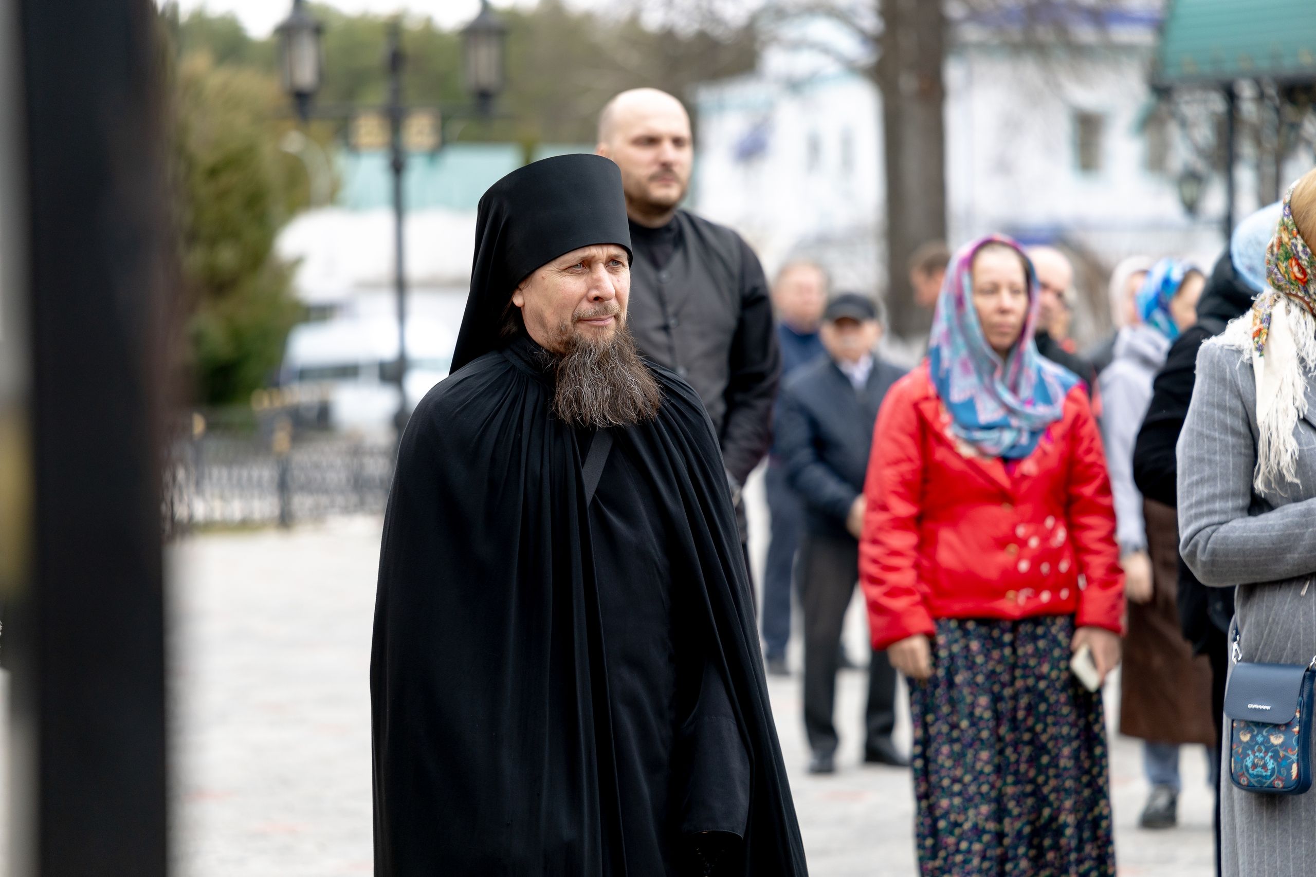 В завершение богослужения духовенство, монашествующие и миряне прошли крестным ходом к водосвятной часовне на соборной площади обители. Там было совершено малое освящение воды.