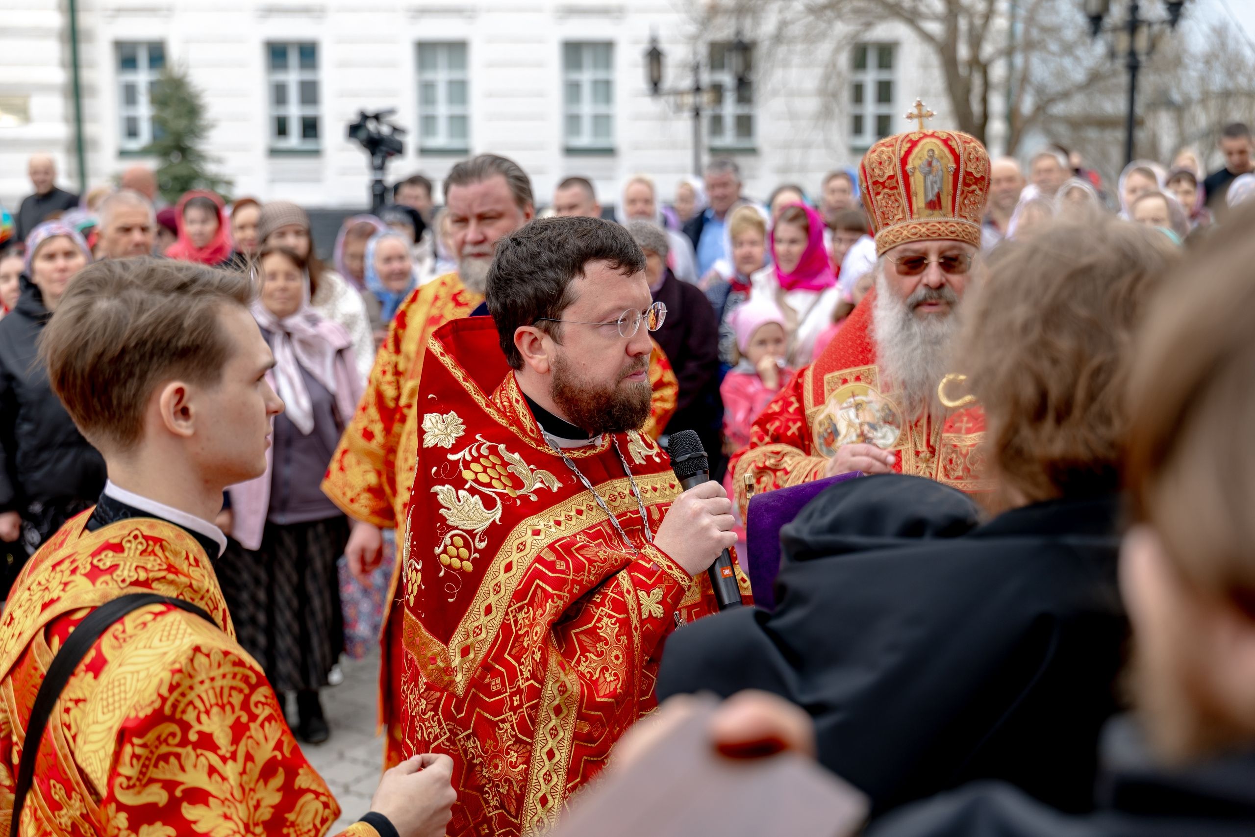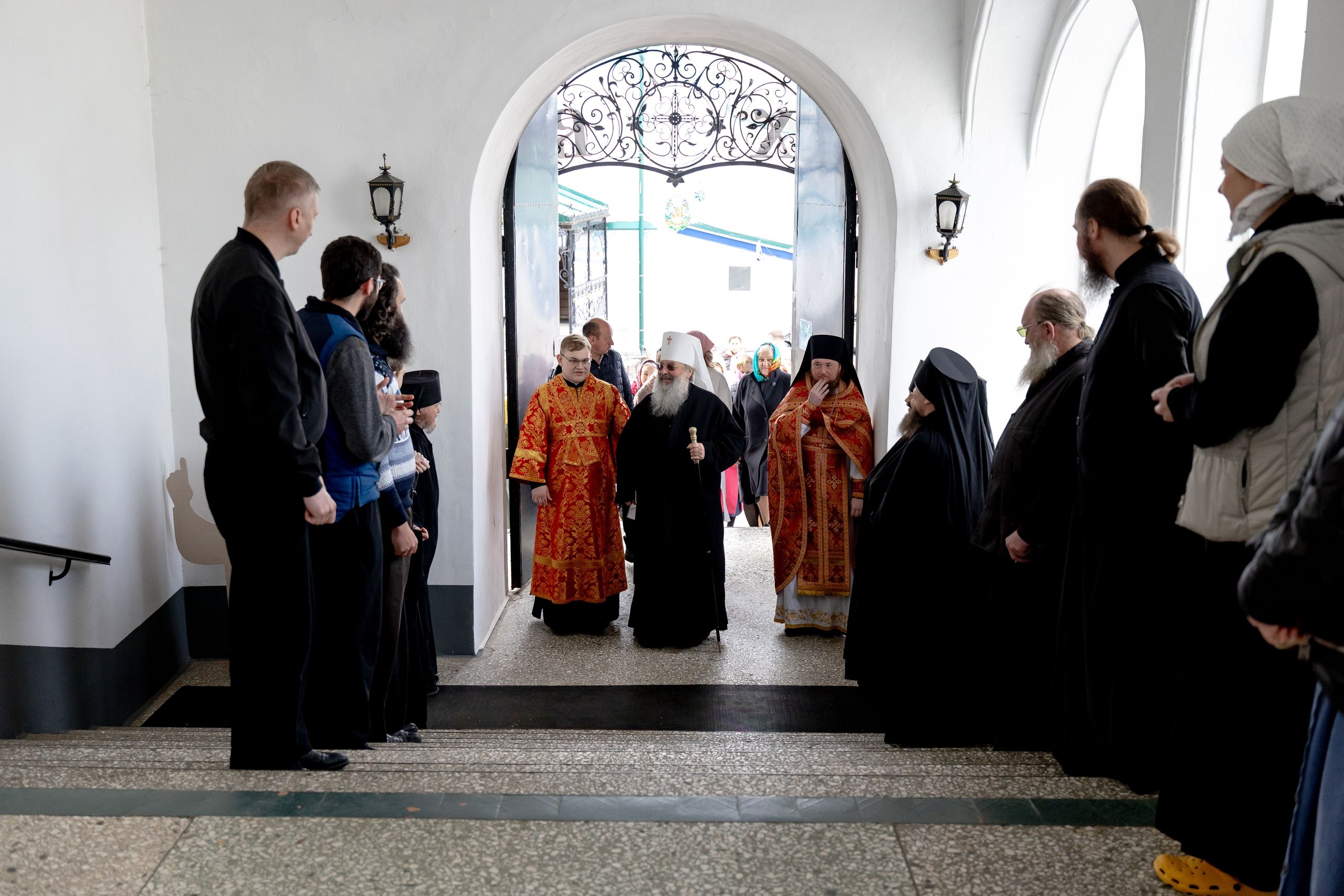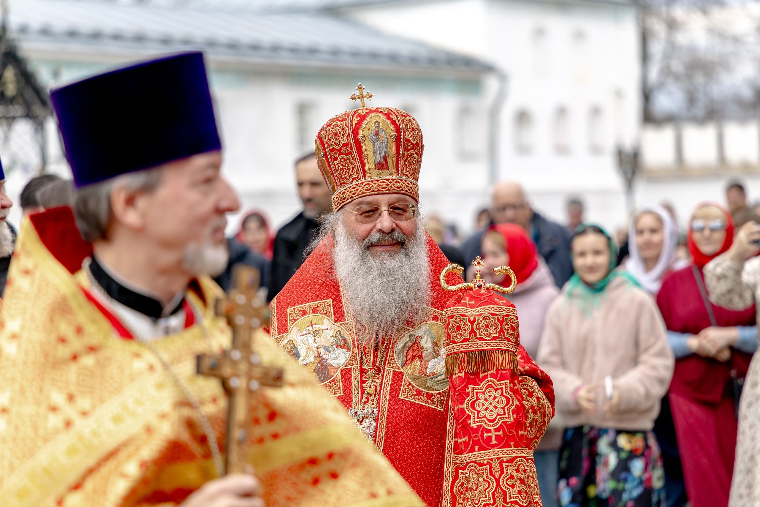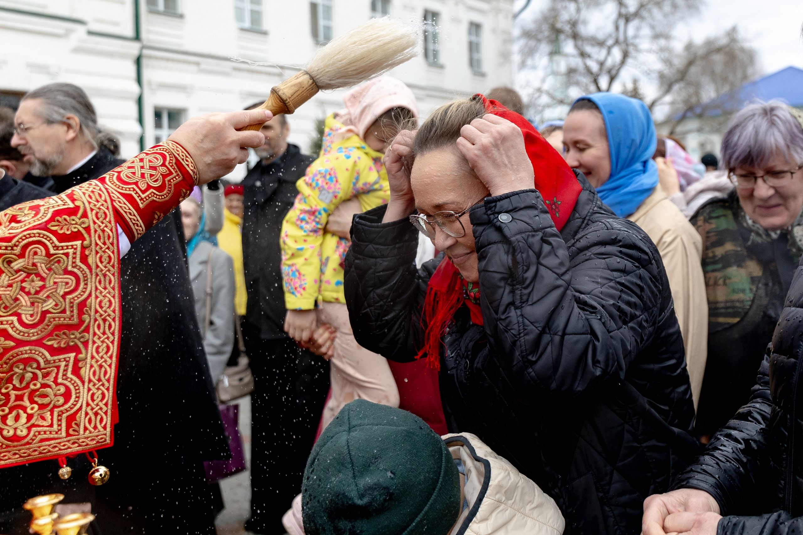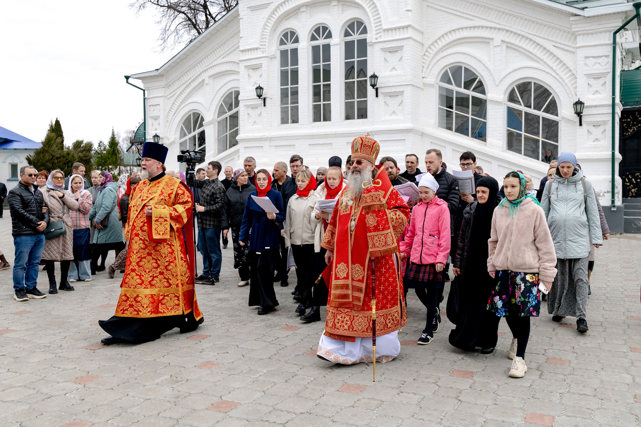 В завершение богослужения духовенство, монашествующие и миряне прошли крестным ходом к водосвятной часовне на соборной площади обители. Там было совершено малое освящение воды.