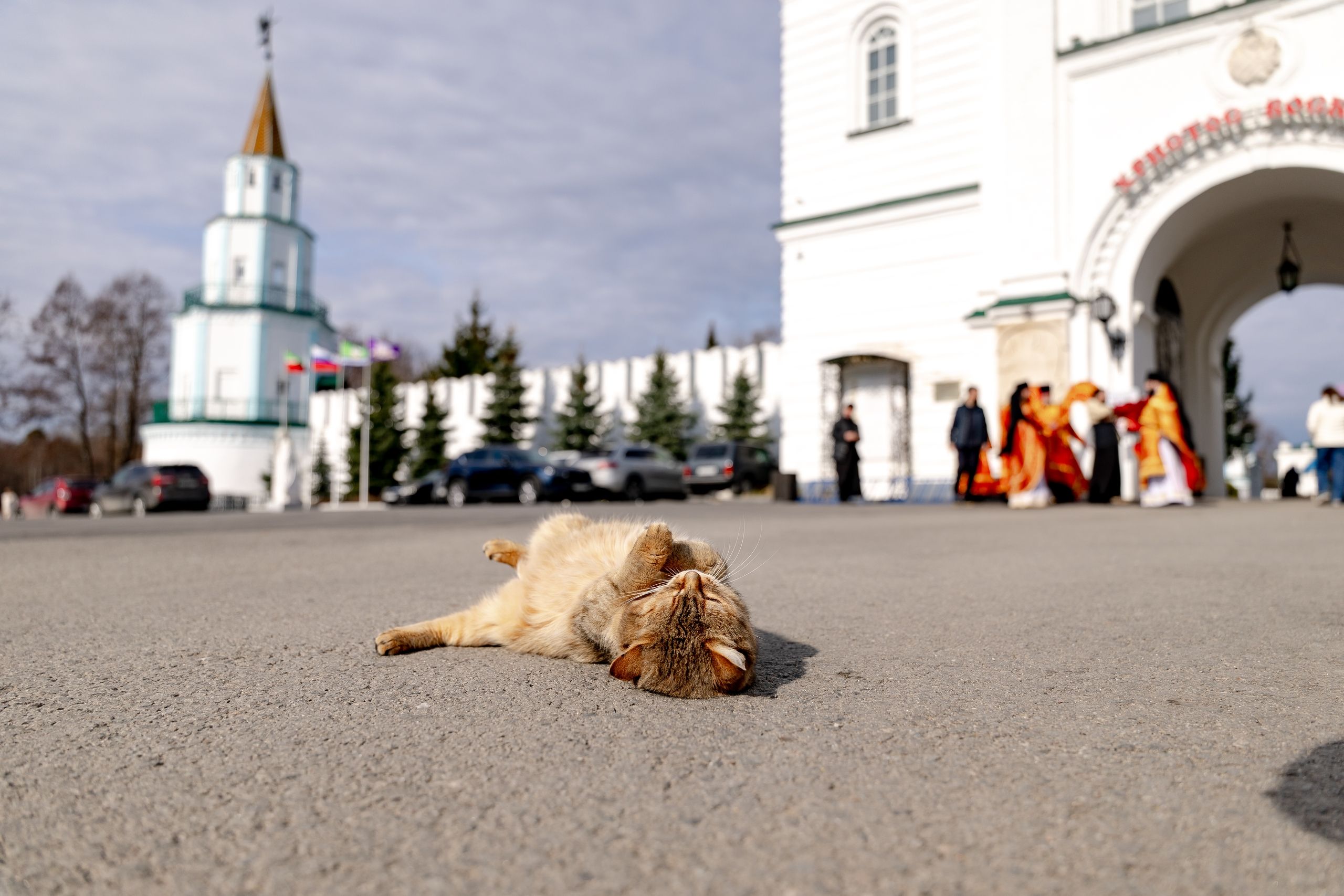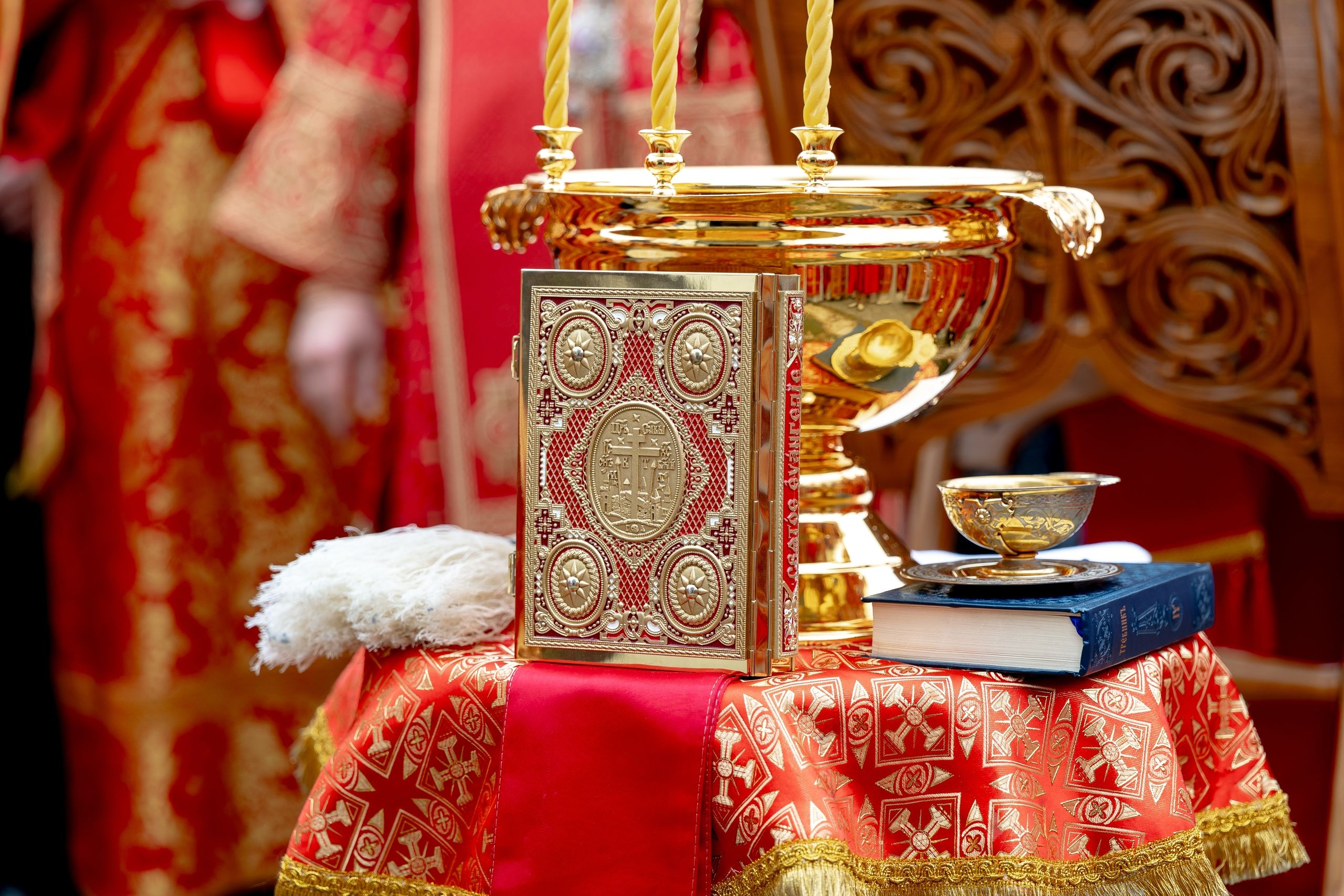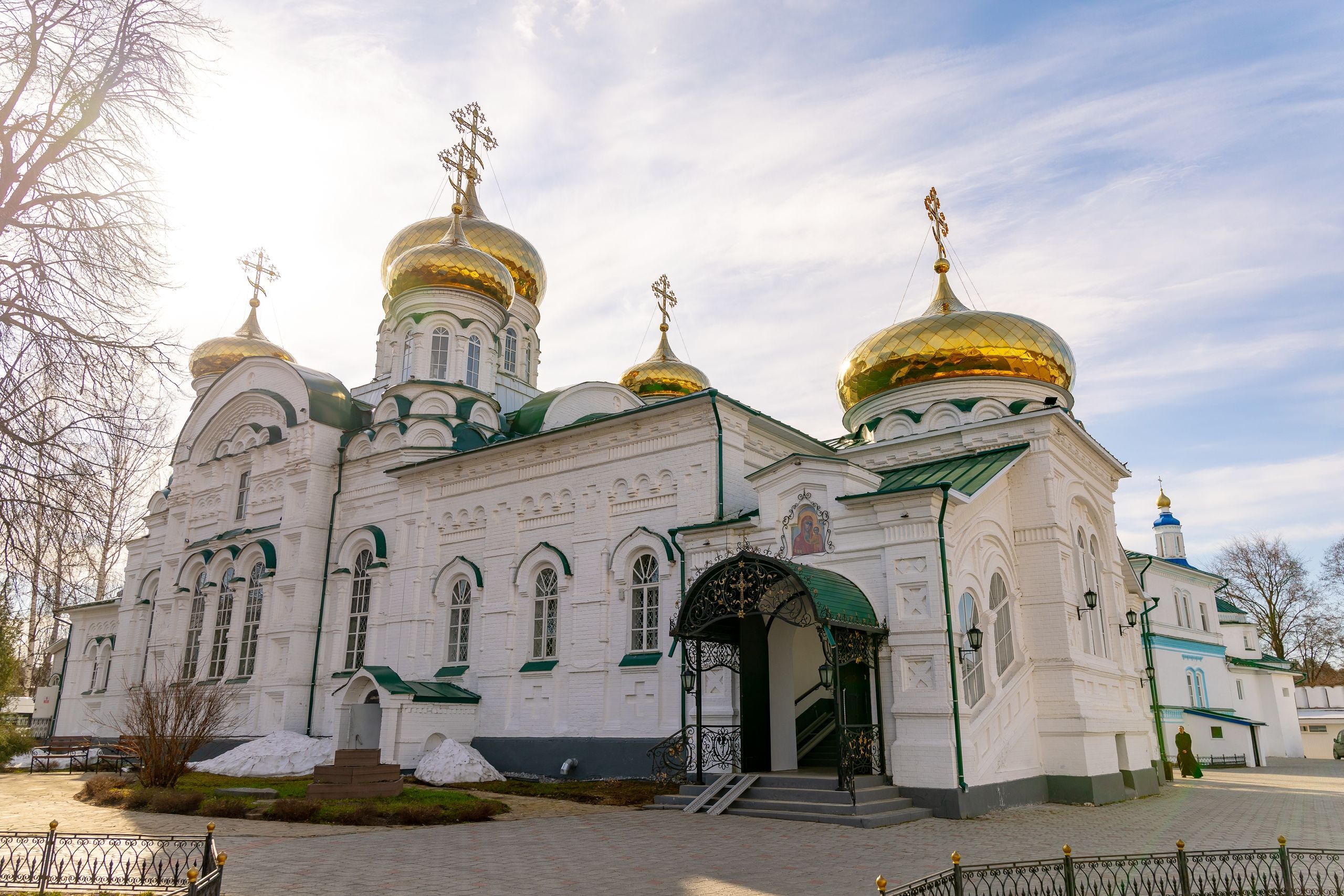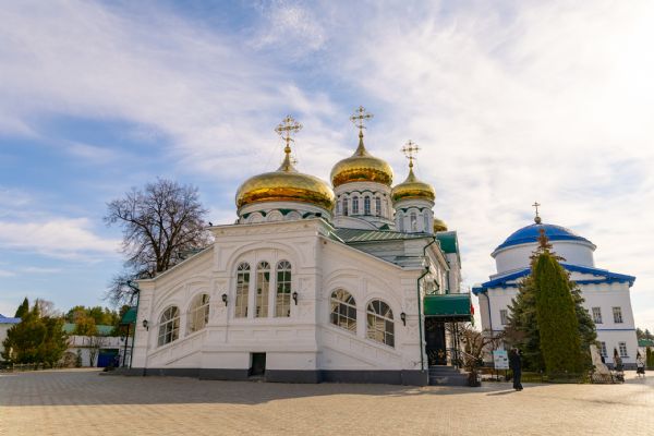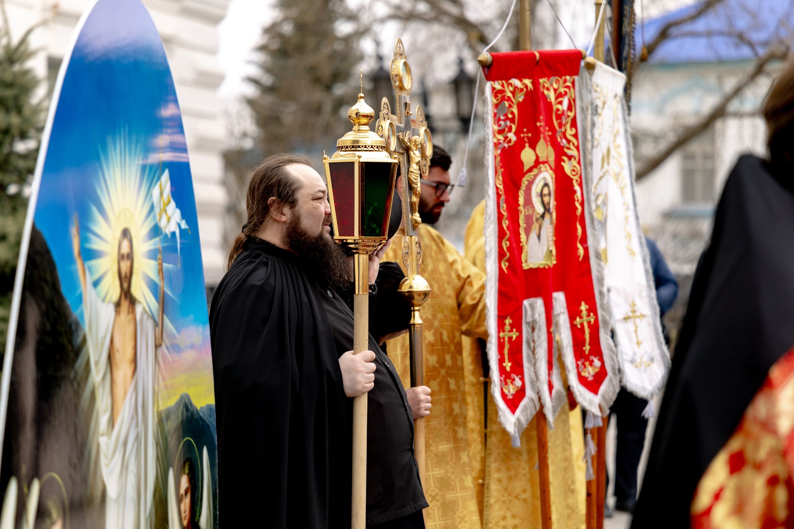 В завершение богослужения духовенство, монашествующие и миряне прошли крестным ходом к водосвятной часовне на соборной площади обители. Там было совершено малое освящение воды.