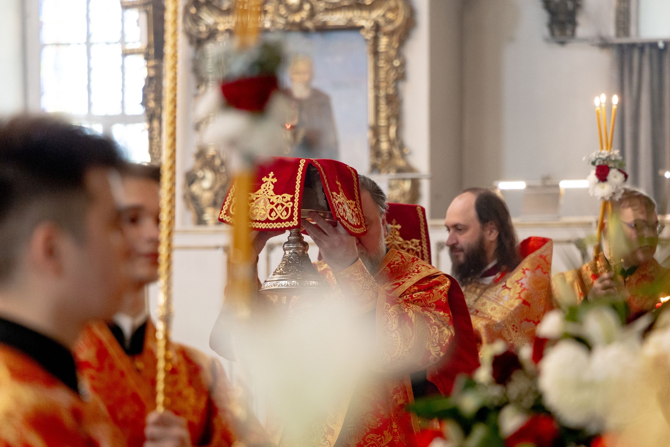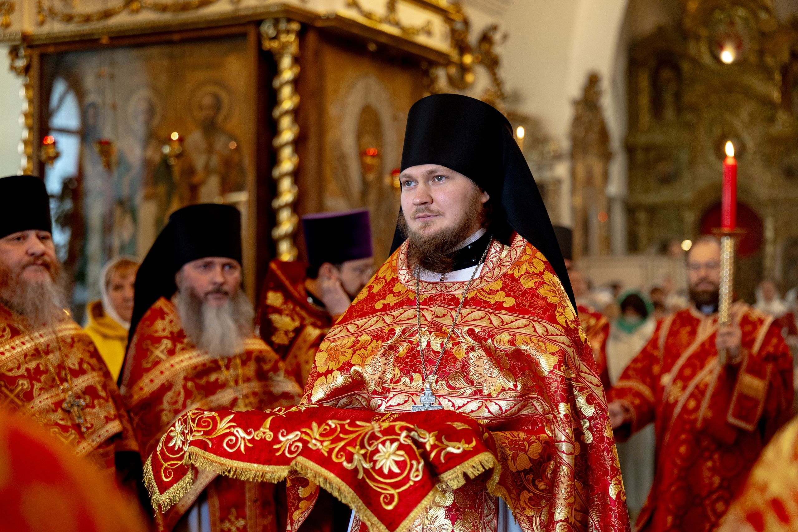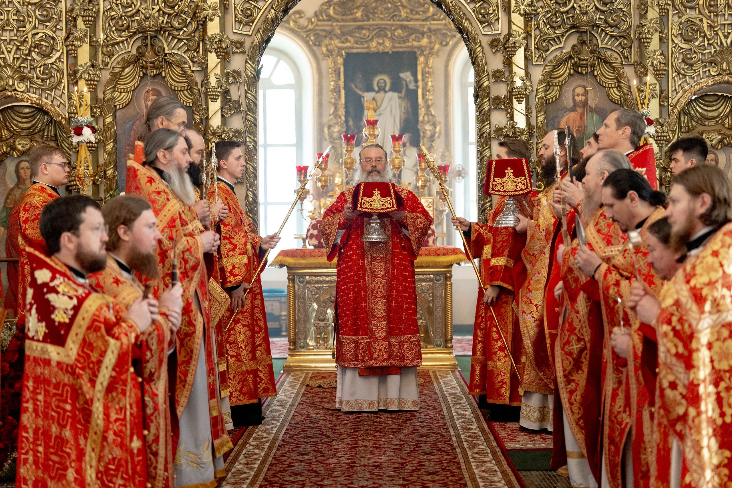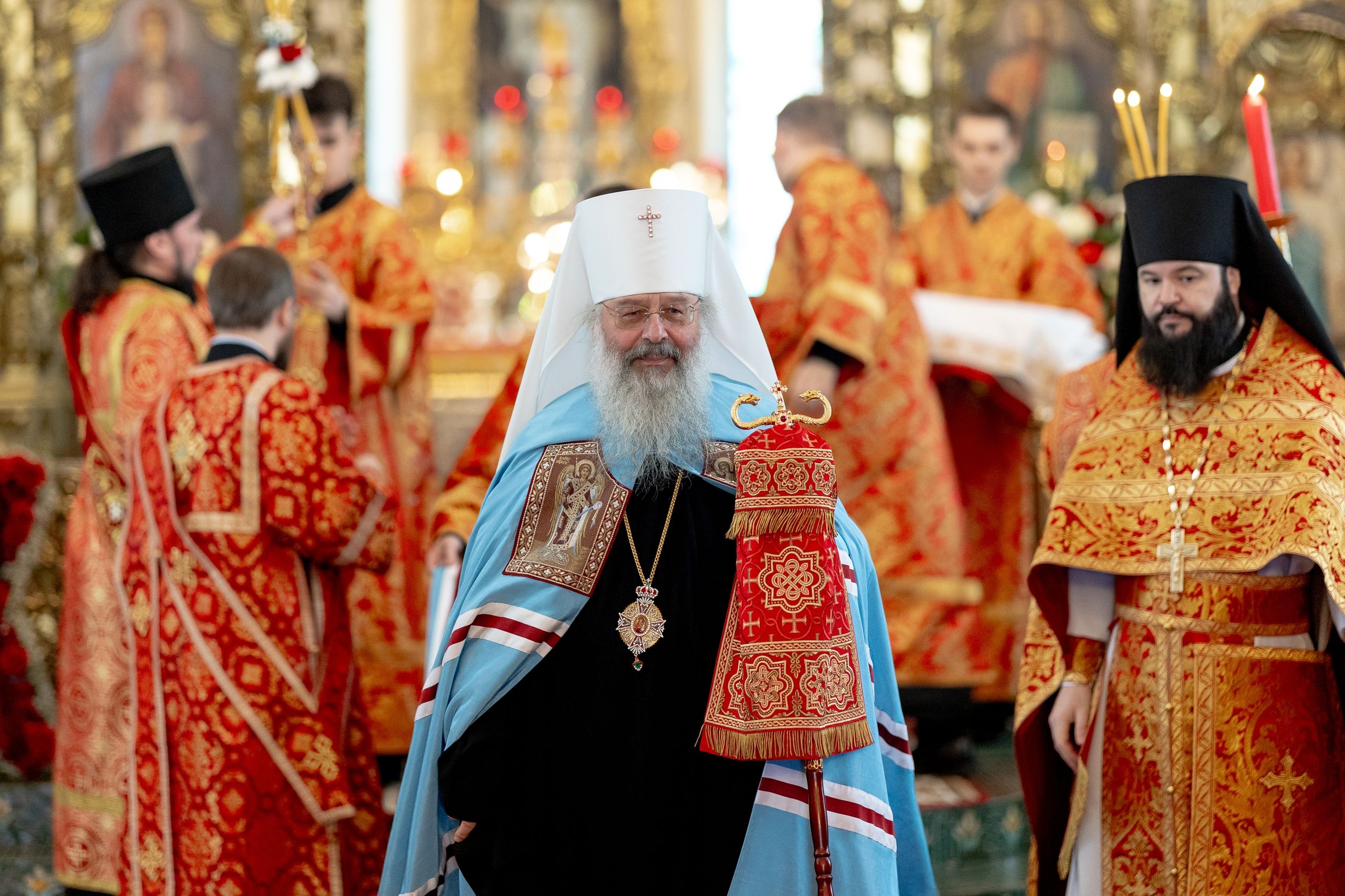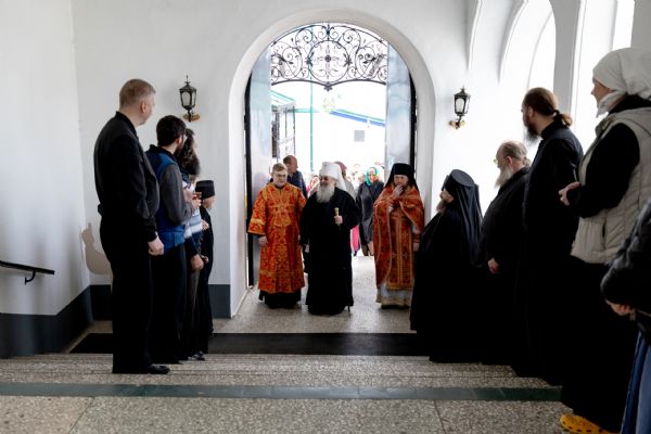 Его Высокопреосвященству сослужили секретарь Татарстанской митрополии иеромонах Кирилл (Корытко), и.о. наместника Раифского Богородицкого монастыря игумен Марк (Виленский), настоятель Иоанно-Предтеченского монастыря города Казани игумен Алексий (Яцейко), благочинный Зеленодольского церковного округа протоиерей Константин Люкшин, настоятель Никольского собора города Казани протоиерей Иоанн Барсуков, настоятель Петропавловского храма города Зеленодольска протоиерей Святослав Мирганиев, монашествующие Казанской епархии.